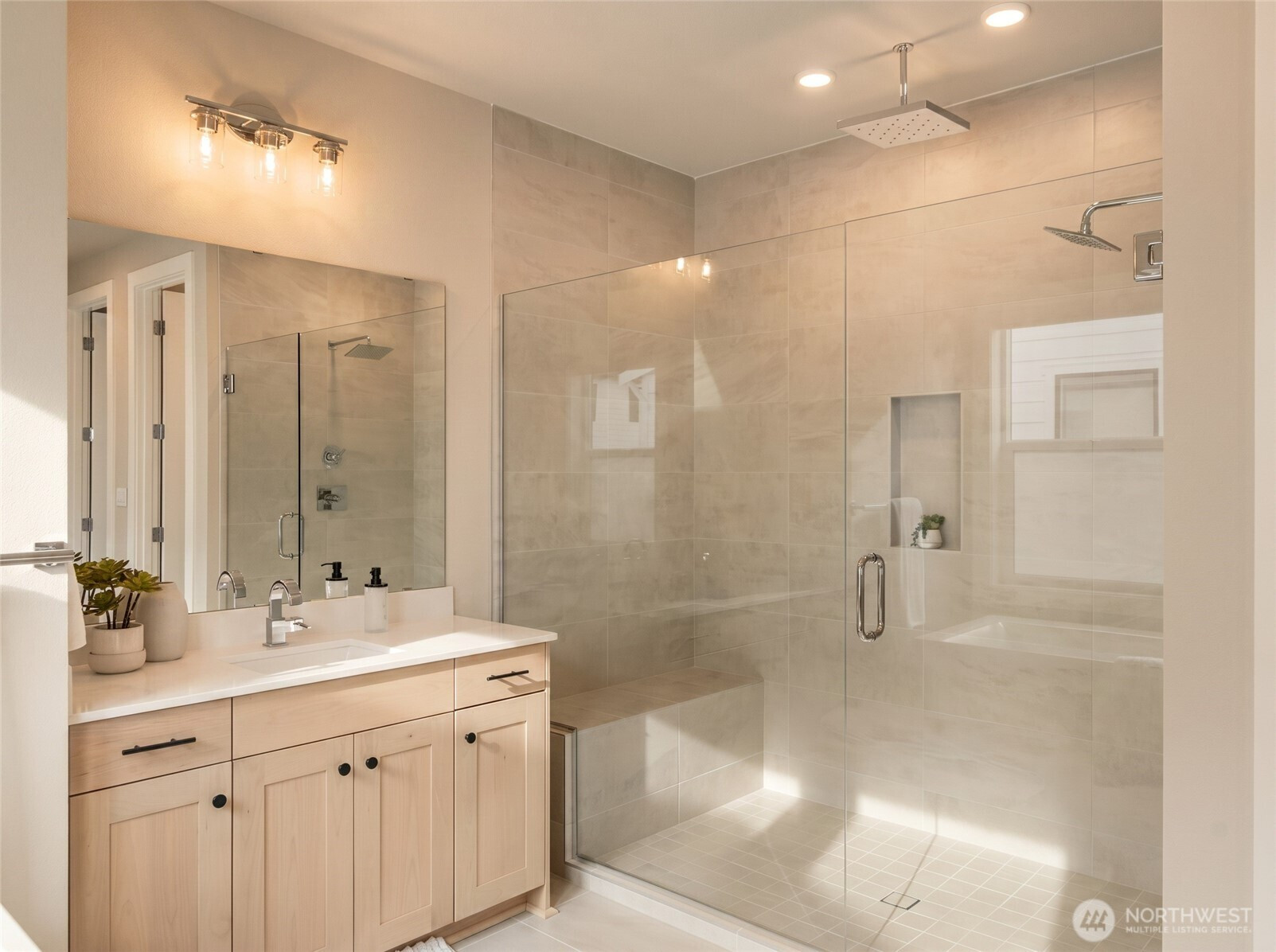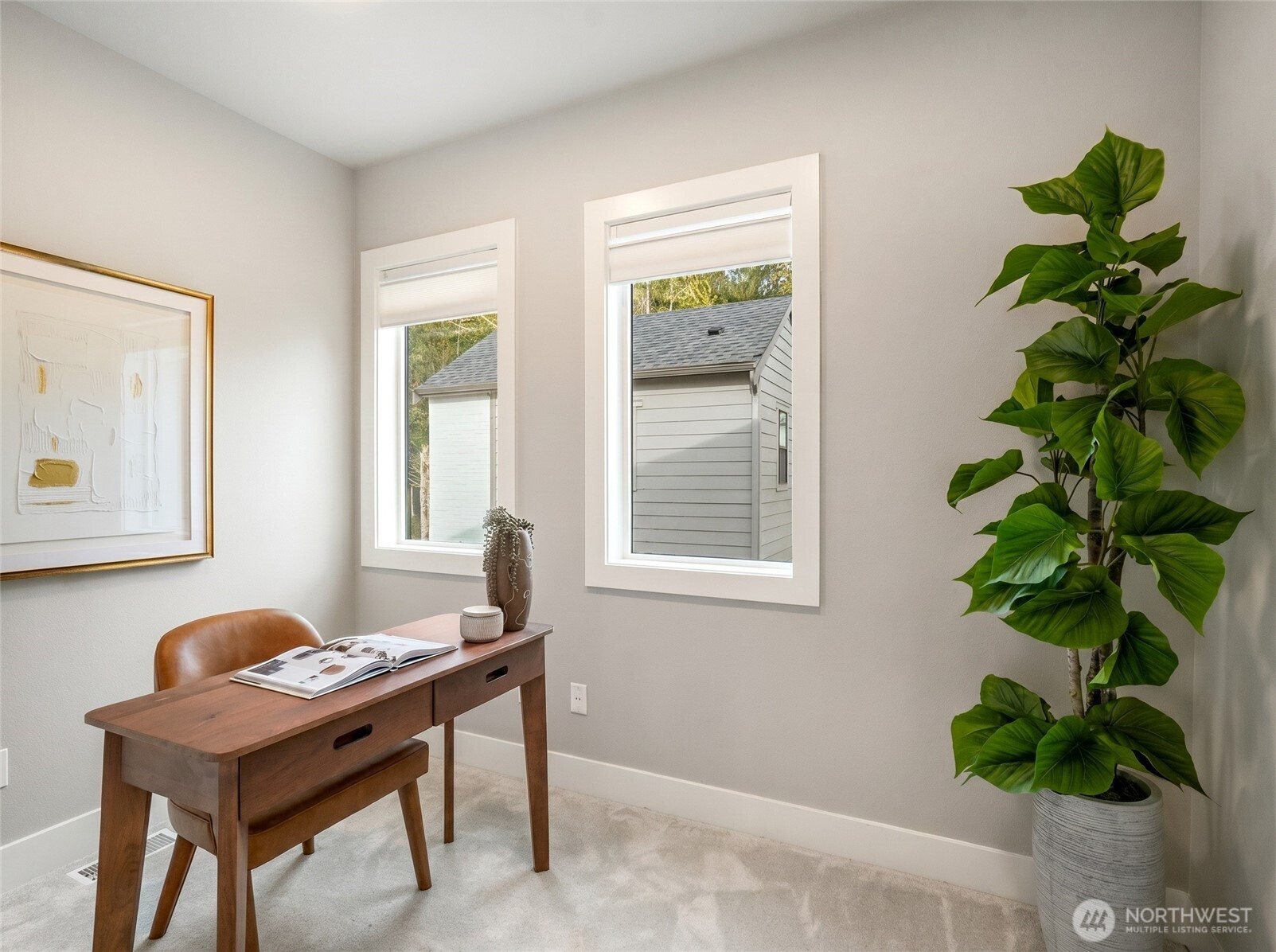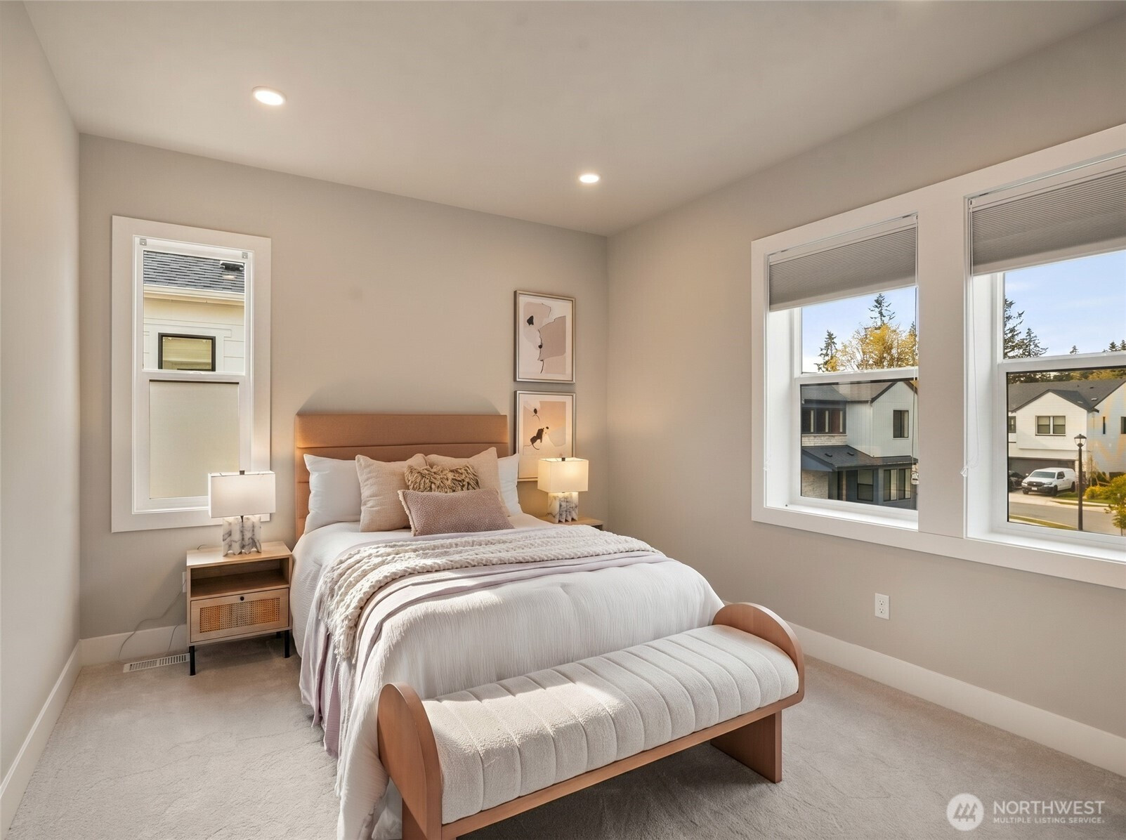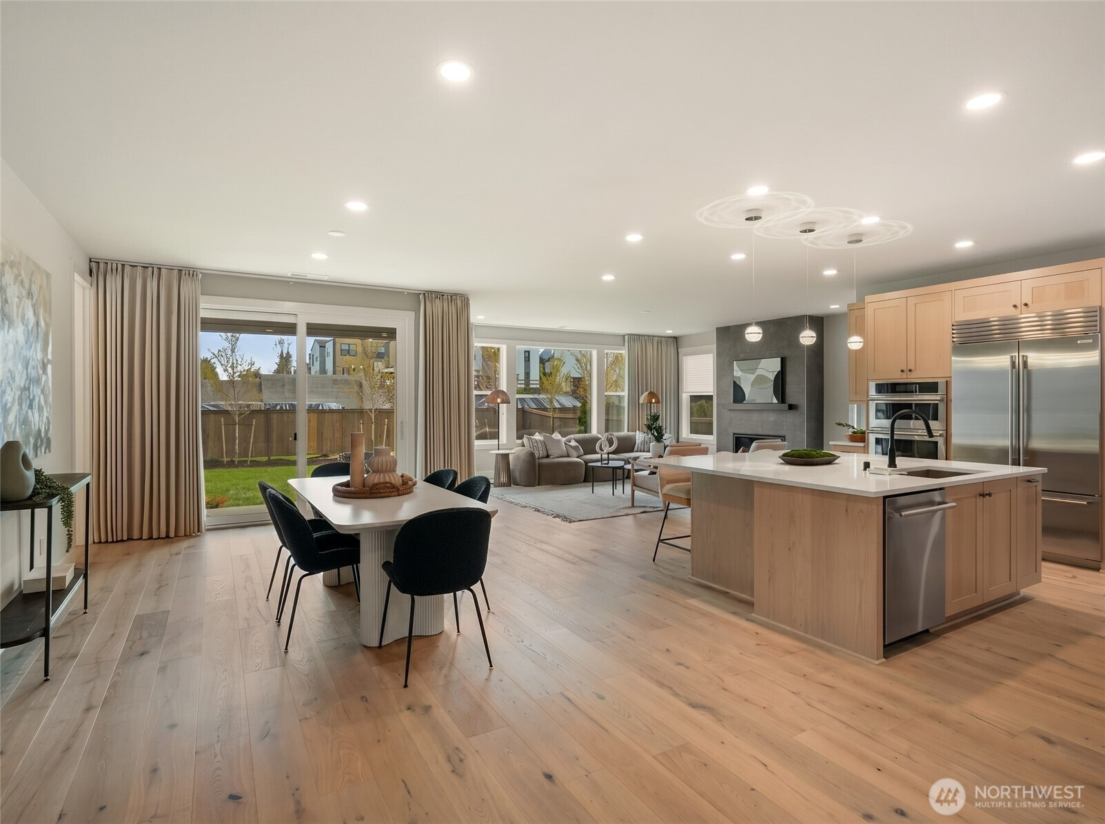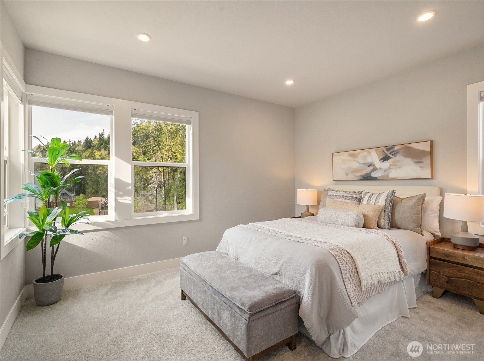 First resale opportunity at Alterra, Tri Pointe Homes’ luxury community in the heart of Newcastle. Completed in 2025 and set on a quiet cul-de-sac, this beautifully upgraded home offers the rare chance to own a nearly new residence without the wait. Beyond the dramatic two-story foyer, the main level opens to an expansive, seamless great room designed for modern living, with over $100K in upgrades including engineered hardwood flooring, a Sub-Zero refrigerator, JennAir professional-grade appliances, and custom window treatments throughout. The great room and backyard enjoy ideal southern exposure, filling the home with beautiful natural light. A private office and full guest suite on the main level add exceptional flexibility. Upstairs, a sunlit loft anchors the second floor, alongside a luxurious primary suite with an oversized walk-in closet, a secondary en suite, two additional bedrooms, a full bath, and another dedicated study. Incredibly functional and impressively livable, this home offers 5 bedrooms, 5 baths, 2 offices, and a loft in one of Newcastle’s most convenient locations—close to neighborhood trails and Newcastle Commons, roughly ten minutes to The Marketplace at Factoria, with easy access to I-90 and I-405, and served by the Issaquah School District.