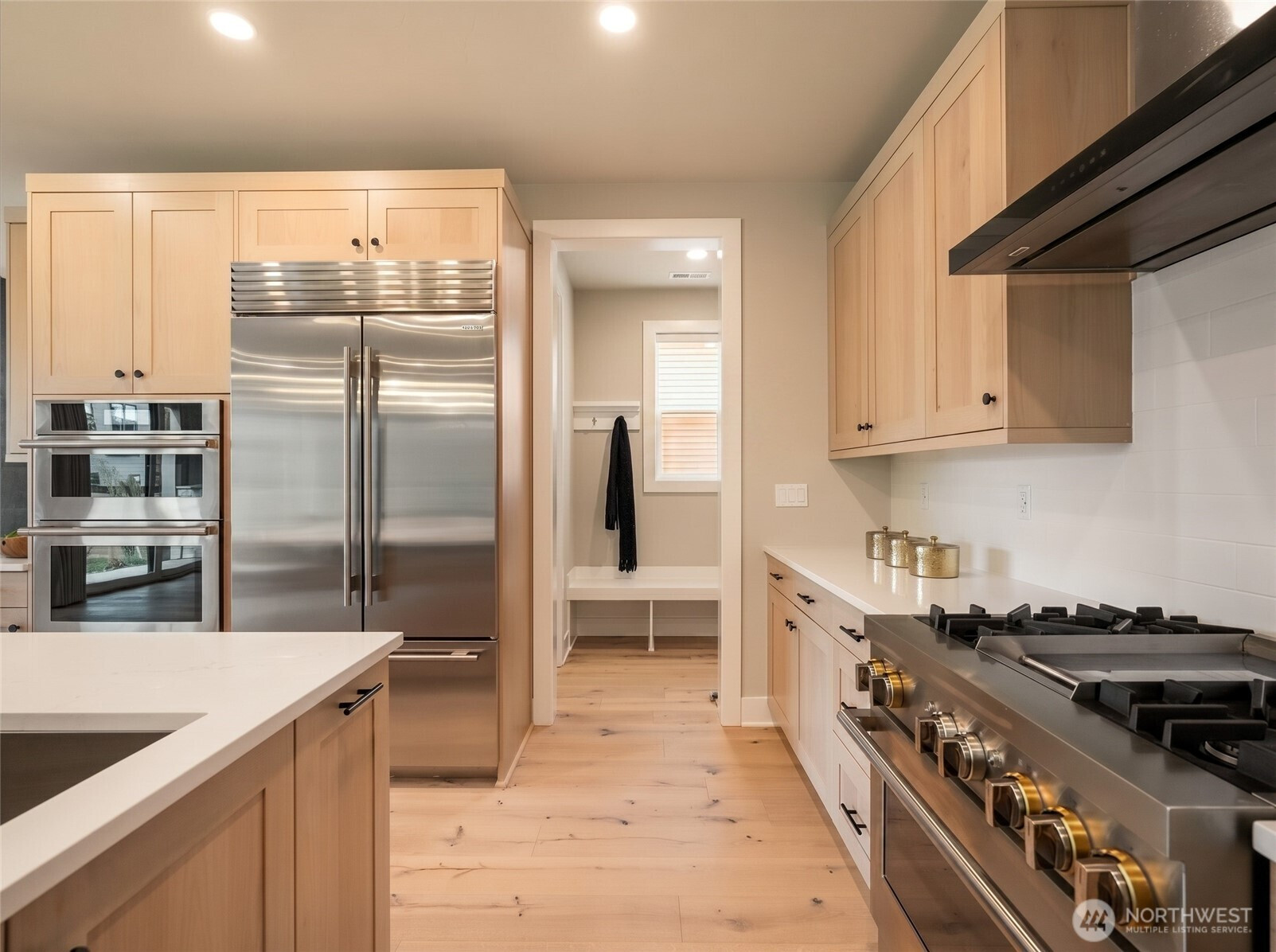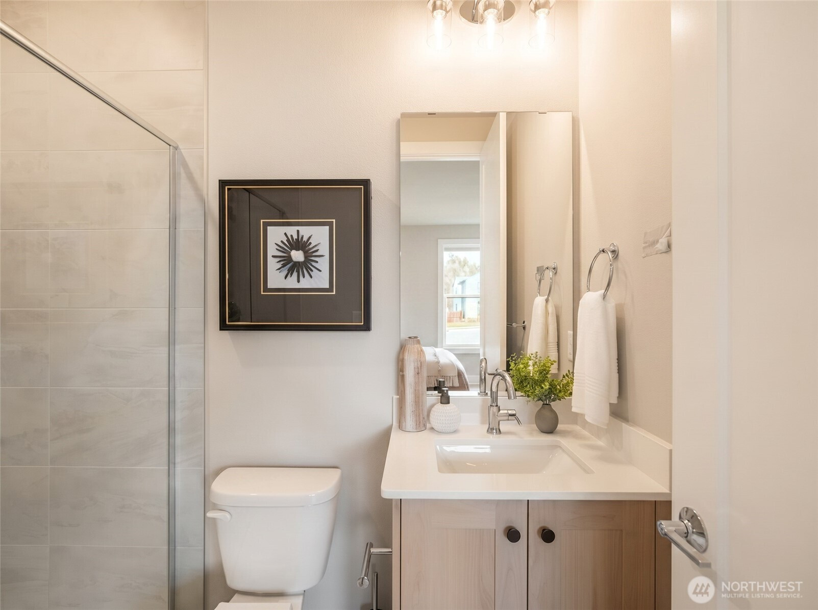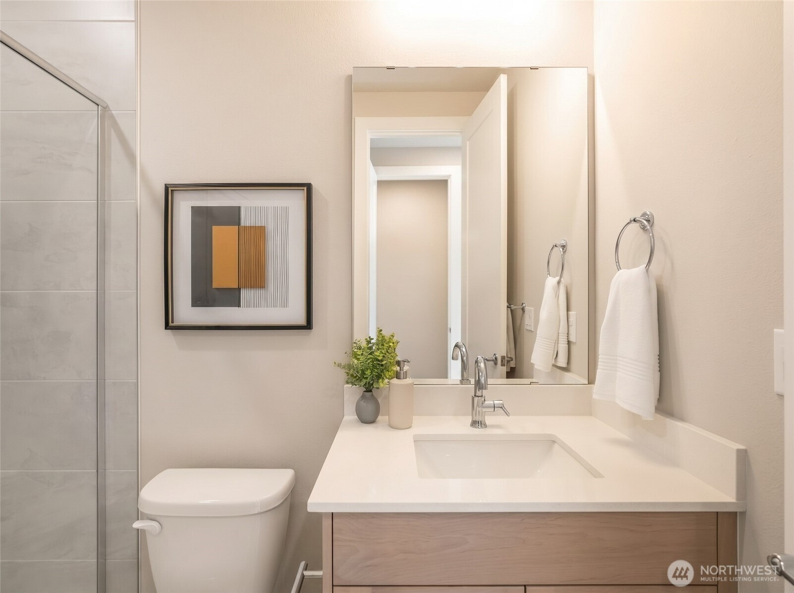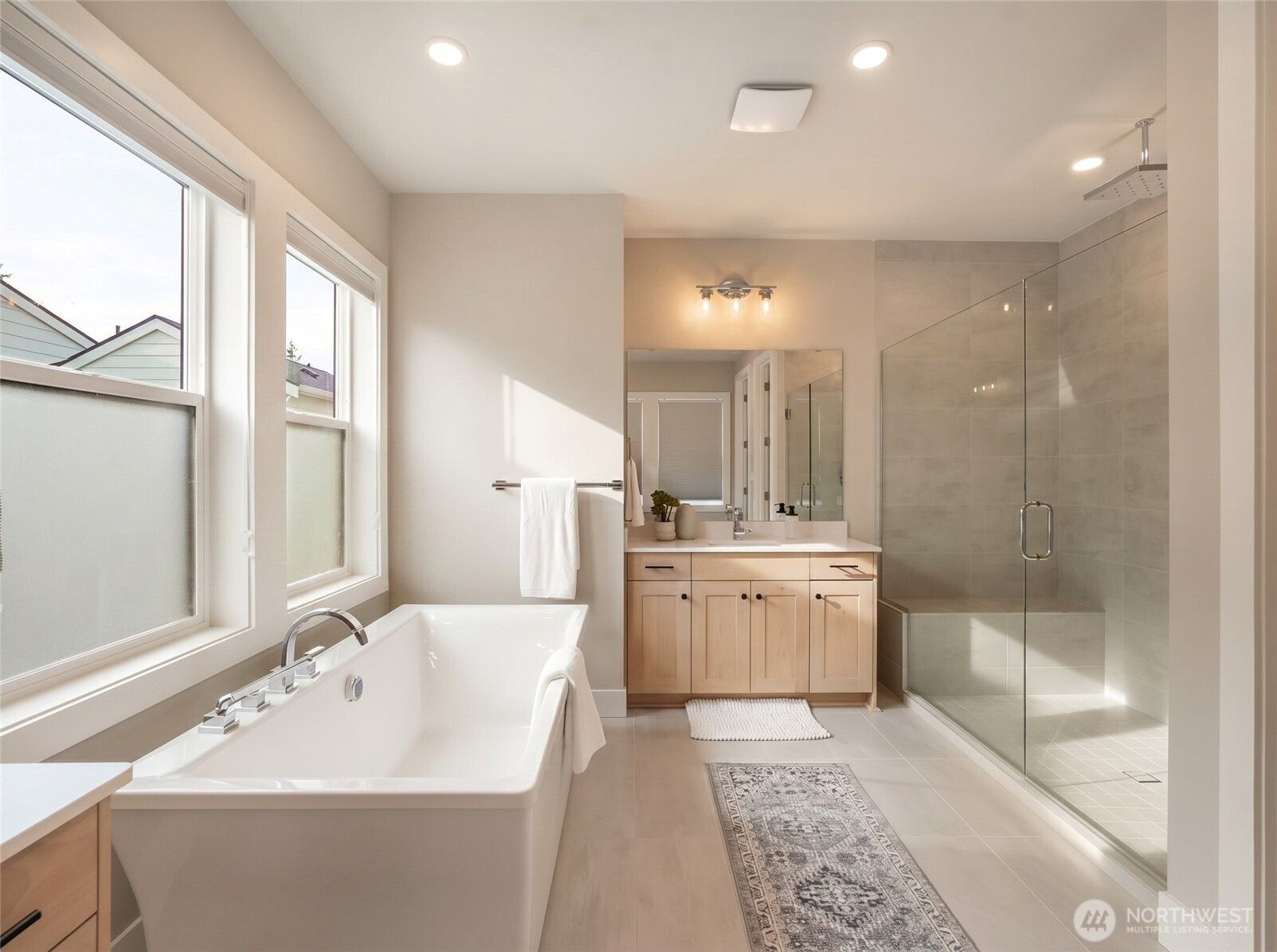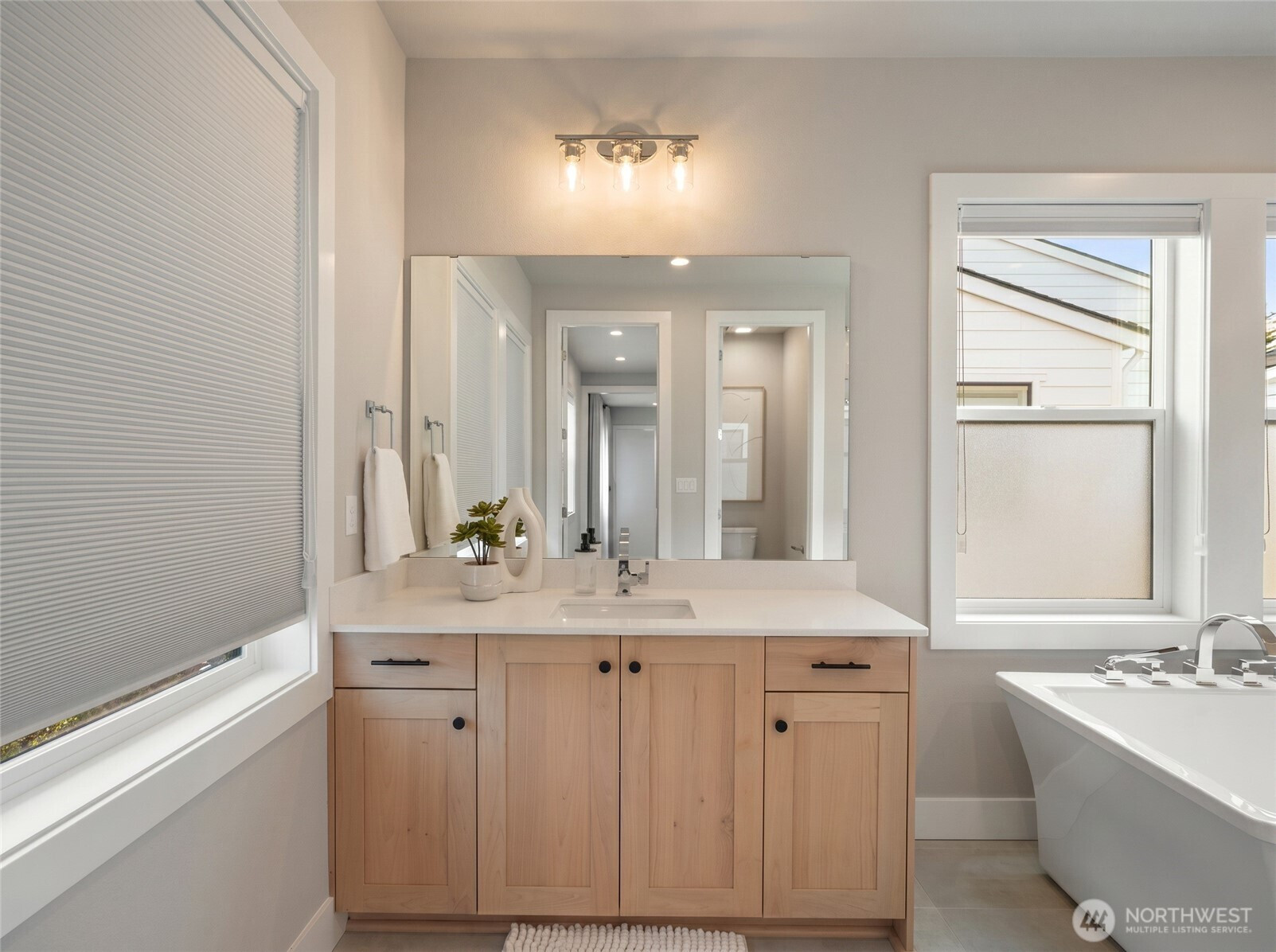 First resale opportunity at Alterra, Tri Pointe Homes’ luxury community in the heart of Newcastle. Completed in 2025 and set on a quiet cul-de-sac, this beautifully upgraded home offers the rare chance to own a nearly new residence without the wait. Beyond the dramatic two-story foyer, the main level opens to an expansive, seamless great room designed for modern living, with over $100K in upgrades including engineered hardwood flooring, a Sub-Zero refrigerator, JennAir professional-grade appliances, and custom window treatments throughout. The great room and backyard enjoy ideal southern exposure, filling the home with beautiful natural light. A private office and full guest suite on the main level add exceptional flexibility. Upstairs, a sunlit loft anchors the second floor, alongside a luxurious primary suite with an oversized walk-in closet, a secondary en suite, two additional bedrooms, a full bath, and another dedicated study. Incredibly functional and impressively livable, this home offers 5 bedrooms, 5 baths, 2 offices, and a loft in one of Newcastle’s most convenient locations—close to neighborhood trails and Newcastle Commons, roughly ten minutes to The Marketplace at Factoria, with easy access to I-90 and I-405, and served by the Issaquah School District.