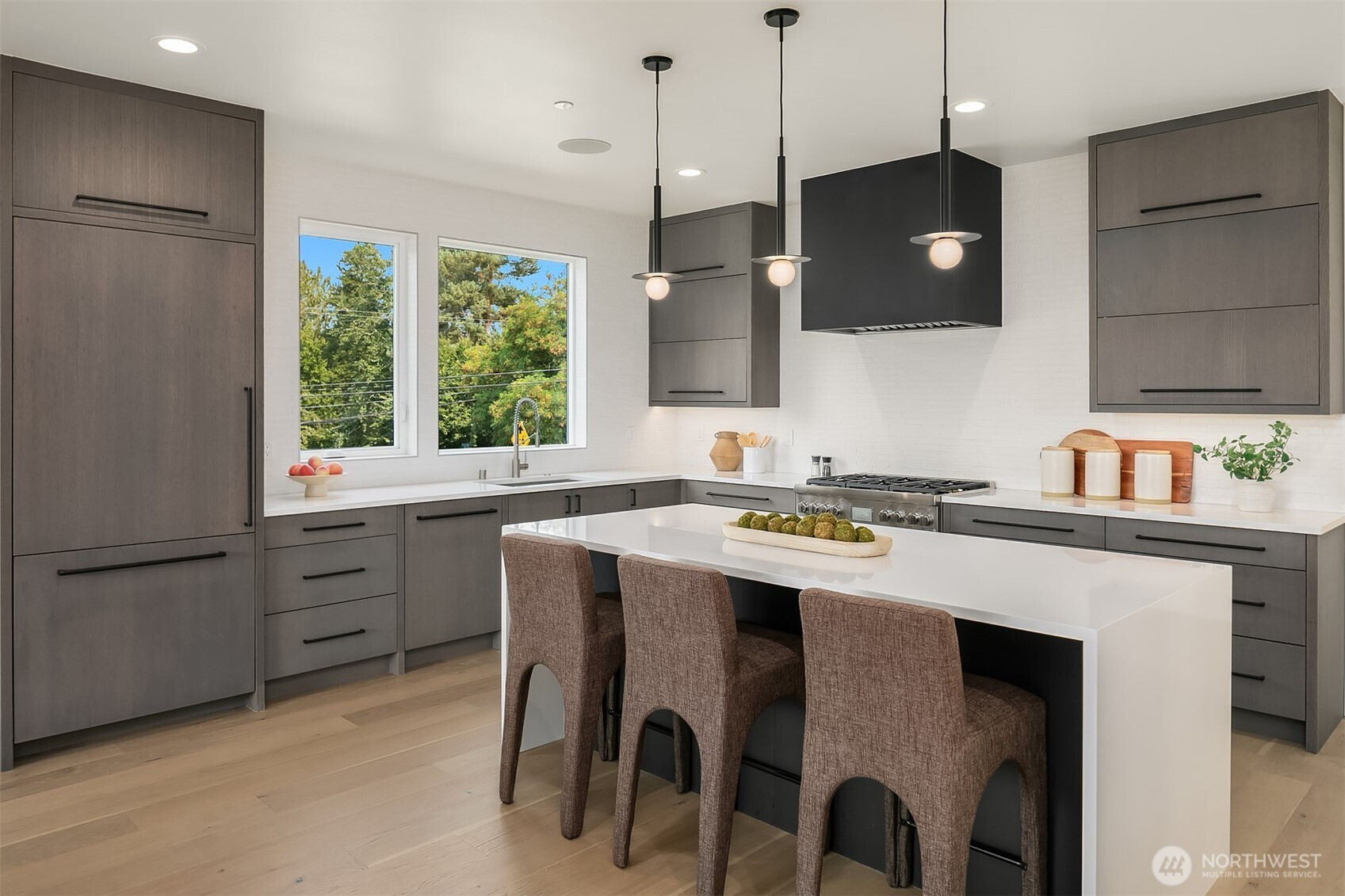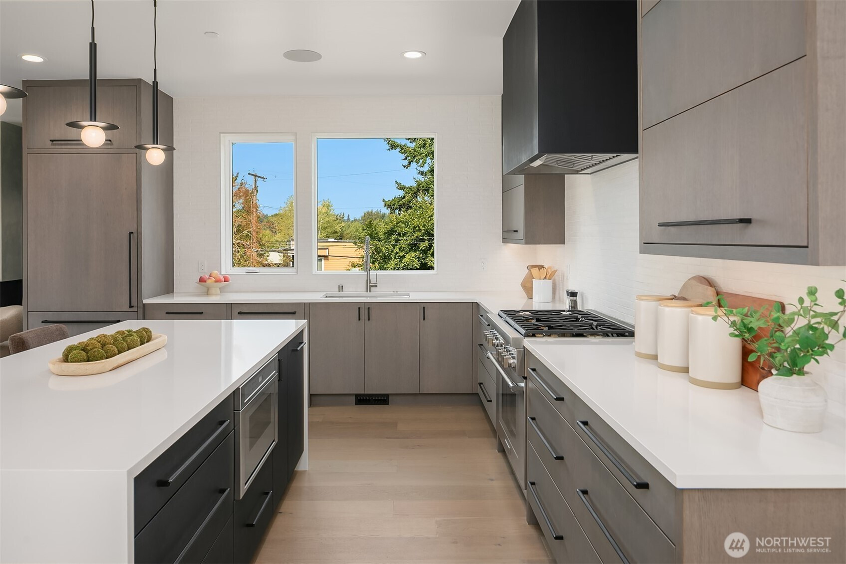 Enfort Homes presents, 'Maverick', ideally located in the Moss Bay neighborhood, just steps away from Google and all the DT Kirkland Amenities. These brand-new single family homes boast a modern, seamless aesthetic w elevated finishes & designer touches. 3 spacious view homes to choose from to suit an urban lifestyle ranging from 2647 to 3722sf. Large great rooms w patios & yards, sleek kitchens curated for the inspired chef, fully equipped w Thermador appliances. Lot 1 features main floor office + bedroom + 3/4 bath. Entertainment sized bonus room in the lower-level w guest suite. Upper-level features luxurious primary suite with gas fireplace and lavish spa bath + walk-in closet + 2 additional en-suites. A/C, 2-car garage w EV charging.