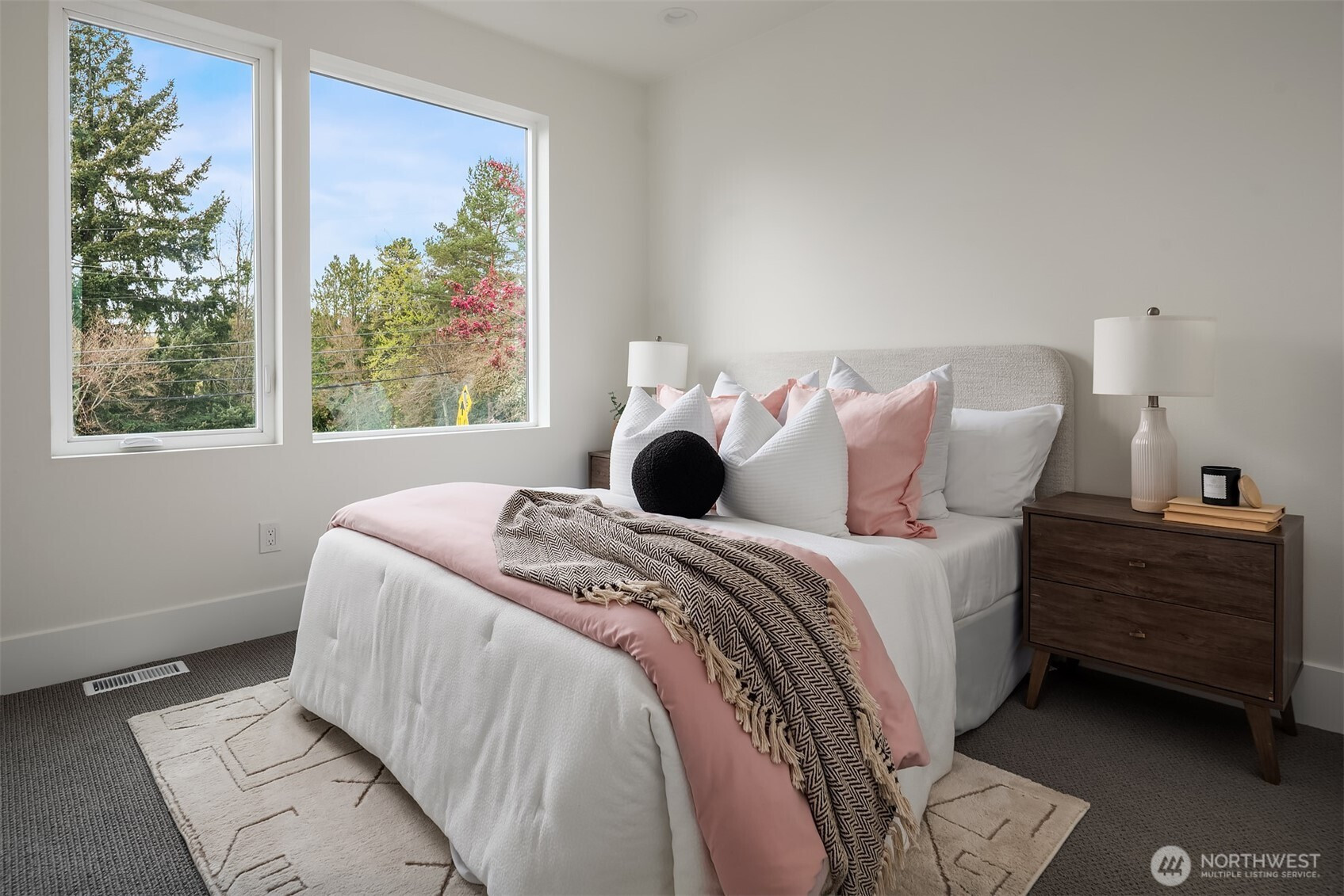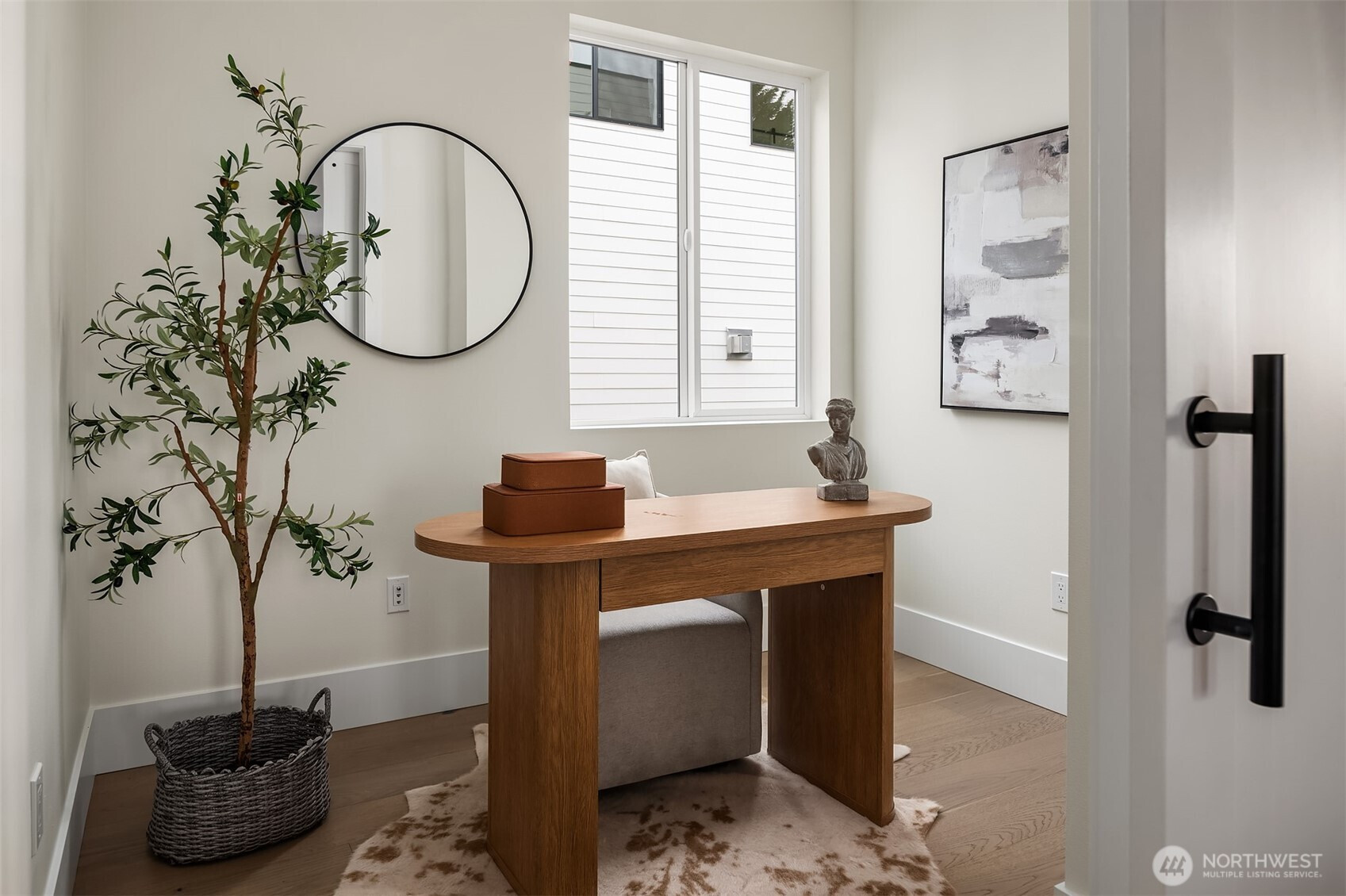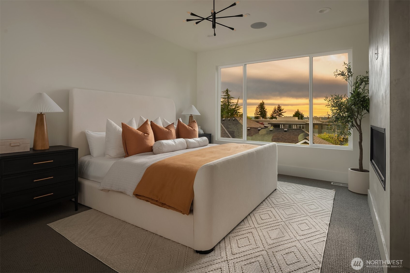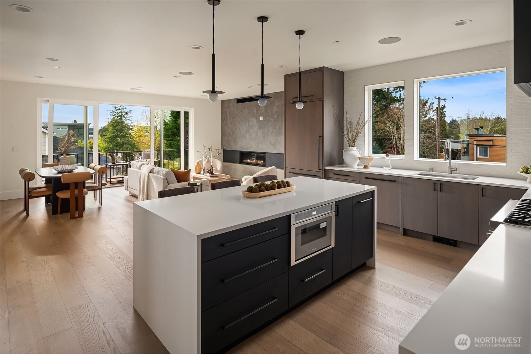 Enfort Homes, Maverick, is a single-family home designed for the way people live and work today. Offering 3,287 square feet of modern, flexible space just moments from Kirkland Urban, Google and the Cross Kirkland Corridor. The main level is built for daily rhythm: an open kitchen with Thermador appliances connects seamlessly to living and dining spaces, while a dedicated office, guest bedroom, and ¾ bath create true work-from-home flexibility. Large windows fill the home with natural light throughout the day. Step out to the sunset-facing deck for a reset between meetings or easy evening hosting. Downstairs, a spacious bonus room and guest suite provide separation that is ideal for a media space, home gym, or long-term guests. Upstairs, the primary suite offers a quiet retreat with a gas fireplace, spa-like bath, and walk-in closet, complemented by two additional en-suite bedrooms. Finished in a darker, modern palette, it also includes everyday comforts like A/C, EV charging, and a 2-car garage. What sets Enfort’s Maverick apart is how effortlessly it connects you to everything. Located minutes to downtown Kirkland, you’re close to local staples like Kirkland Bakery, groceries, restaurants and fitness facilities, making it easy to step out for coffee, a workout, or a walk without getting in the car. At the same time, a private side yard offers a rare space to unwind or entertain at home. A home that fits the rhythm of your day-work, downtime, & everything in between.