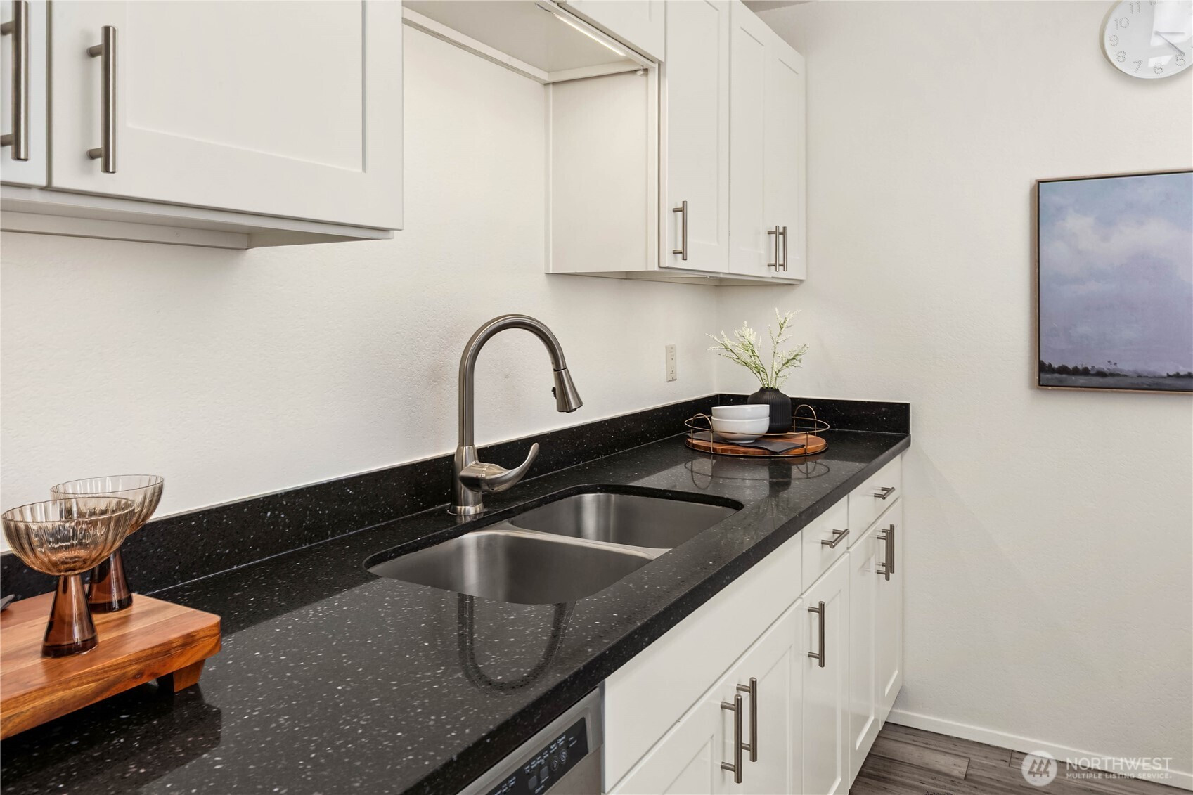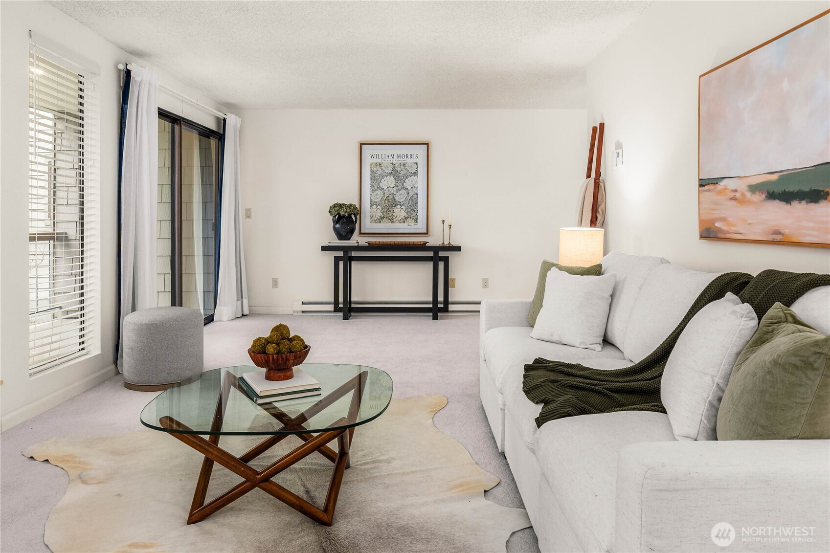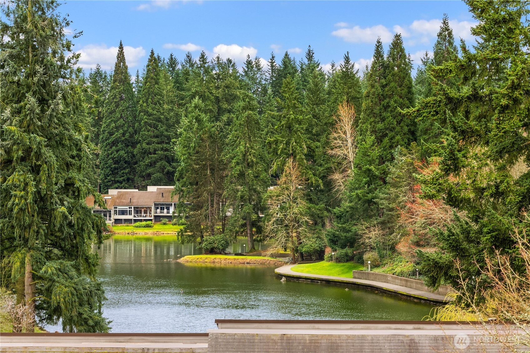 Welcome to the highly sought-after Sixty-01 Village! This bright 3rd floor end-unit condo features 4 private balconies, elevator access, and beautiful lake views from the living room. Freshly painted with new carpet, this home offers an updated kitchen with granite countertops, stainless steel appliances, a spacious living room with wood-burning fireplace, and large windows that bring in abundant natural light. The layout includes 3 spacious bedrooms, providing flexibility for working from home, guests, or hobbies. Additional features include updated bathrooms with granite counters, walk-in closet, storage, unit, and 2 reserved garage parking spaces, plus ample guest parking. Set within 86 acres of beautifully maintained grounds, Sixty-01 Village offers resort style amenities including 4 swimming pools, lakes, fitness center, sauna, tennis, pickleball and racquetball courts, volleyball, clubhouse, BBQ areas, and scenic trails connecting to Microsoft, Marymoor Park, and Bridle Trails Park. Located across from Bellevue Golf Course and under a mile to Bridle Trails Shopping Center, with easy access to Downtown Redmond, Kirkland, Bellevue, I-405, and SR-520. Top-rated Lake Washington School District. No rental cap.