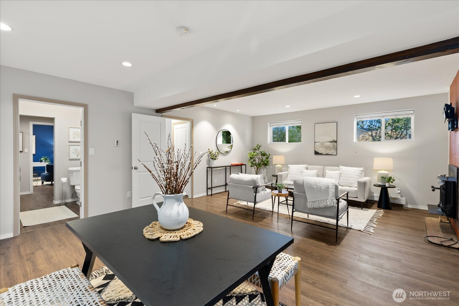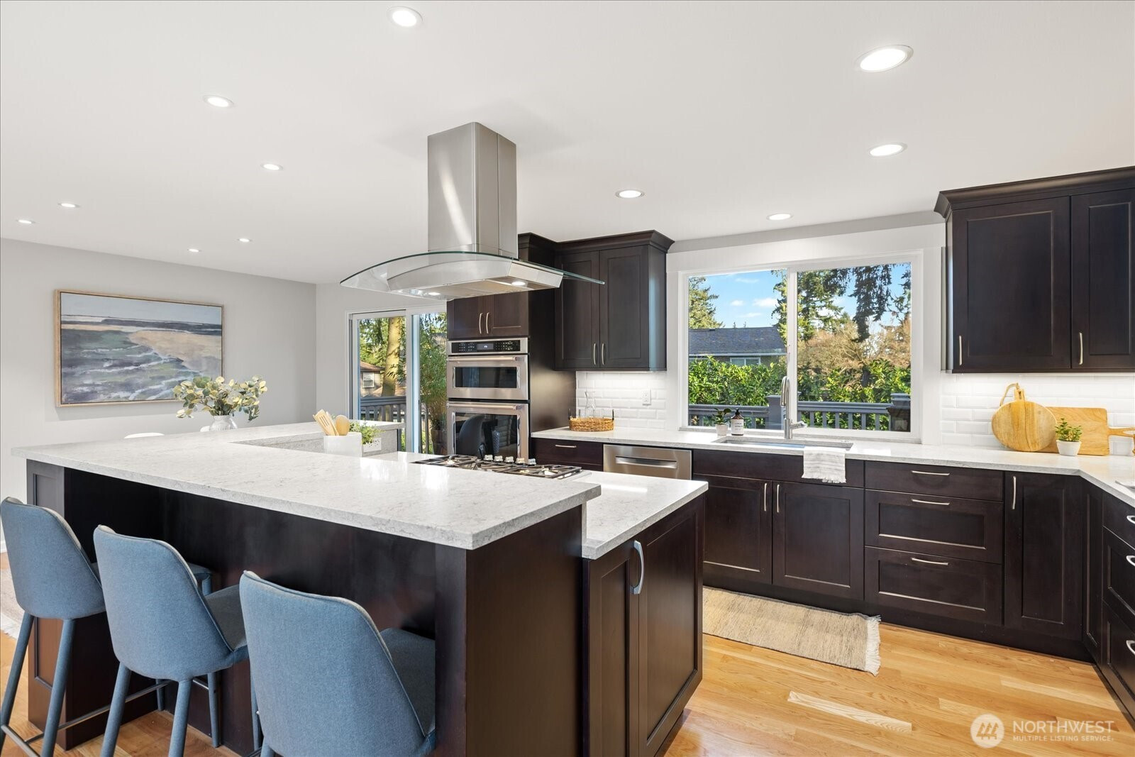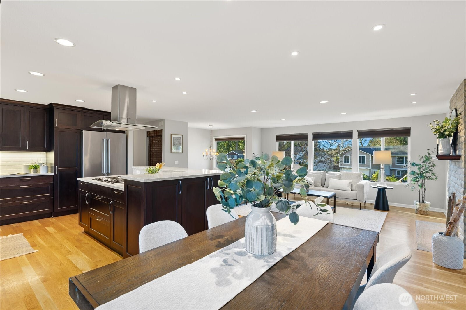 Nestled down a quiet cul-de-sac in the coveted Finn Hill neighborhood of Kirkland, you will find this meticulously maintained and beautifully renovated home. Stunning chefs kitchen with SS appliances, custom cabinetry, quality finishes and abundant natural light with views of the Cascades. Open floorplan with huge island and gas cooktop allow for easy entertaining in the spacious living and dining areas. Gather around the wood burning fireplace or step outside onto the composite deck to dine al fresco. Three large bedrooms including a primary ensuite with towel warmer, heated floors and dedicated AC. Downstairs you'll find a spacious rec room with second fireplace, providing endless possibilities for entertaining. Bonus room would make excellent work from home office, game room or studio. Front and back yards offer ample space to garden, play, bbq or simply relax in the Jacuzzi hot tub. Large two car garage and expanded driveway for extra parking. Updated systems throughout include newer roof, heating, cooling, electrical, water main, paint and flooring. Located just minutes from parks, shops, restaurants and within the Lake Washington School District. Welcome Home!