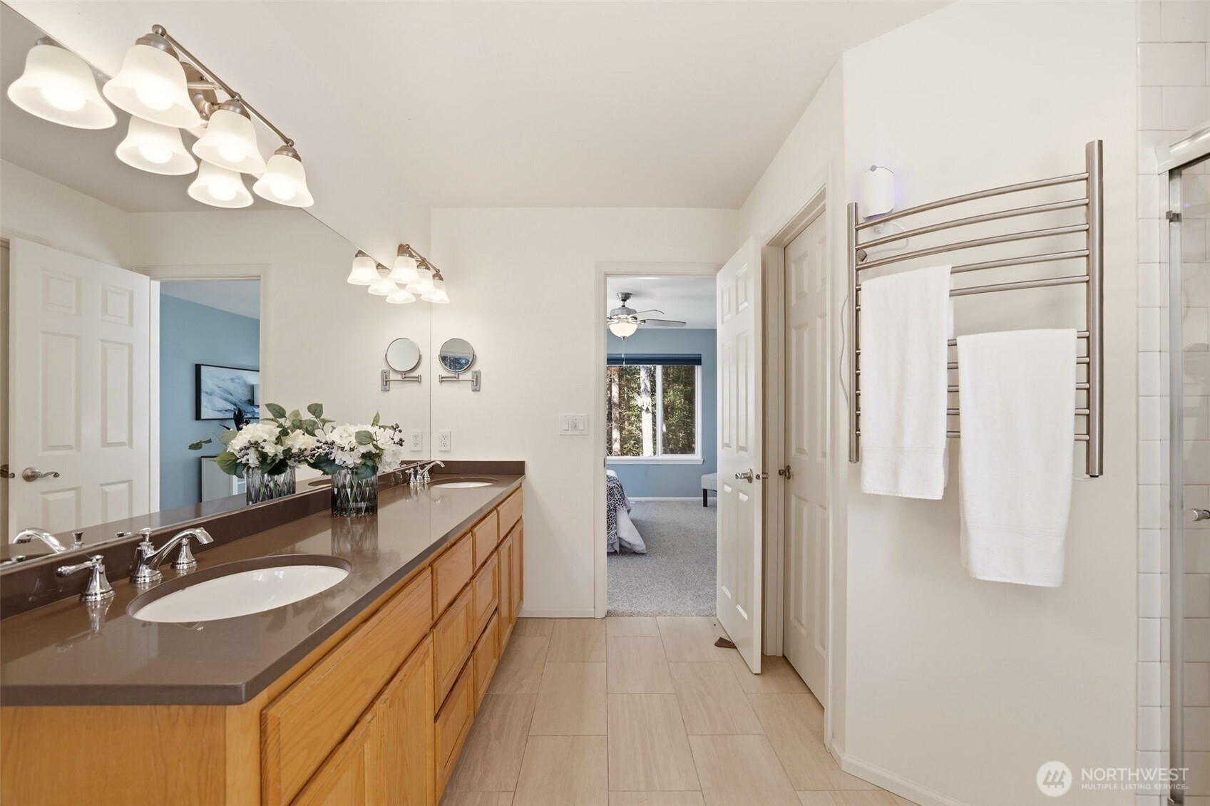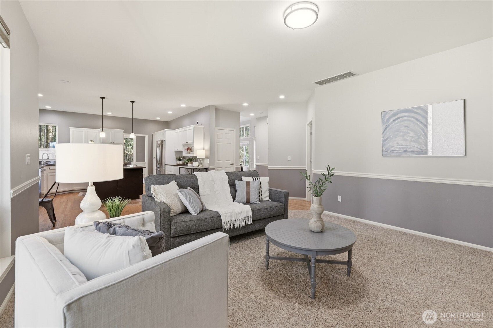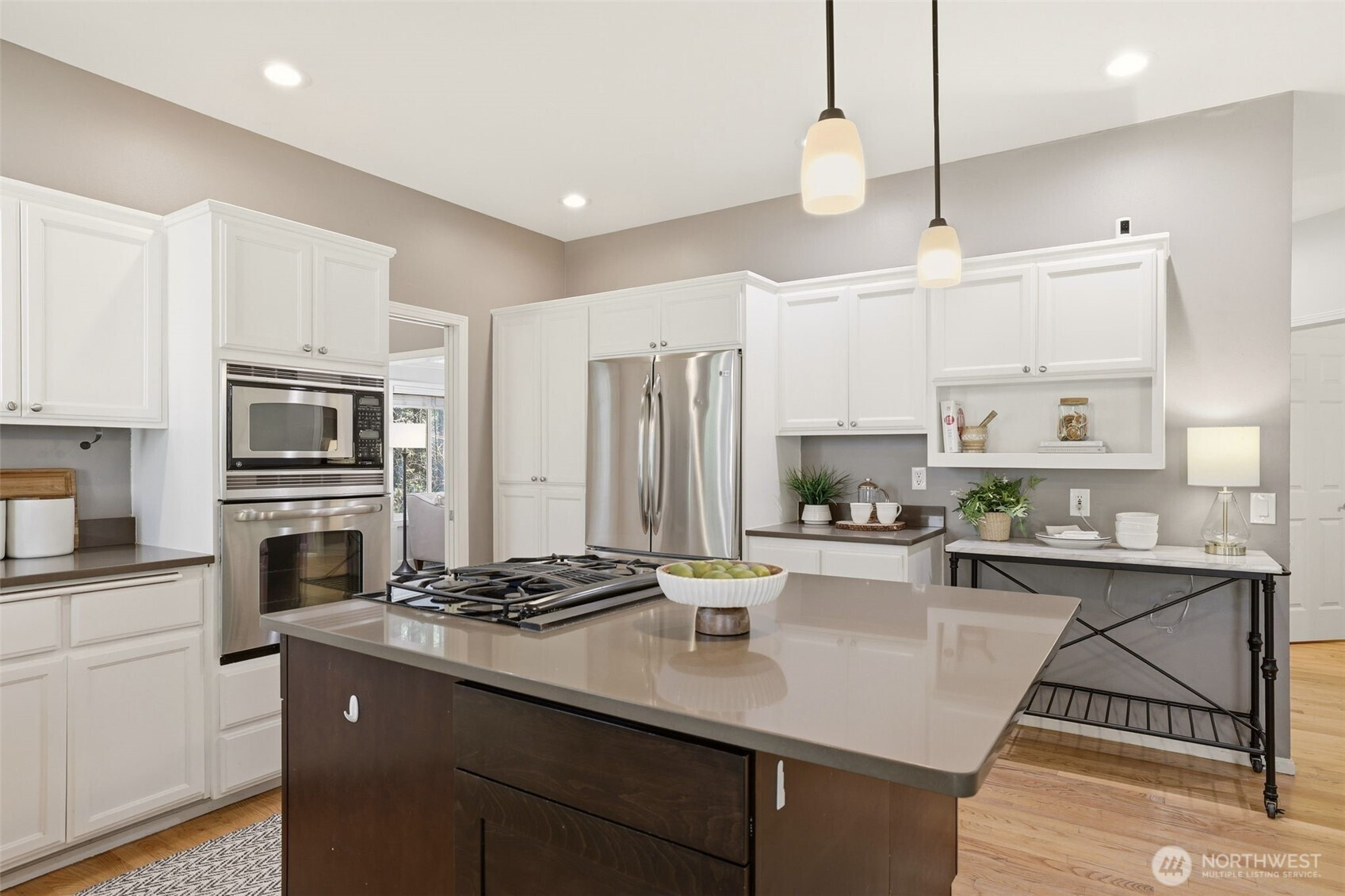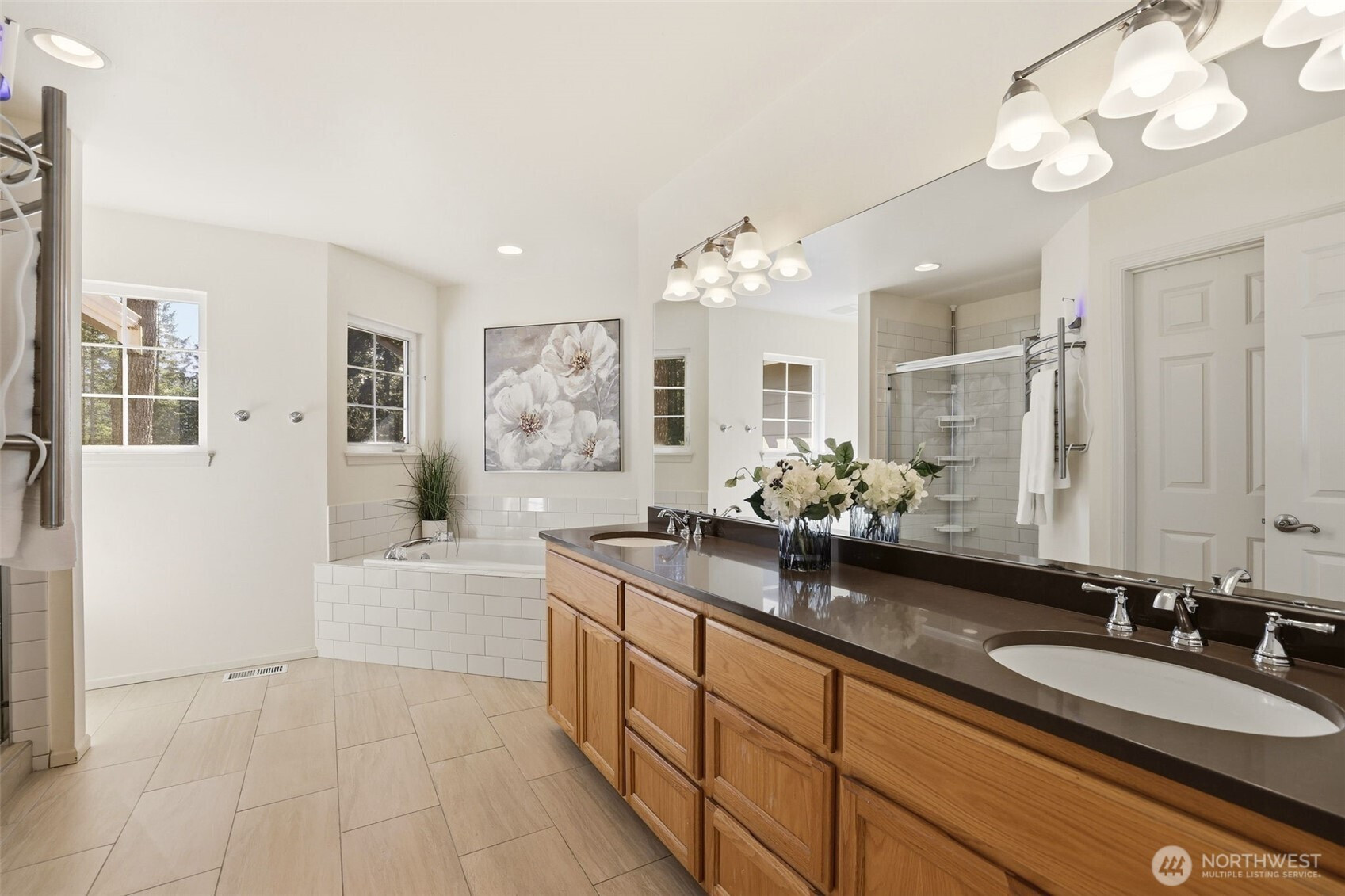North Bend Retreat offers space, privacy, & functionality in a setting that’s increasingly hard to find. Situated on a level, fully fenced shy half-acre at the end of a quiet cul-de-sac with only 1 neighboring home, the property backs and borders protected land ensuring long-term privacy and uninterrupted natural surroundings. Inside, the home is designed for both everyday living and flexibility. The kitchen features quartz countertops & opens directly to the family room w/ a gas fireplace & French doors leading to the backyard. Solid hardwood flooring runs through the entry, kitchen, powder bath, & formal dining. A dramatic entry w/ 20’ ceilings & formal living room creates a strong first impression, while a dedicated office & large main-level bonus room w/ vaulted ceilings offer options for a bedroom, media space & more. Upstairs, the primary suite is positioned to capture mountain views with walls of windows, French doors, & an spacious 5-piece bath. All bedrooms are generously sized, w/ ample storage throughout. The outdoor space is an expansive, level yard featuring a covered cabana with pull-down screen for outdoor movie nights, playhouse, storage shed, and open yard space framed by evergreens and mountain views. Addl highlights include a massive 4-car tandem garage w/ side entry, EV-ready 240V circuit, generator wiring, & quick access to I-90 just blocks away, connecting you to Bellevue, Redmond, & Seattle while living at the base of trailheads & year-round recreation