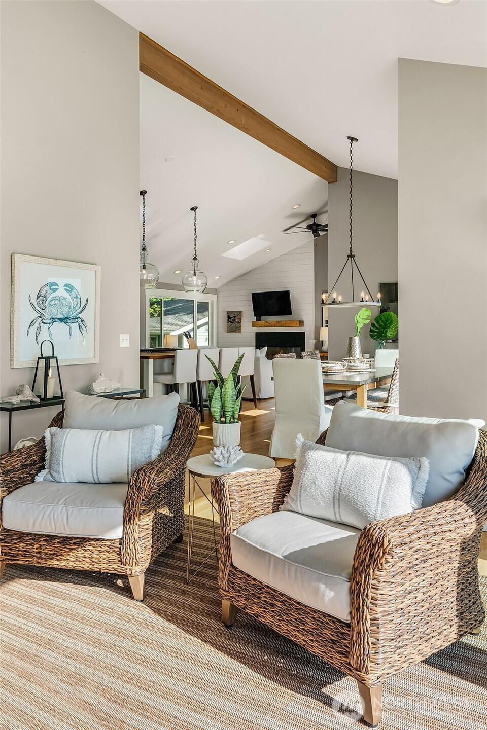Experience the best of waterfront living at this beautifully renovated home in idyllic Paradise Cove.Set along a peaceful stretch of private beach, this property offers breathtaking west-facing views, unforgettable sunsets, and the chance to spot passing marine life right from your doorstep.Designed for seamless indoor-outdoor living, the home features professionally curated interiors, expansive folding glass doors, walls of windows, and spacious upper and lower decks-perfect for relaxing or entertaining.Enjoy year-round comfort with fireplaces on both levels, air conditioning for summer days,and a hot tub for stargazing nights.Whether you’re roasting s’mores by the fire pit or soaking up the tranquility,this is Vashon Island at its finest.