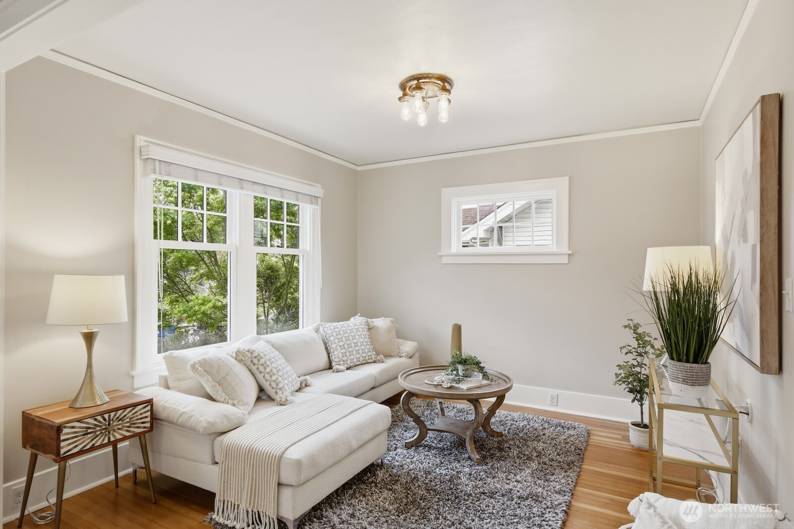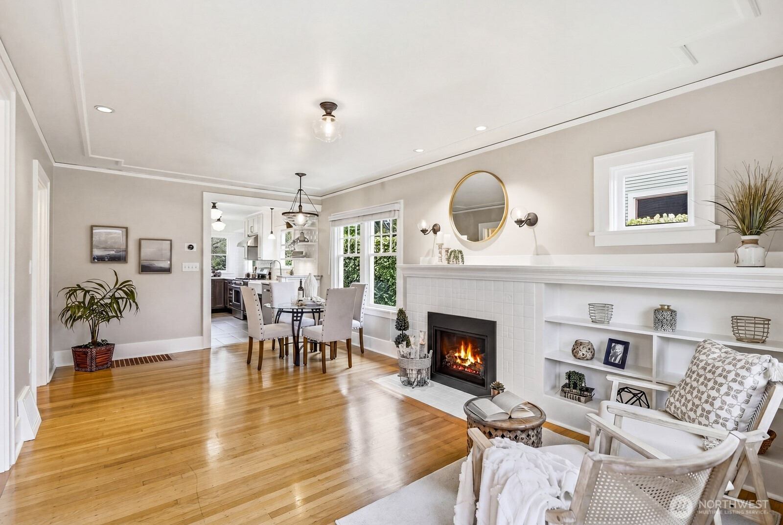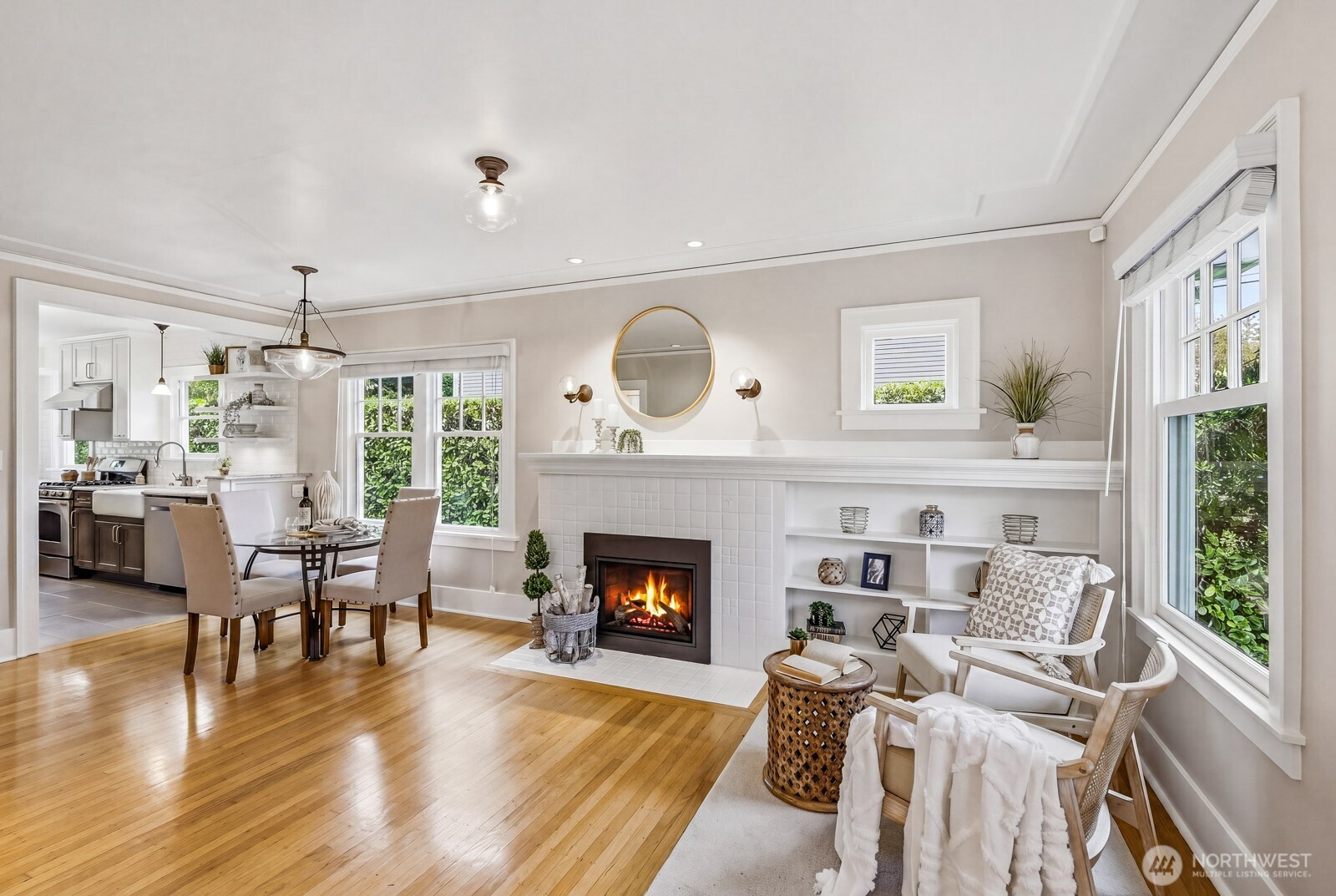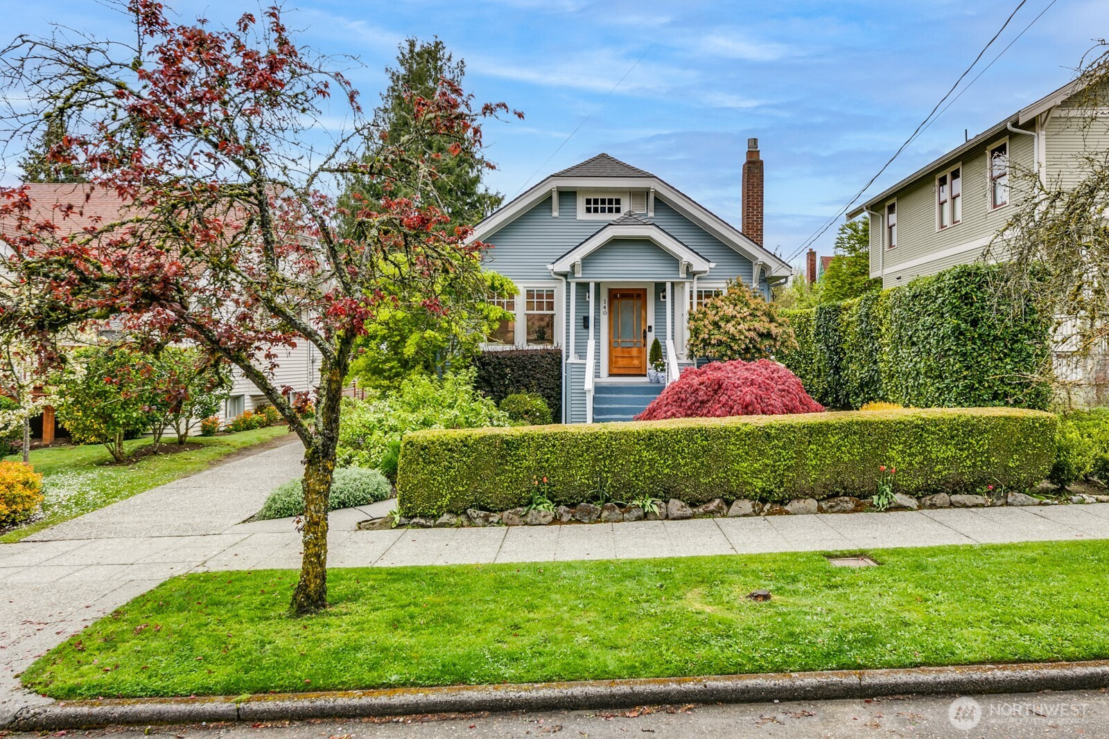 Splendid Phinney Ridge craftsman filled with character! Ideally located on 78th Street just steps from local cafés, parks, and schools. This inviting home offers approximately 1,650 square feet with 3 bedrooms plus an office and 1.75 baths, blending classic charm with thoughtful updates. This fantastic floor plan brilliantly uses every square foot and features a beautifully remodeled main floor bathroom, an updated kitchen, and a cozy fireplace with a large mantle and wonderful built-ins that create a warm, welcoming atmosphere. Natural light pours through south-facing windows, providing a "light and bright" feeling throughout the main floor. The lower level offers 2 bedrooms, an office, and a three-quarter bathroom/utility room. Outside, enjoy sunny summer evenings on the private back patio, complemented by a detached garage (wired for EV charging) and yard space perfect for relaxing or entertaining (exterior equipped with Rainwise). All of this in a fantastic location that’s ideal for long walks and just moments from some of the neighborhood’s awesome amenities - you’ll instantly feel right at home.