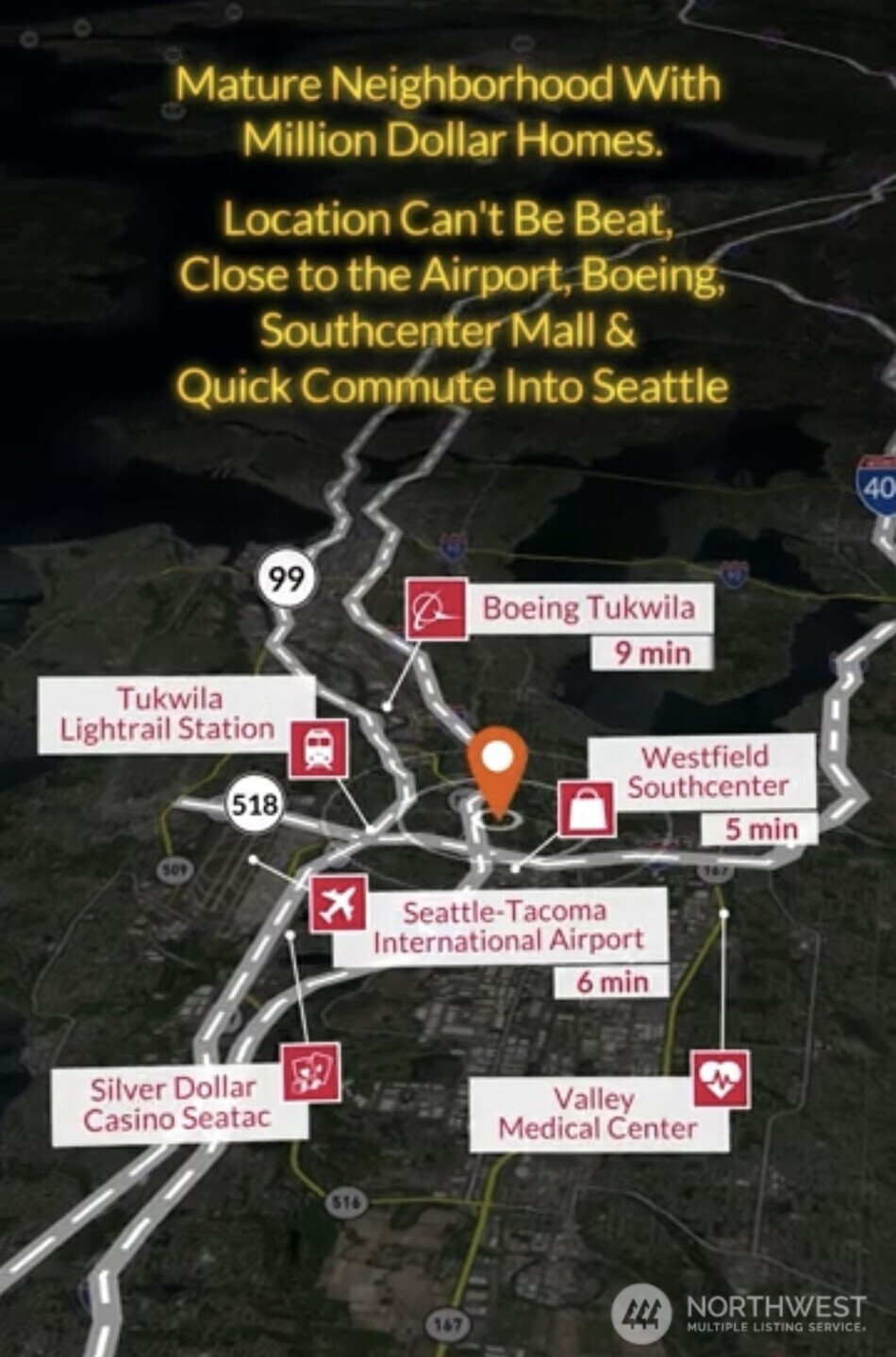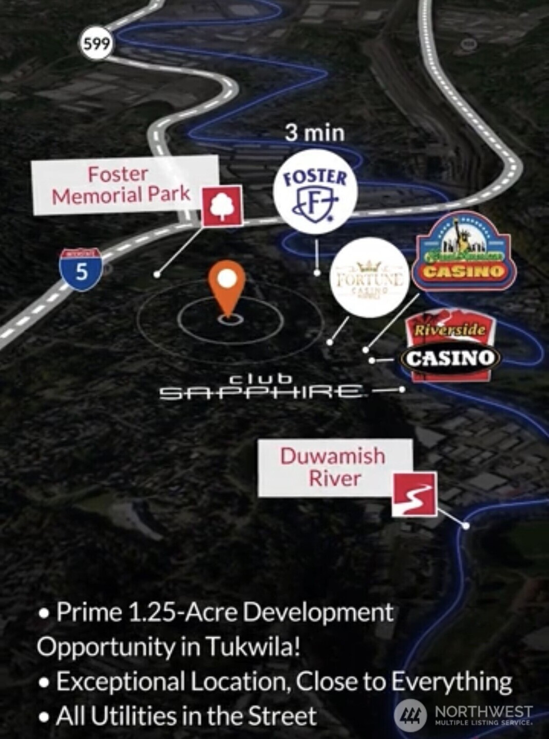 Prime 1.25-Acre High Yielding Development Opportunity in Tukwila! Invest in 1.25 acres in the heart of booming Tukwila with brand-new LDR (Low Density Residential) zoning—offering exceptional flexibility and upside. Public power, water & sewer are available in the street (56th Ave S), helping streamline the development process. NO Sewer cap charges in Tukwila. Even better, per King County GIS mapping, the property is not impacted by sensitive or critical areas. The King County Soil Survey (USDA Soil Conservation Service) identifies the site as Urban land–Alderwood complex, offering added confidence as you plan your build. Unmatched location with quick access to I-5, I-405, and SeaTac Airport. Just minutes to Valley Medical Center, Foster Golf Course, Southcenter Mall, Boeing, and downtown Seattle. The parcel is accessible from both 55th Ave S (west) and 56th Ave S (east), providing flexible site planning options. Rare opportunity to secure a sizable, development-ready parcel in a rapidly growing corridor. Build multiple homes, create a private estate, or explore income-producing possibilities with DADU's or subdivide—the choice is yours.
