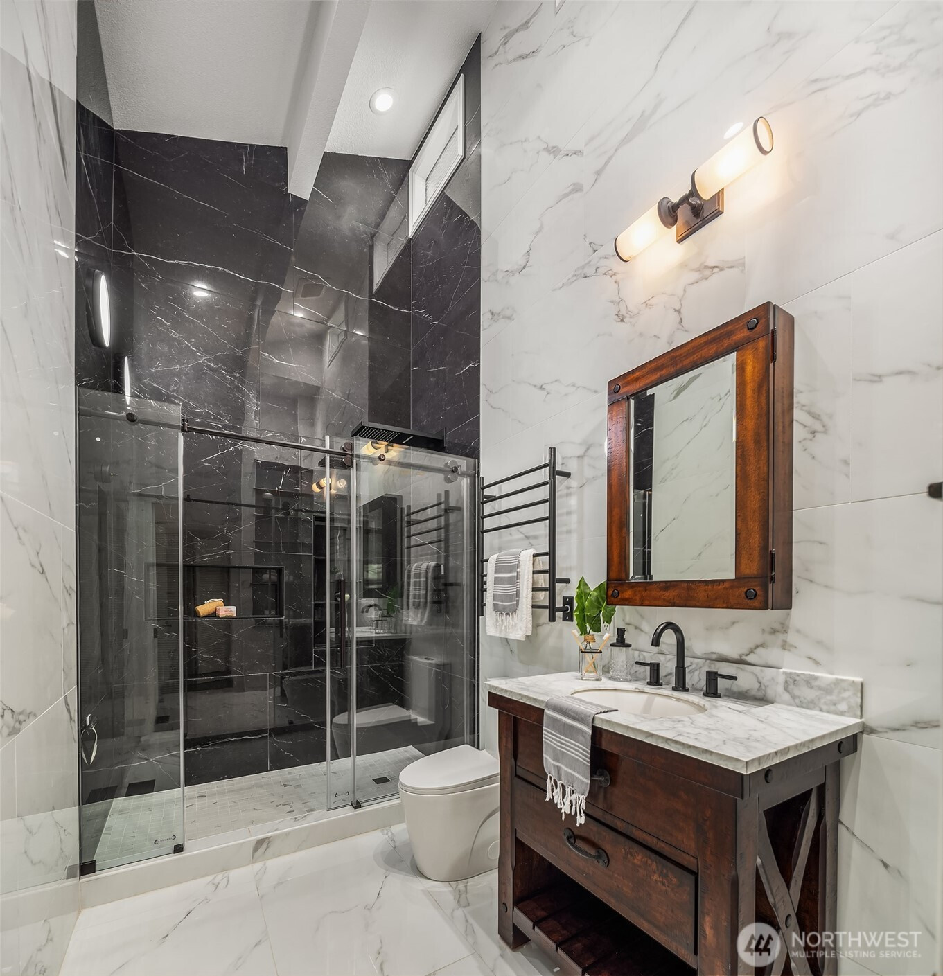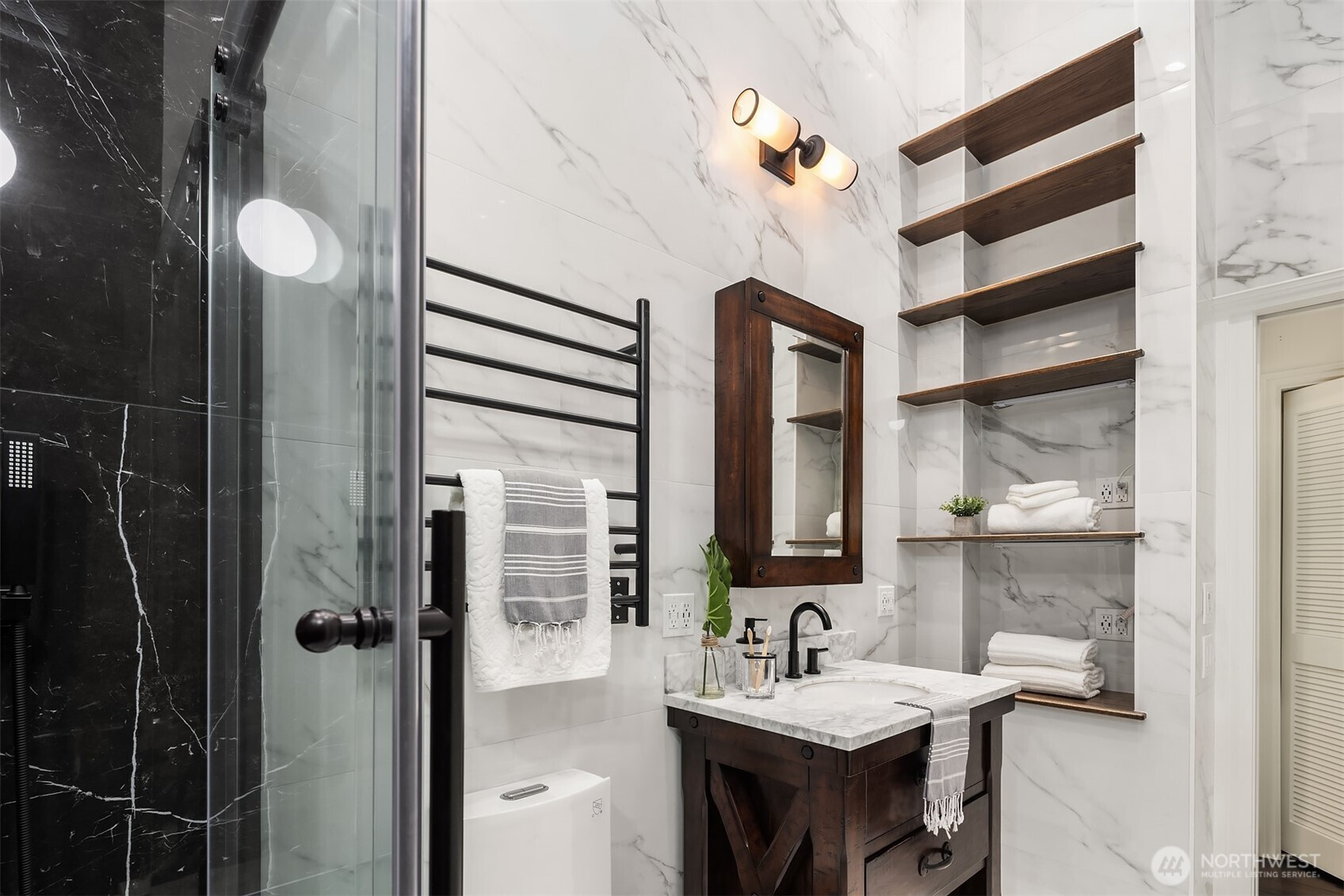 Fully remodeled 2 bed 2.5 bath combining top tier designer finishes with timeless comfort. Ideally located townhouse minutes from DT Bellevue. Spacious & sun-filled living w/ vaulted ceilings, soaring windows & luxury updates. The bathrooms impress with style & quality. Thoughtful custom lighting enhances throughout. Open living area flows to a private deck ideal for relaxing or entertaining. Kitchen shines with stainless appliances, stone counters & elegant design for cooking or hosting. Upstairs, the vaulted primary suite offers style & space, plus charming laundry closet w/ sink. Extras include 2-car garage & low HOA dues. Move-in ready with no detail spared. Easy access to I-90 & the new South Bellevue Light Rail Sta