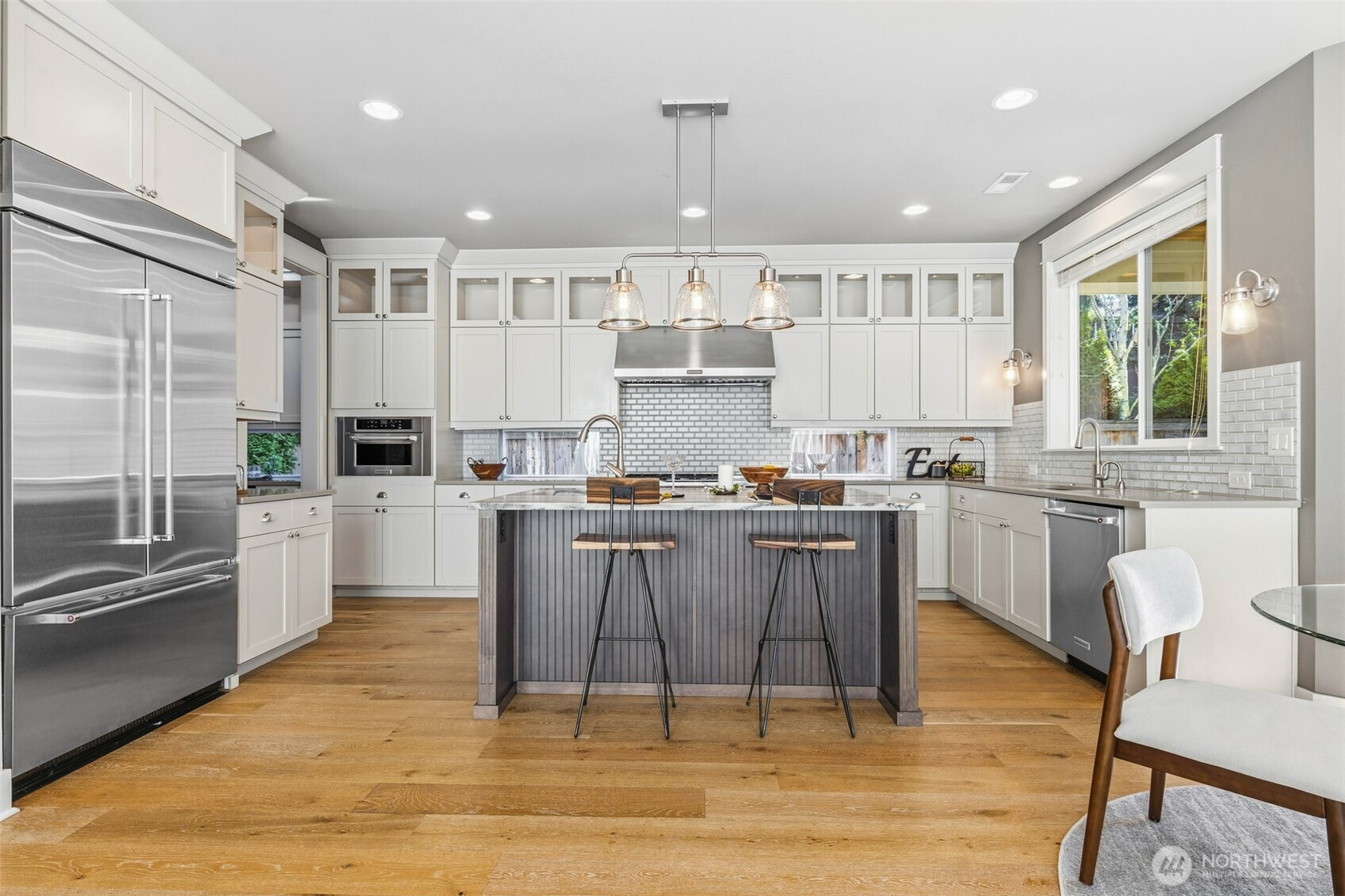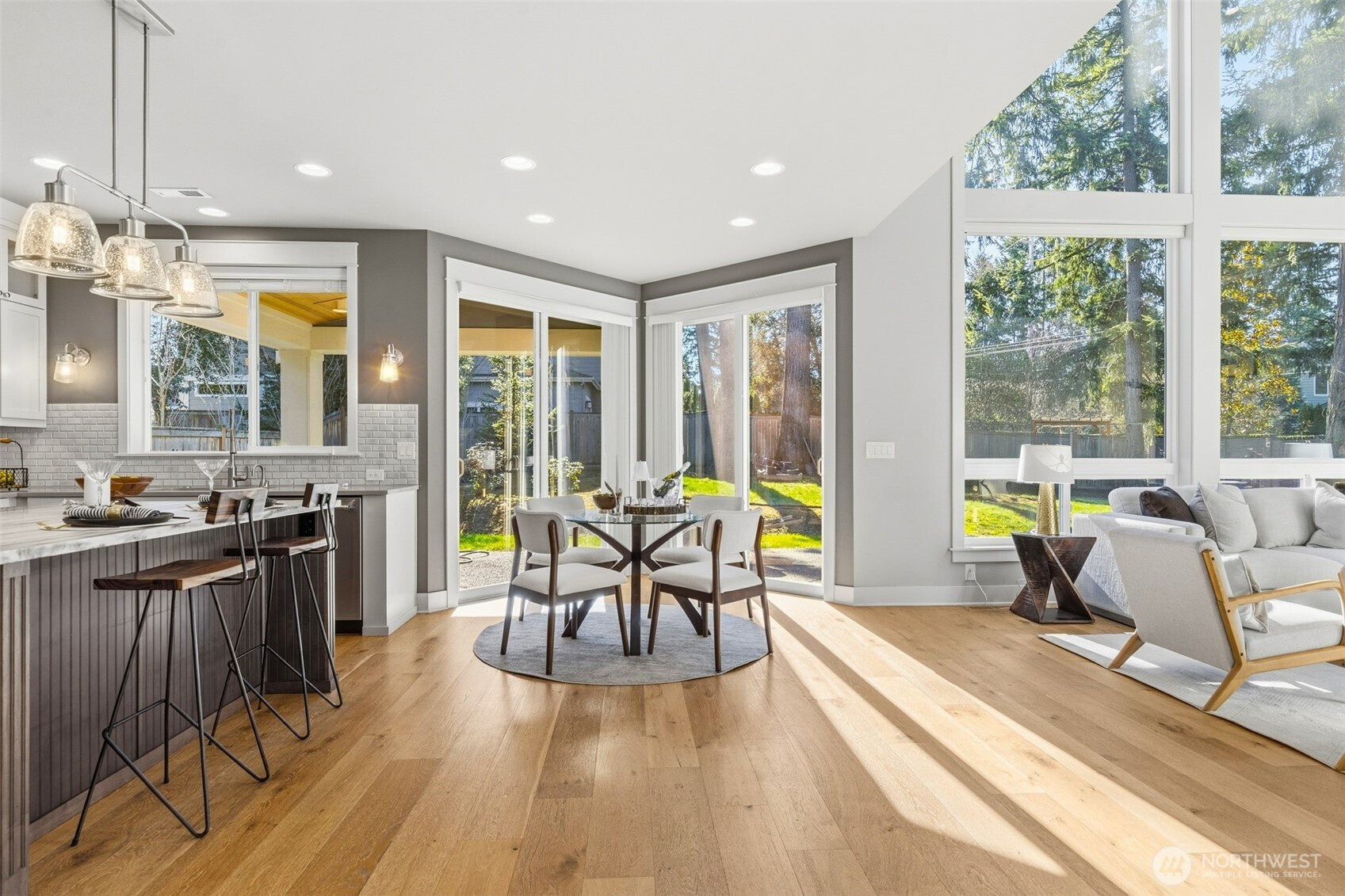 The Signature Collection by Murray Franklyn presents a thoughtfully designed for today’s lifestyle with 5 spacious bedrooms, 4.5 bathrooms, a private den, expansive bonus room offering flexibility for work, play, and multigenerational living. This re-listing shines brighter than ever with new carpets and fresh interior paint, giving the home a crisp, and truly move-in-ready appeal. From the moment you enter, you’ll notice quality craftsmanship and elevated finishes that define a Murray Franklyn home. The chef’s kitchen is beautifully appointed with slab quartz countertops, custom tiled backsplash, stainless steel appliance package, elegant “Feiss” pendant lighting, and generous cabinetry designed for both everyday living. The open-concept layout flows seamlessly into the inviting family room, highlighted by dramatic full-wall windows that flood the space with natural light and create a warm, welcoming atmosphere. Retreat to the luxurious primary suite featuring a spa-inspired bath with quartz surfaces, designer tile work, soaking tub, and a spacious walk-in closet. Modern comforts abound with an On-Q wiring system, 95% energy-efficient furnace, tankless on-demand hot water, and central A/C — ensuring comfort, convenience, and efficiency. Every detail reflects timeless design paired with practical innovation. Situated within award-winning schools, this is an exceptional opportunity to own a meticulously crafted home in one of the Eastside’s most desirable communities.