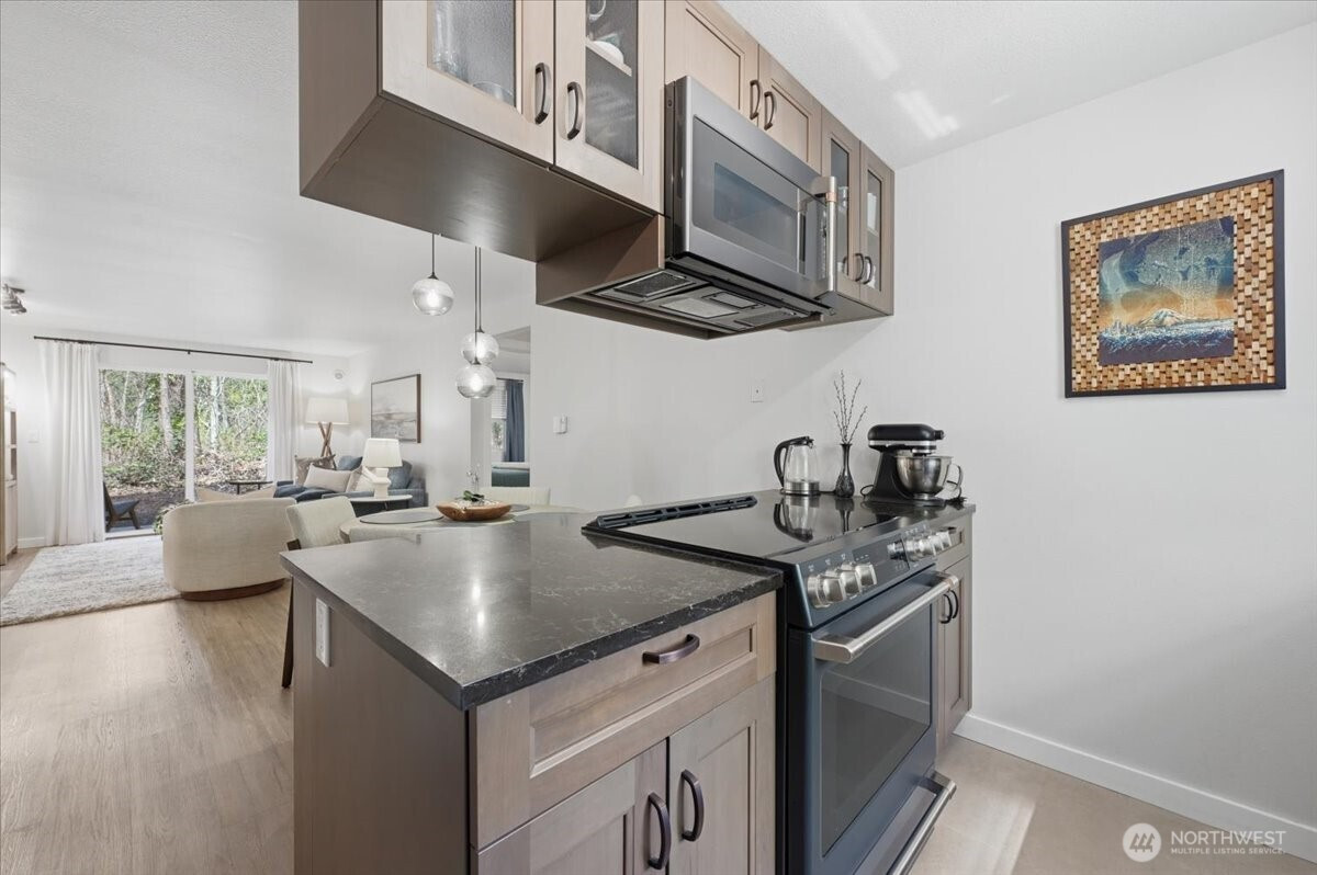 Welcome to elevated living in the heart of Woodinville. This beautifully fully renovated condominium showcases high-end finishes and thoughtful design, creating a sophisticated yet comfortable retreat. From the moment you step inside, you're greeted by a light filled custom interior with a sense of understated elegance. Every detail has been carefully curated-from sleek surfaces and updated textures to a clean, cohesive aesthetic that creates a calming, elevated living space designed by a professional decorator. Perfectly positioned near major highways, boutique shopping, Woodin Creek Park - featuring the burke-gilman trail, indulgent spas, and the region's celebrated wineries, the location offers both convenience and lifestyle. Just moments from downtown and within the highly sought-after Northshore school district, every detail has been considered. Residents enjoy access to exceptional community amenities including a clubhouse, athletic court, pool, hot tub, and fully equipped fitness center - bringing a resort-inspired experience home.