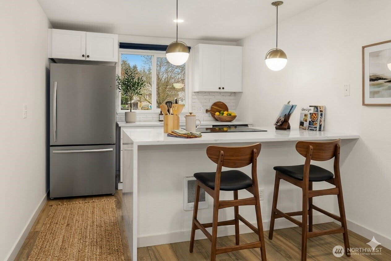 Welcome home to this meticulously refreshed 2-bedroom gem in the heart of Timber Ridge. Step inside to find a light-filled interior boasting sleek LVP flooring, crisp designer paint, and elegant quartz countertops. The bright, sunny kitchen—complete with new stainless-steel appliances—is a chef’s delight, while the private balcony offers a peaceful "green paradise" view perfect for morning coffee or evening wine. Beyond the front door, enjoy peace of mind with extensive community updates including newer siding, roofs, and exterior paint. Whether you’re cozying up to the wood-burning fireplace or enjoying resort-style amenities like the pool, gym, and billiards room, comfort is guaranteed year-round. Situated away from the noise but just steps from the action: walk two blocks to the Woodinville Park & Ride or stroll to nearby favorites like the upcoming Trader Joe’s, Target and other name brand stores, renowned local dining, steps from Woodinville Medical Center, and the iconic Woodinville Wine Country. With easy freeway access and the top-rated Northshore School District, this is the perfect opportunity for first-time buyers, downsizers, or savvy commuters. Welcome home to Timber Ridge!