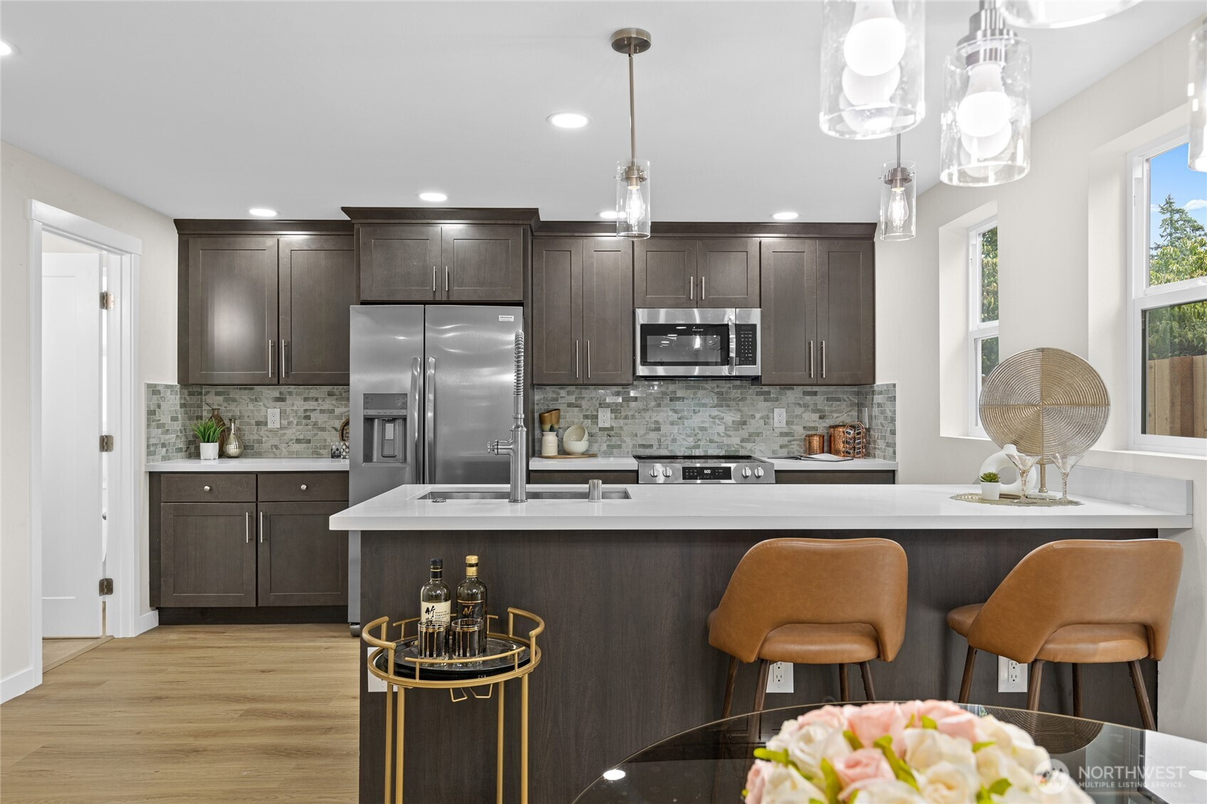 Brand new construction standalone 2 story craftsman style cottage with 2 bedrooms, 2.5 bathrooms. Entertainment galore with open living space opening out to thoughtfully designed, landscaped, and hardscaped yard - a true urban oasis. Chef's kitchen with modern shaker cabinets, stainless appliances and custom backsplash. 2 spacious ensuite bedrooms each with their private bathroom (perfect for house hack). Stay cool on those hot summer days with mini-split A/C throughout. Enjoy a meal or sip on your favorite drink on your paved front patio. Parking in front of the driveway. Bonus storage shed for personal belongings. Easy access to freeways, recreation, shopping and much more! Ask about a buyer credit of up to $17,500 with preferred lender!
