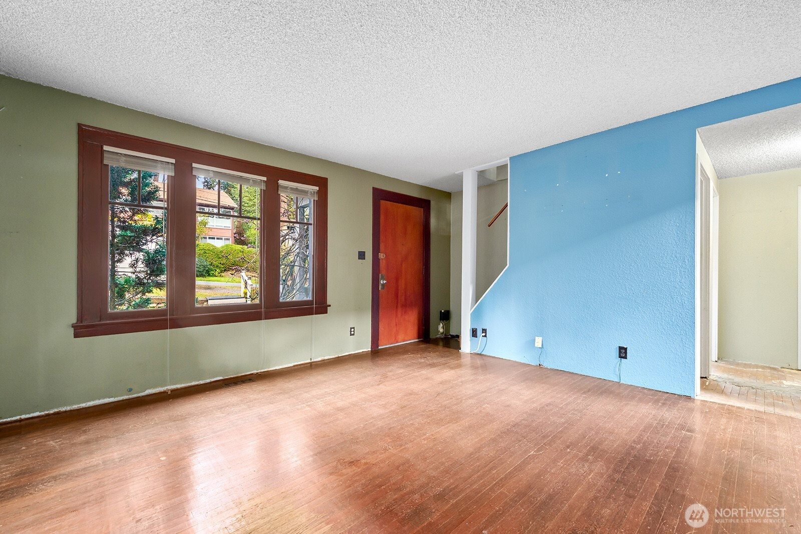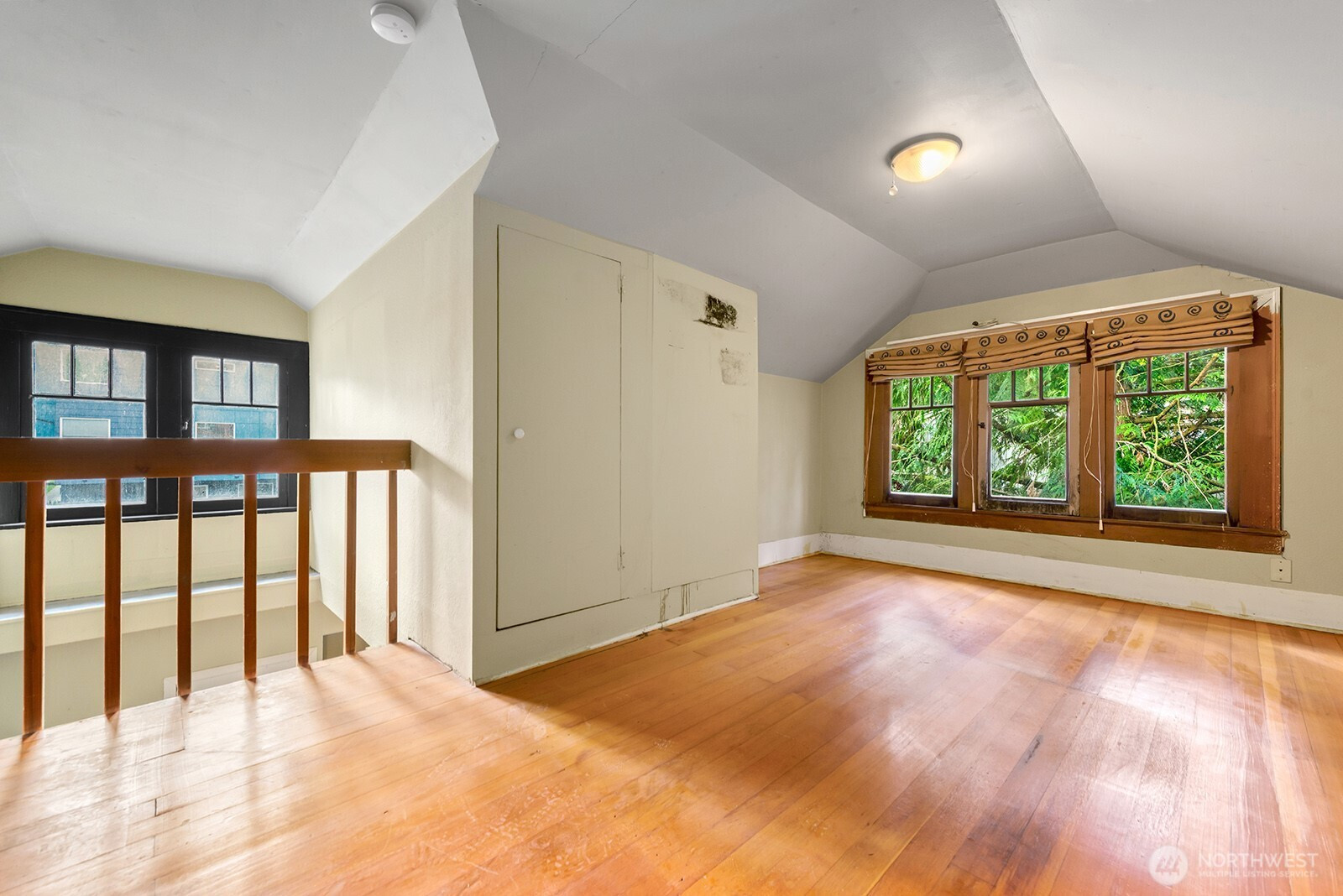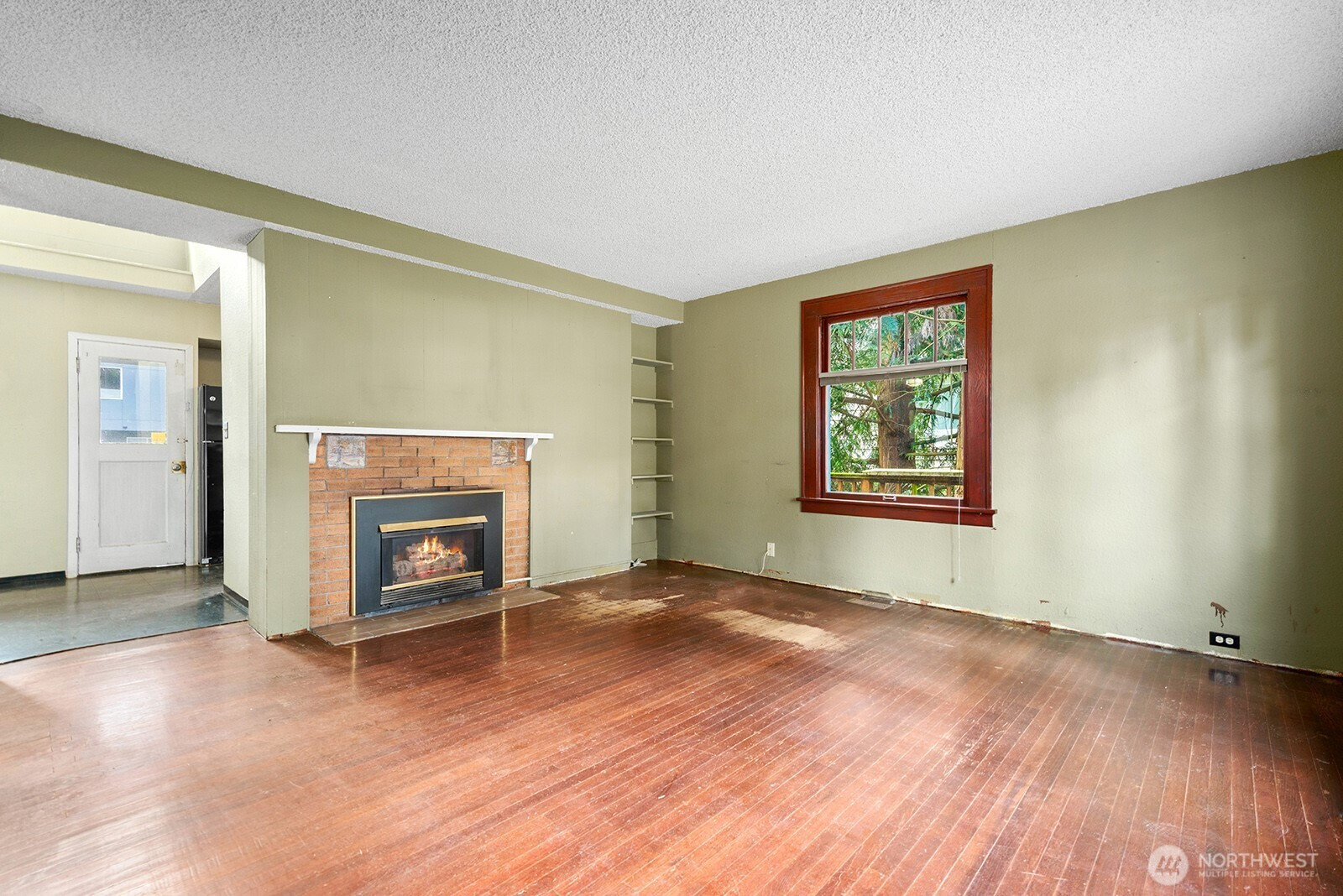 A classic 1923 bungalow on a coveted Broadview block with great character and real potential. Ideal for a buyer ready to build sweat equity and make it their own, with added appeal for investors or builders looking for a value-add opportunity in a strong North Seattle location. The bones are exceptional and the potential is significant. The main level features original hardwood floors, a light-filled living room with a brick propane fireplace and classic paned windows, plus a spacious kitchen and dining nook with vaulted ceilings. A second-floor interior balcony overlooks the kitchen and dining area, adding a unique architectural detail. The primary bedroom and a full bath complete the main floor. The finished daylight basement adds flexibility. It is well-suited for a media room, guest space, home office, storage, or future reconfiguration. Out back, a multi-level deck looks out over a large, level, partially fenced yard. The lot offers room to expand, enhance the outdoor space, or explore future development potential, including R2 zoning. Located in Broadview with easy access to neighborhood shops, cafes, and transit. A solid opportunity to invest in a great location—whether through renovation, long-term hold, or personal use. Sold as-is. Pre-inspection and sewer scope available upon request. Buyer to verify all development potential, zoning, and lot use.