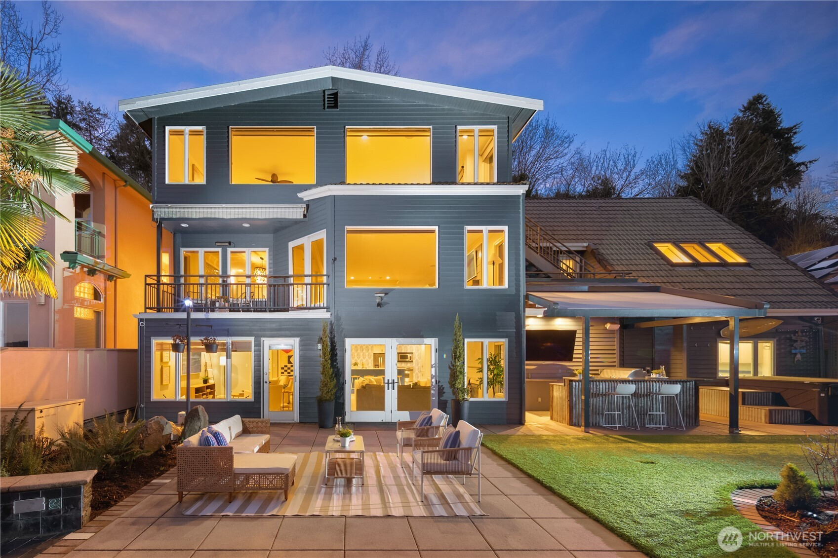 Experience waterfront living on Riviera Place with 75 feet of coveted Lake Washington shoreline and deep, yacht-capable moorage. Privately positioned to capture unobstructed lake views, this residence offers rare scale and privacy. The main level is designed for refined living and effortless entertaining. An expansive chef’s kitchen with premium appliances flows seamlessly into the great room, where walls of glass frame the water. Upstairs, the 600 SF primary suite is a true retreat with lake views, private sitting room, custom walk-in wardrobe, and a spa-caliber bath. Four additional bedrooms are thoughtfully appointed for flexibility. The lake level enhances the lifestyle with a second kitchen, media room, office or den, wine cellar, and guest suite with ensuite bath, ideal for extended stays or multigenerational living. Outdoor spaces rival a private resort, featuring Dream Turf lawn, expansive patio, private beach, built-in fireplace, covered wet bar with retractable roof, hot tub, outdoor shower, and 40-foot dock. Oversized 860 SF attached garage with custom storage plus generous guest parking. A rare opportunity to secure premier Lake Washington waterfront.