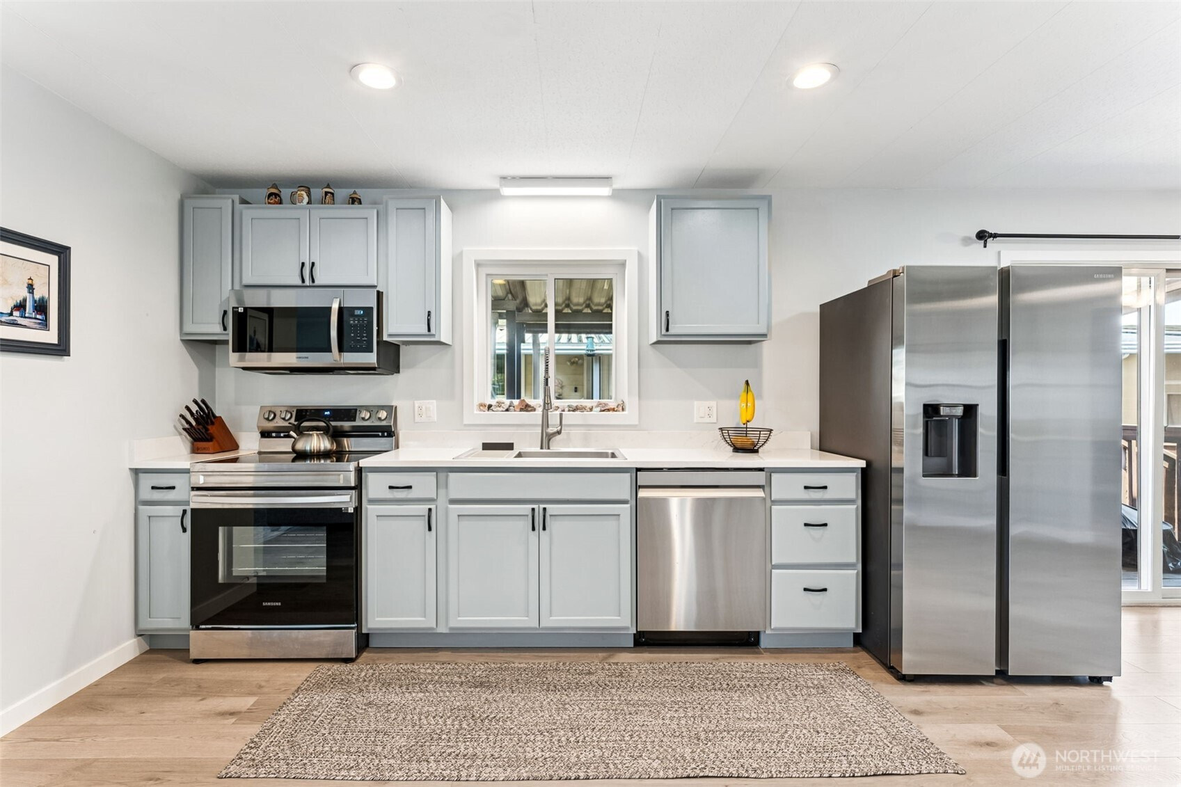 Welcome to Rio Verde—Auburn’s premier 55+ gated community! Enjoy carefree living in this well-maintained neighborhood featuring great amenities, including a sparkling pool. Nestled on a quiet corner lot, this charming, recently renovated with new top-of-the-line vinyl flooring, 2-bedroom, 2-bath home offers privacy, easy parking access, and low-maintenance landscaping. Fall in love with the airy & bright open floor plan, spacious living room & kitchen with new quartz countertops and plenty of counter space. Relax on your private covered deck, fully fenced backyard, and appreciate updates like a new roof (2019) and replaced deck and sliding door (2018). Come see why so many love calling Rio Verde home!