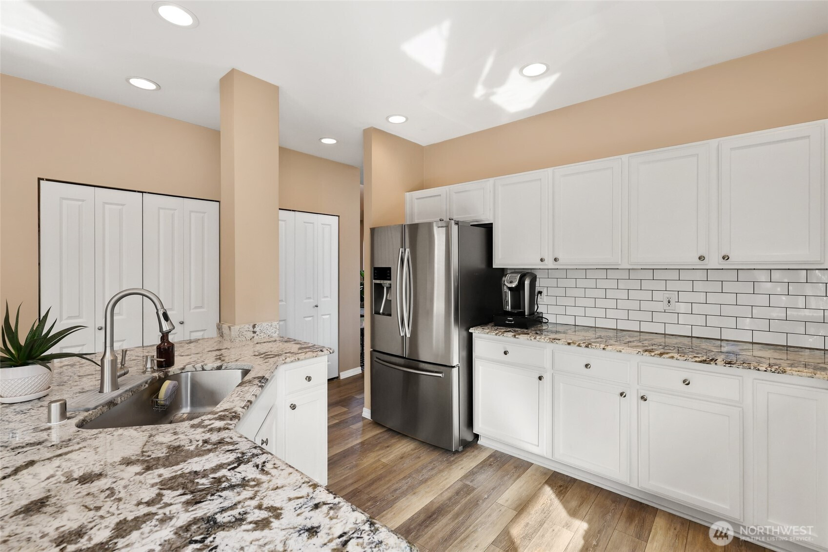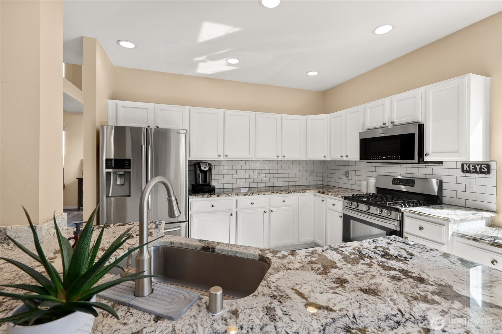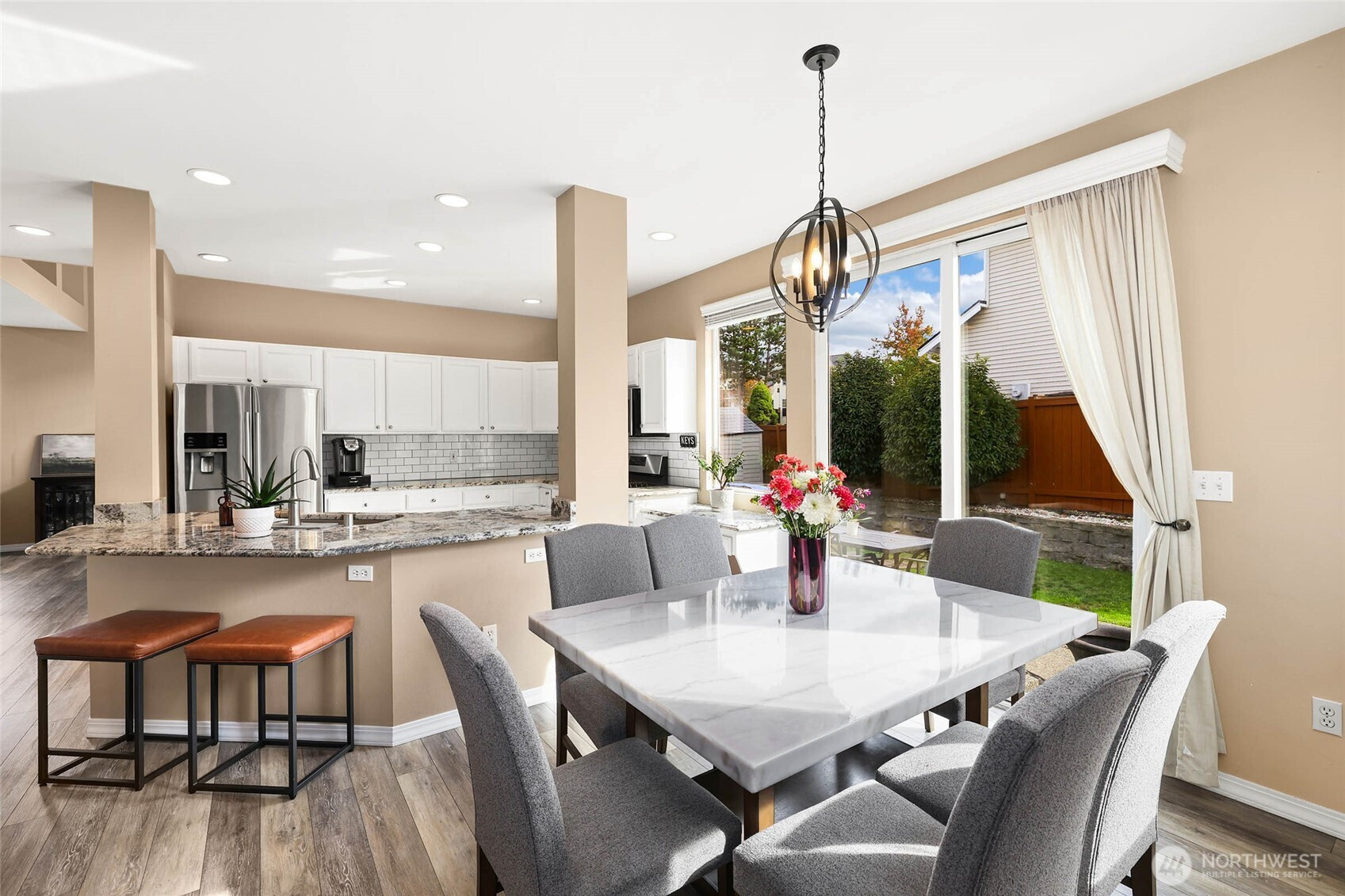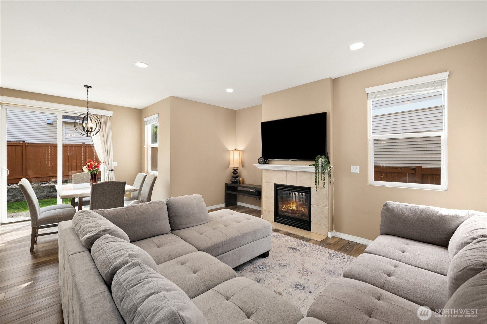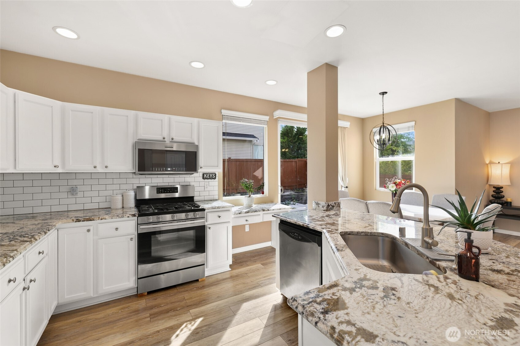 Located on a desirable corner lot in the coveted Lakeland Hills community, this stunning home is filled with natural light that accentuates vaulted ceilings and elegant finishes throughout. The chef’s kitchen showcases beautiful granite countertops, a gas stove, chic tile backsplash, and modern SS appliances. The main floor offers two spacious living areas, a dedicated dining space, and a versatile 4th bedroom or office with a 3/4 bath on the main—ideal for guests or remote work. Upstairs, the generous primary suite includes a walk-in closet and ensuite bath, plus two additional bdrms. Enjoy A/C, a 3-car garage, and a fully fenced private backyard. Conveniently located near top-rated schools, parks, trails, and the Lakeland Town Center!