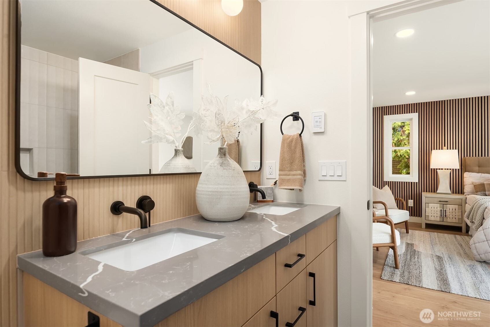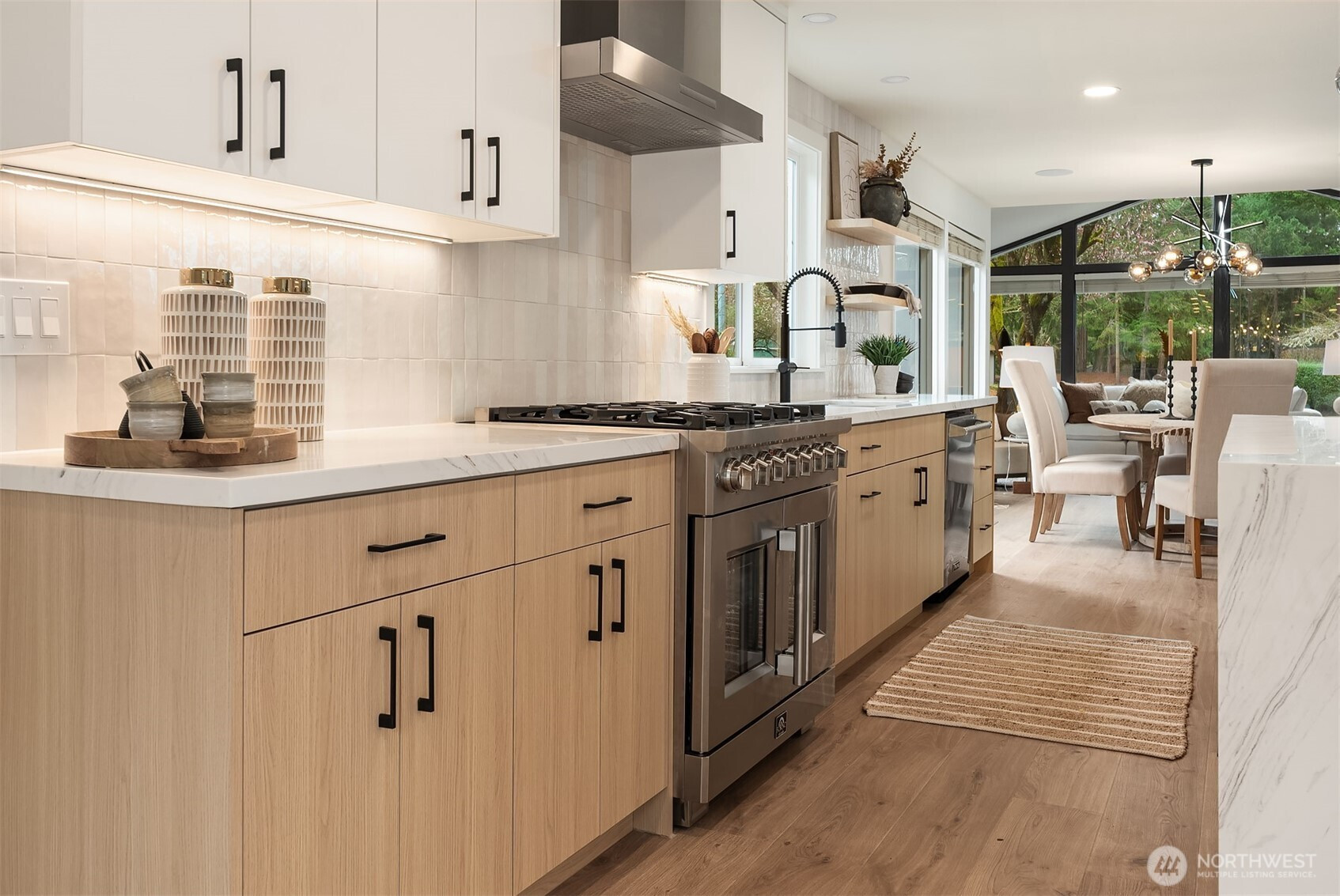 Located on a quiet street in one of Redmond’s most desirable neighborhoods, this beautifully updated one-level rambler offers modern style, comfort, and exceptional convenience. The thoughtfully redesigned open-concept layout features wide plank wood flooring, custom LED lighting, and a stunning new kitchen with slab quartz countertops, stainless steel appliances, and contemporary finishes—perfect for everyday living and entertaining. The home continues to impress with spa-inspired bathrooms featuring fresh tile, heated floors, and luxury fixtures, creating a comfortable retreat. Major system upgrades include a new furnace, hot water tank, and air conditioning, providing peace of mind and year-round comfort. Step outside to a private backyard with new landscaping—an ideal setting for relaxing or gathering with friends. The oversized garage features a new epoxy floor, offering both durability and a polished finish. Located within the highly regarded Lake Washington School District and just minutes to Microsoft campuses, downtown Redmond, SR-520, I-405, and the Link light rail, this home offers convenient access to Eastside employers, parks, shopping, and dining. Grass Lawn Park and neighborhood trails are just a short distance away. Move-in ready with quality upgrades throughout—homes like this rarely come available in such a prime Redmond location.