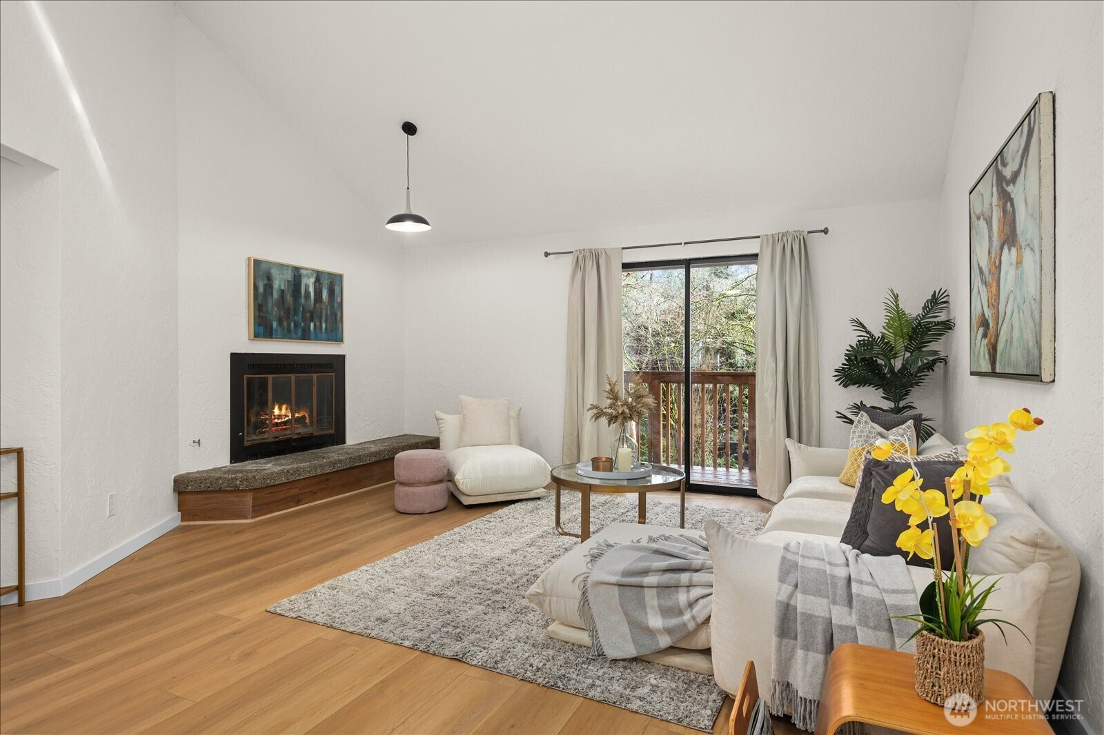 Fall in love with Lenora. This recently refreshed 4-bedroom home blends thoughtful updates with spacious, light-filled living areas. The impressive primary suite feels like a true retreat, featuring vaulted ceilings, skylights, and a spa inspired bathroom with a freestanding soaking tub, tiled shower, and clean modern finishes. Throughout the home, durable hard surface flooring and vaulted ceilings create an open, airy feel. The updated kitchen offers modern flat-panel cabinetry, quartz countertops, a tile backsplash, and stainless steel appliances - designed for both everyday living and entertaining. Bathrooms feature updated tile finishes, while recent exterior improvements include a new roof and fresh exterior paint for added peace of mind. Step outside to a private outdoor setting with a cozy fire pit area, perfect for relaxing evenings or gathering with friends.