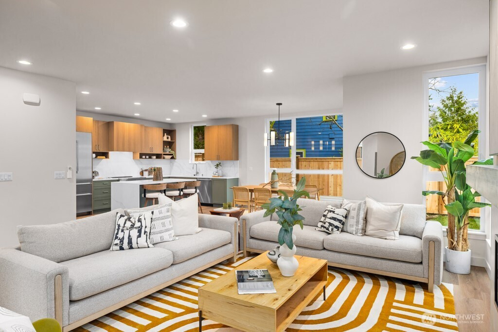 Discover contemporary Northwest elegance & timeless luxury in this stunning new construction home by Brikat Homes! The main level features a gourmet kitchen w/quartz island, Abodian cabinets, & premium Thermadore appliances including a double oven. Enjoy a formal dining room, living room w/fireplace, & easy access to patio and fully fenced yard. A convenient 1/2 bath completes the main floor. Second level presents 3 bedrooms, 2 baths, & large laundry room. Spacious primary offers a spa-like ensuite bathroom w/oversized shower, & walk-in closet. Top floor boasts vaulted ceilings, wet bar, 3/4 bath, 2nd living room, guest bedroom, & covered deck ideal for entertaining. EV-ready 2 car garage.