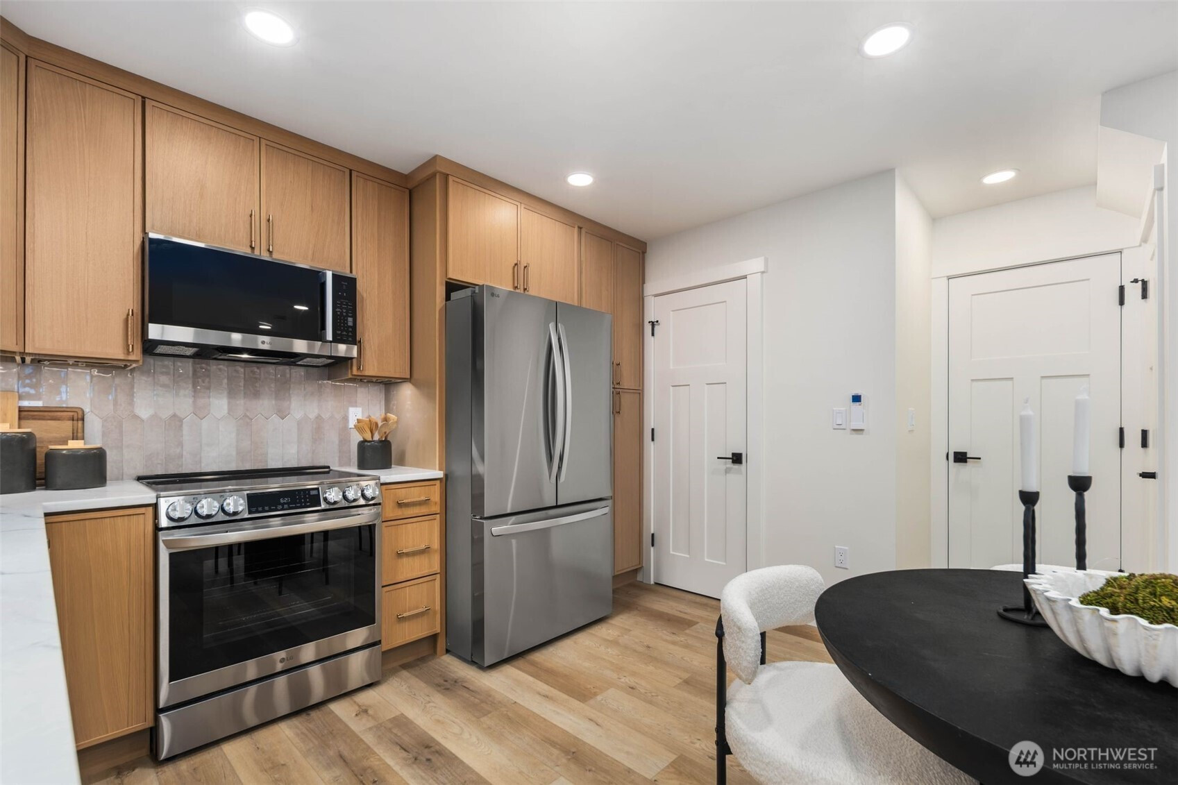 Introducing another exceptional new construction home in Broadview — a beautifully crafted 3-bed, 2.5-bath residence showcasing refined design and effortless livability. Step inside to find designer finishes, light oak cabinetry, and elegant custom tilework that elevate every room. The open-concept layout connects seamlessly to a generous backyard retreat, complete with a private barrel sauna for the ultimate relaxation. An oversized garage and one additional parking space offer everyday convenience. Built with care and backed by a 1-2-10 builder’s warranty, this home delivers lasting quality, peace of mind, and the perfect balance of comfort and contemporary style in one of North Seattle’s most desirable neighborhoods.