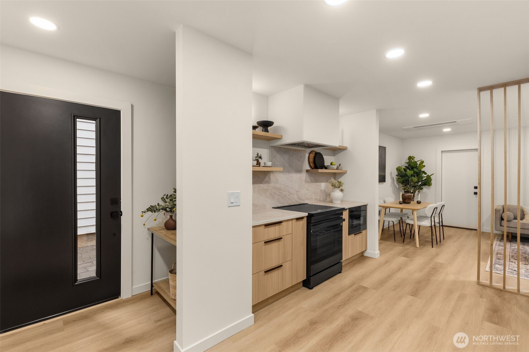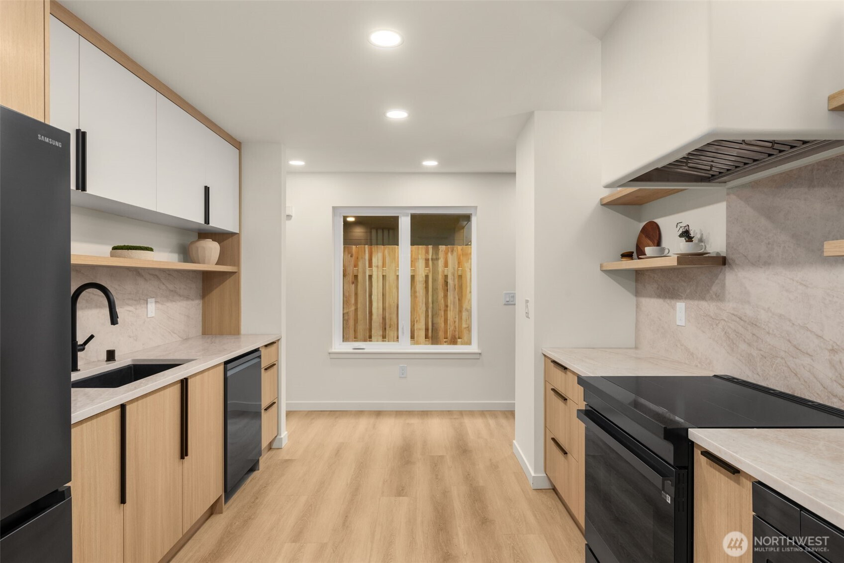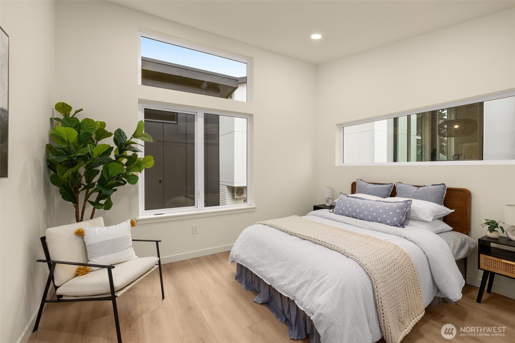 (503) 893-8874Modern Craftsmanship in a Serene North Seattle Retreat. **10-Year Rate-Lock at 4.99% Available (qualifications apply)** This striking 2-bed, 1.75-bath home showcases a masterclass in texture and design. Experience a bright, open floor plan highlighted by custom oak-toned cabinetry, quartz & stone countertops, and a designer kitchen with integrated shelving, full backsplash, and a built-in hood vent. Packed with luxury and high-end details including soaring ceilings and clerestory windows in the primary suite, heathed bathroom floors, and also architectural fluted accent walls throughout. The home delivers a level of craftsmanship that is unprecedented at this price point. Outside awaits a private, fully landscaped backyard with a level paver patio and tall 6 1/2-foot fences—perfect for entertaining, pets, relaxation—you name it. This home comes with designated pad parking and a unique scooter garage, offering a versatile solution for a home gym, studio, extra storage, or home office. Tucked away in a quiet, lush residential neighborhood—but well connected. Enjoy easy access to i-99, i-5, Jackson Golf Course, Twin Parks, and all the hidden gems of North Seattle dining. This is refined living at its finest + Built Green. Are you ready for a home upgrade?