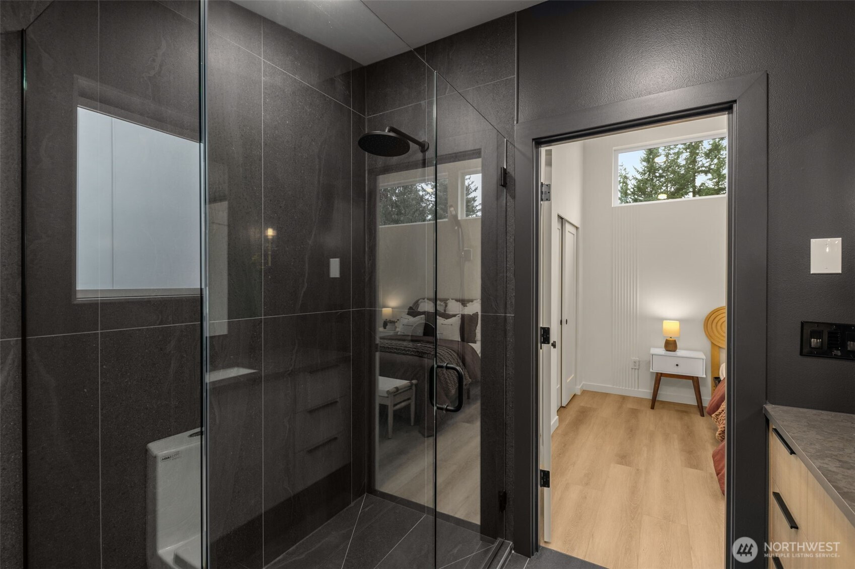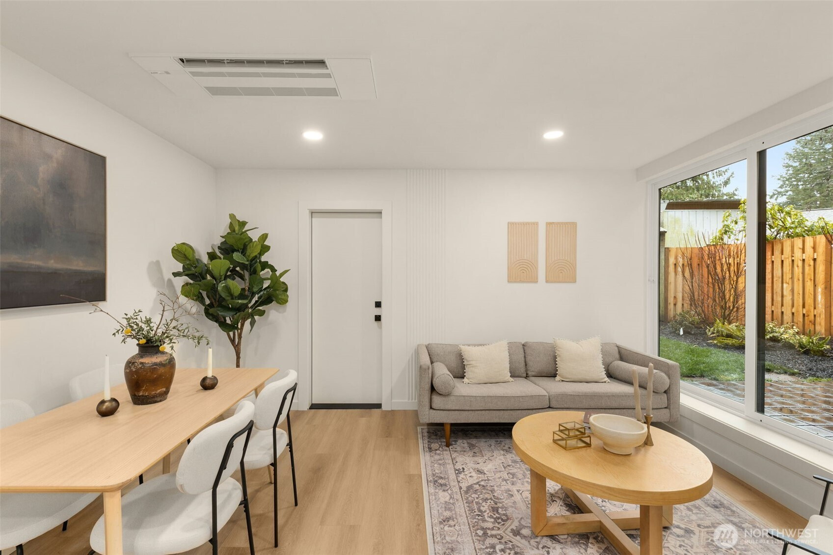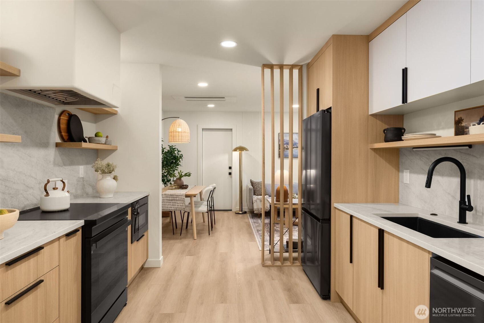 (503) 893-8874Modern Craftsmanship in a Serene North Seattle Retreat. **10-Year Rate-Lock at 4.99% Available (qualifications apply)** This striking 2-bed, 1.75-bath home showcases a masterclass in texture and design. Experience a bright, open floor plan highlighted by custom oak-toned cabinetry, quartz & stone countertops, and a designer kitchen with integrated shelving, full backsplash, and a built-in hood vent. Packed with luxury and high-end details including soaring ceilings and clerestory windows in the primary suite, heathed bathroom floors, and also architectural fluted accent walls throughout. The home delivers a level of craftsmanship that is unprecedented at this price point. Outside awaits a private, fully landscaped backyard with a level paver patio and tall 6 1/2-foot fences—perfect for entertaining, pets, relaxation—you name it. This home comes with designated pad parking and a unique scooter garage, offering a versatile solution for a home gym, studio, extra storage, or home office. Tucked away in a quiet, lush residential neighborhood—but well connected. Enjoy easy access to i-99, i-5, Jackson Golf Course, Twin Parks, and all the hidden gems of North Seattle dining. This is refined living at its finest + Built Green. Are you ready for a home upgrade?