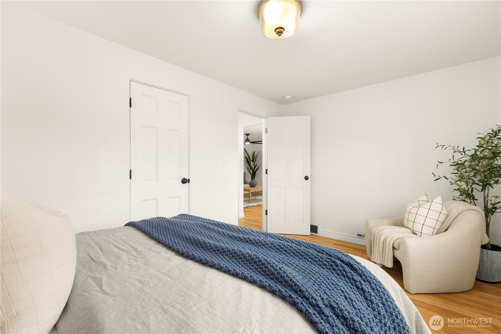 Tucked behind a private gated entry this light drenched North Seattle cottage offers your quiet escape... yet remains close to the all the energy & desire of the city! Inside you will find natural light pouring in, highlighting the oak hardwood floors & the well designed layout that feels easy to live in from the moment you arrive. Large open dining & living areas with large windows allow enough space to enjoy & entertain. A well sized kitchen is complete with full size appliances, quartz countertops & plenty of storage. Two generously sized bedrooms provide flexibility for working from home or whatever your lifestyle needs. This home has been thoughtfully maintained & is truly turn-key, making it simple to settle in & start enjoying right away. Plus a walk in pantry/utility & laundry room with large side by side washer & dryer. Outside you will find private + gated off-street parking, thoughtful landscaping in the front yard, complete with a mature pear tree creating a charming storybook setting rarely found this close to city life! A brand new roof & updated systems add peace of mind with long-term value. Nearby light rail stations & public transportation offer effortless access anywhere you want to go! A rare home that balances charm, function & location providing city living on your terms!