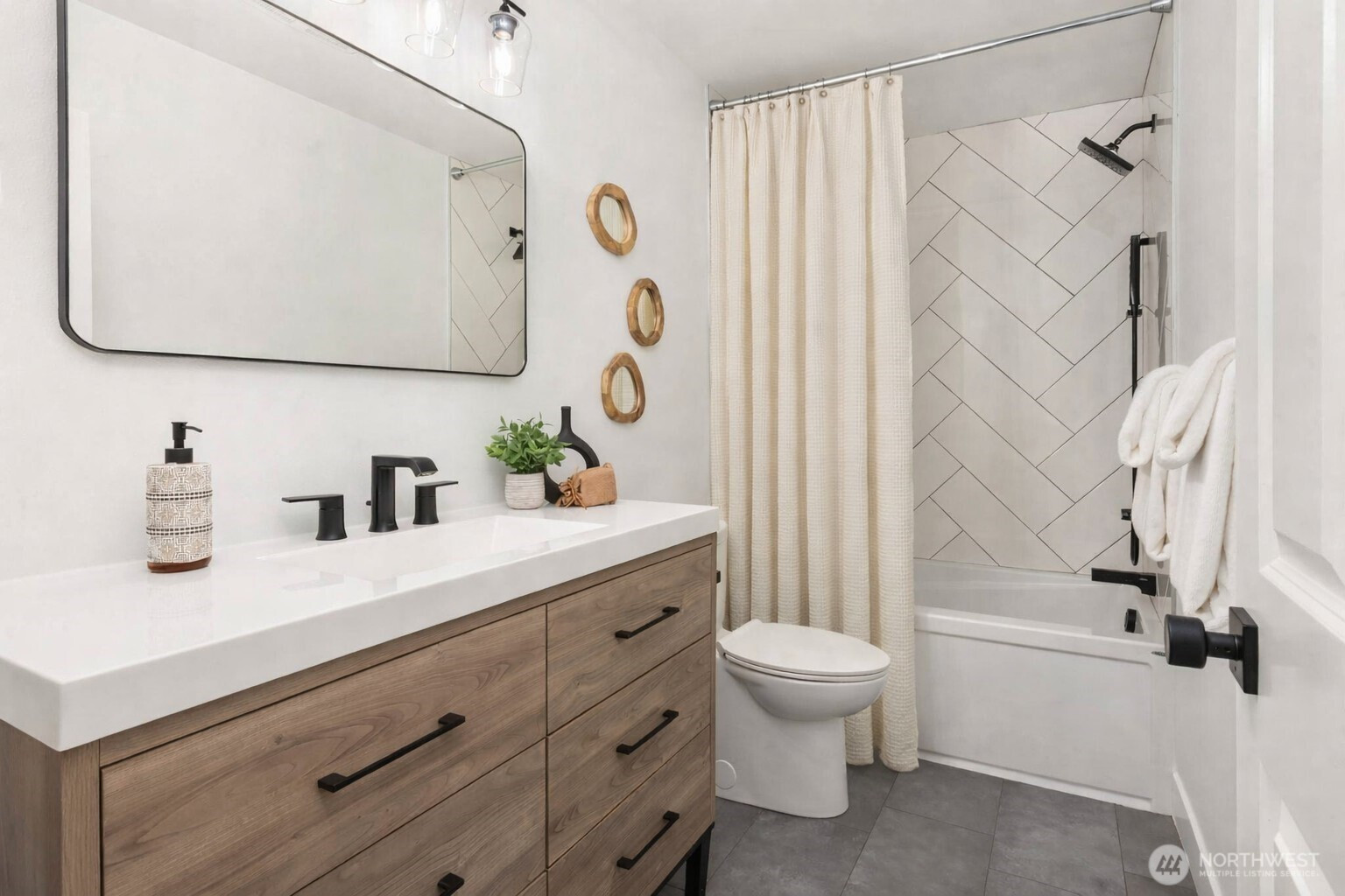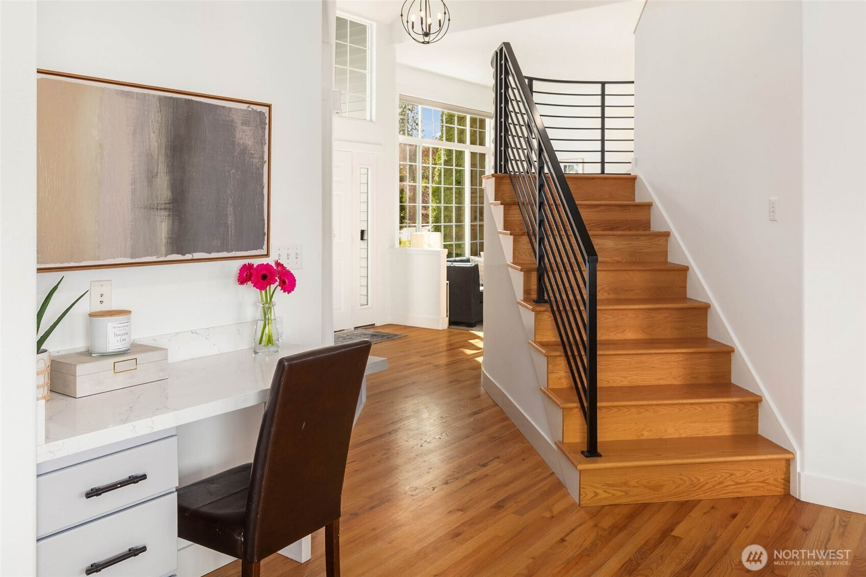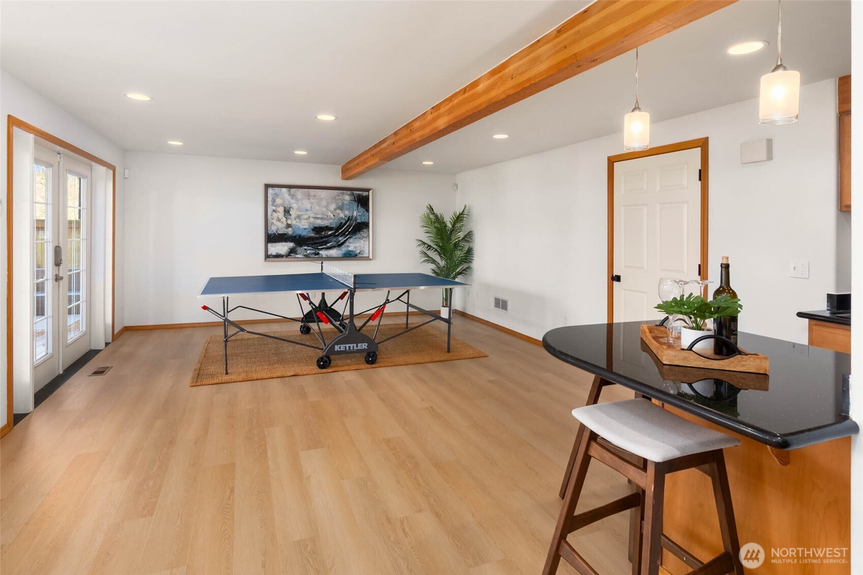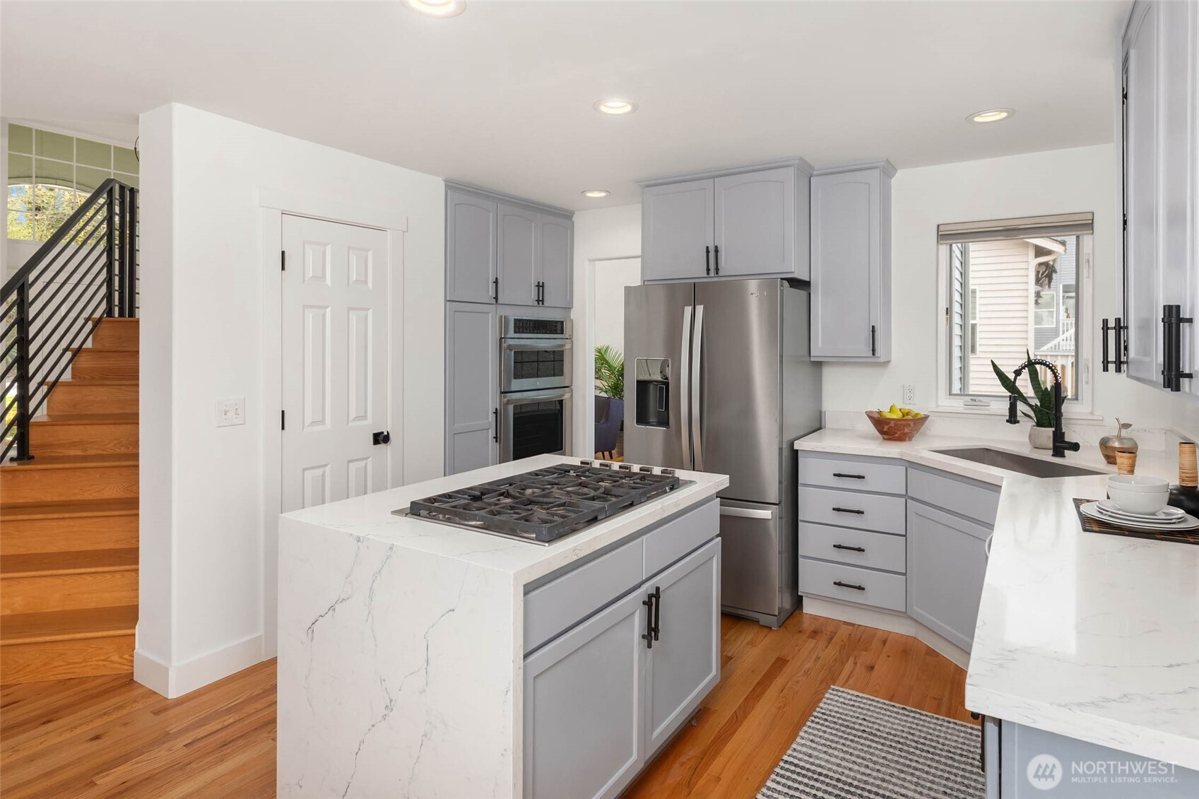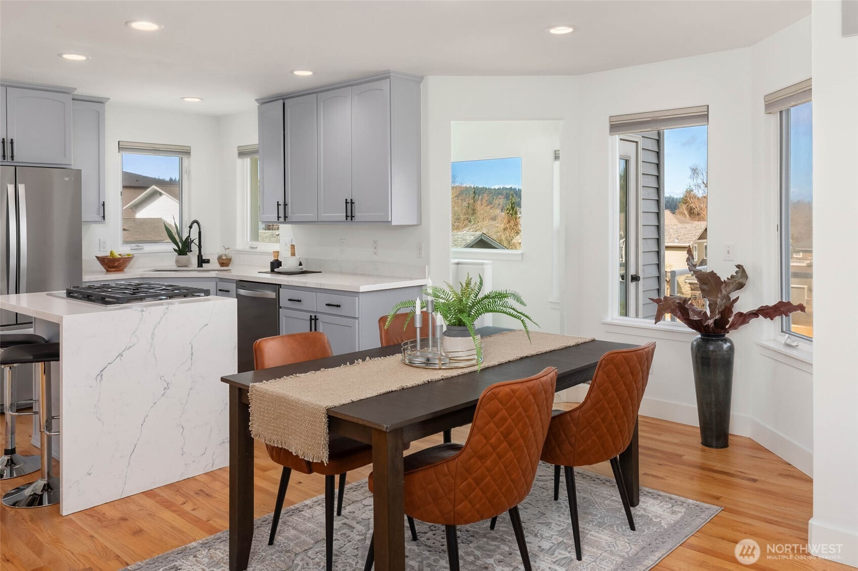 Move right in and enjoy sought-after Lower Kennydale living, where lake views and a versatile layout offer flexibility and room for everyone. A bright two-story foyer welcomes you into a thoughtfully updated traditional home with a modern touch. Sun-filled interiors and a functional floor plan offer effortless everyday living and entertaining, with formal living and dining spaces anchored by expansive windows and natural light. The updated kitchen opens to the inviting family room, creating a comfortable gathering space. The main level also includes a bedroom and ¾ bath for guests or a home office. Upstairs features three generously sized bedrooms, including a spacious primary suite with a luxurious 5-piece bath and view deck. Upgrades include hardwood floors, a new roof, fresh interior and exterior paint, A/C, on-demand hot water, and a dedicated server room for tech-ready living. The lower level offers a fully independent space with a kitchen, 5th bedroom, full bath, full W/D, and dual-sided fireplace—ideal as an ADU, recreation room, or flexible living space for multi-generational living or potential rental income. A 3-car garage and abundant storage throughout add everyday convenience. Enjoy a fully fenced backyard and multiple oversized decks for entertaining or relaxing while taking in the views. Conveniently located near I-405, The Landing, parks, and trails.