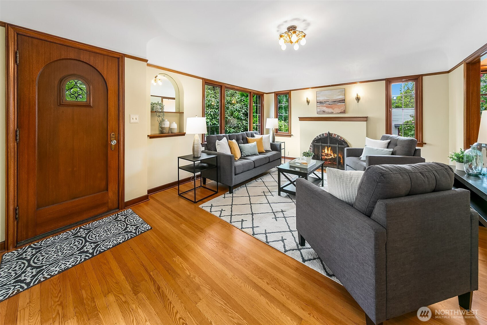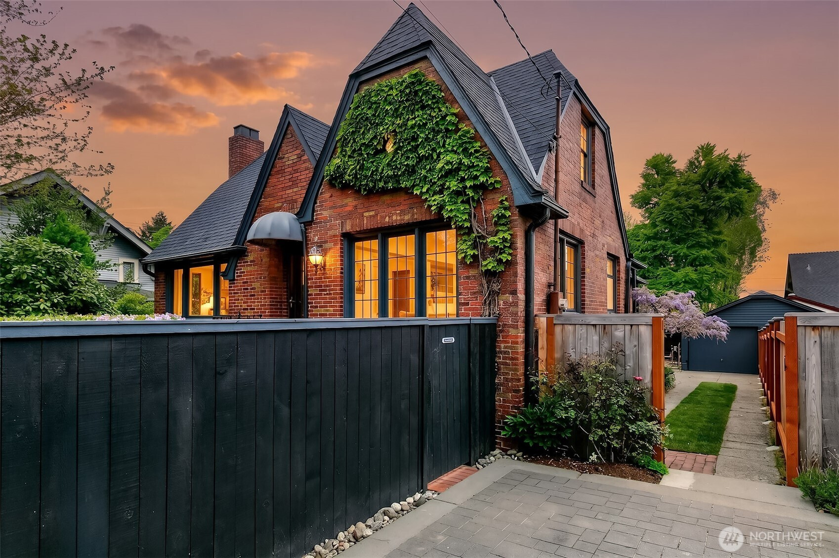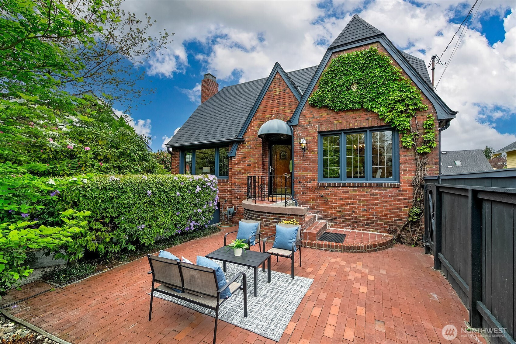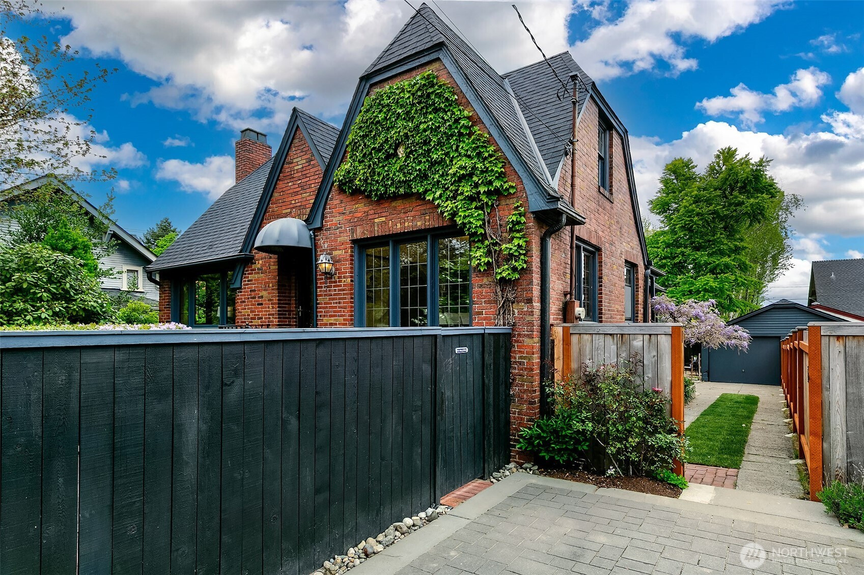 Located in the highly desirable Green Lake/Wallingford neighborhood is this 5 bed, 1.75 bath Tudor rich with timeless elegance. Natural light entering through the leaded windows, shining upon the refinished hardwood floors, cozy 1920s fireplace, original light fixtures and classic trim.Bright, clean, and move-in ready, the main floor features a living room, dining room, kitchen with eating space, 3 bedrooms and a bath. Upstairs is 3 more rooms upstairs connected by a common space. Downstairs is a huge open basement with 7-foot ceilings, a bath, and and 1 car garage. This floor is ideal for a home projects, arts and crafts space, a home gym and extra storage. Outside, enjoy a private brick patio and fully fenced yard. This home also has a secure detached garage particularly good for storage, and a parking pad.This home is conveniently located near bike and public transportation, and within a half mile of many restaurants, stores, shops, cafe's and pubs. Come check out this gem.