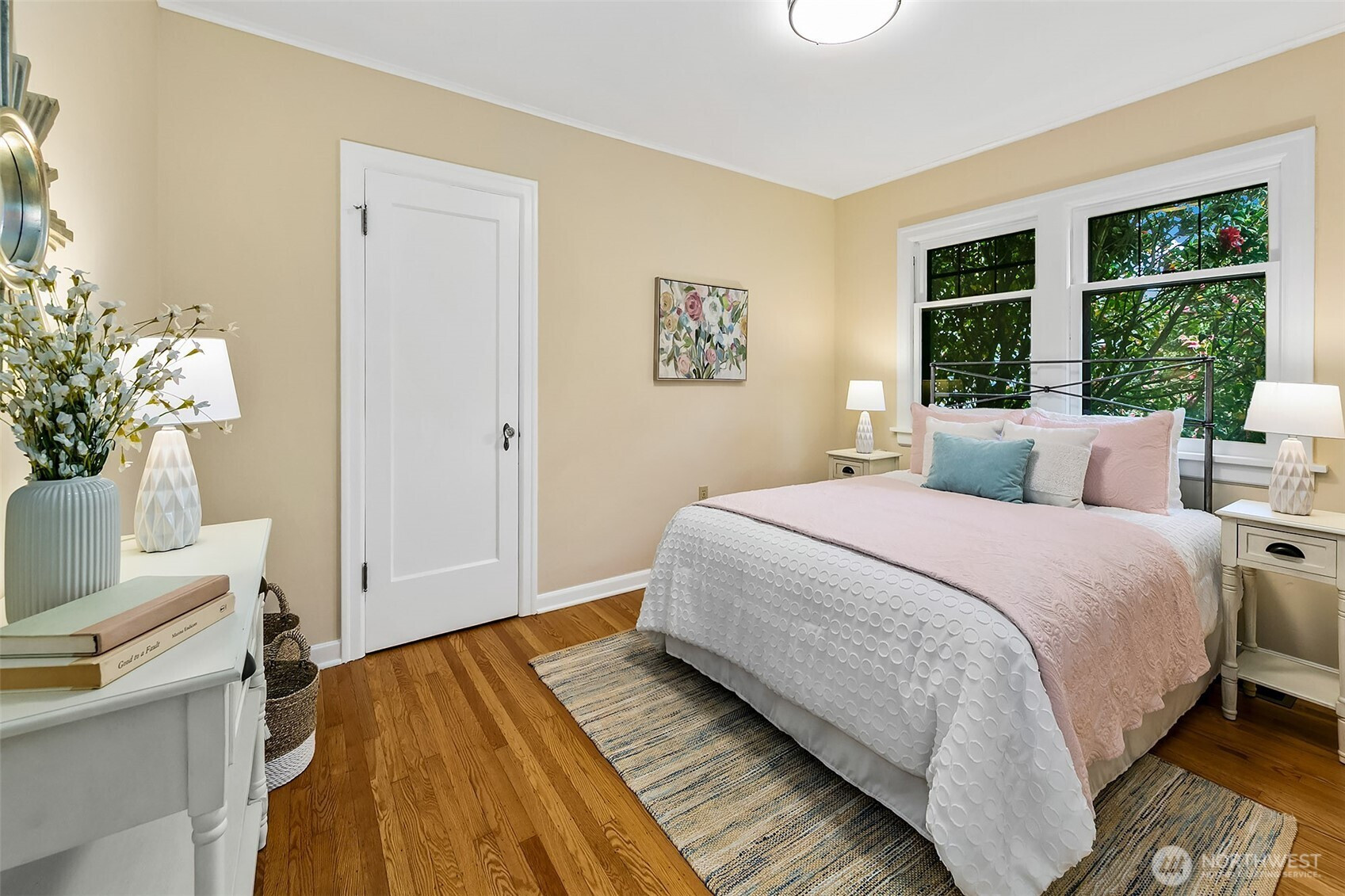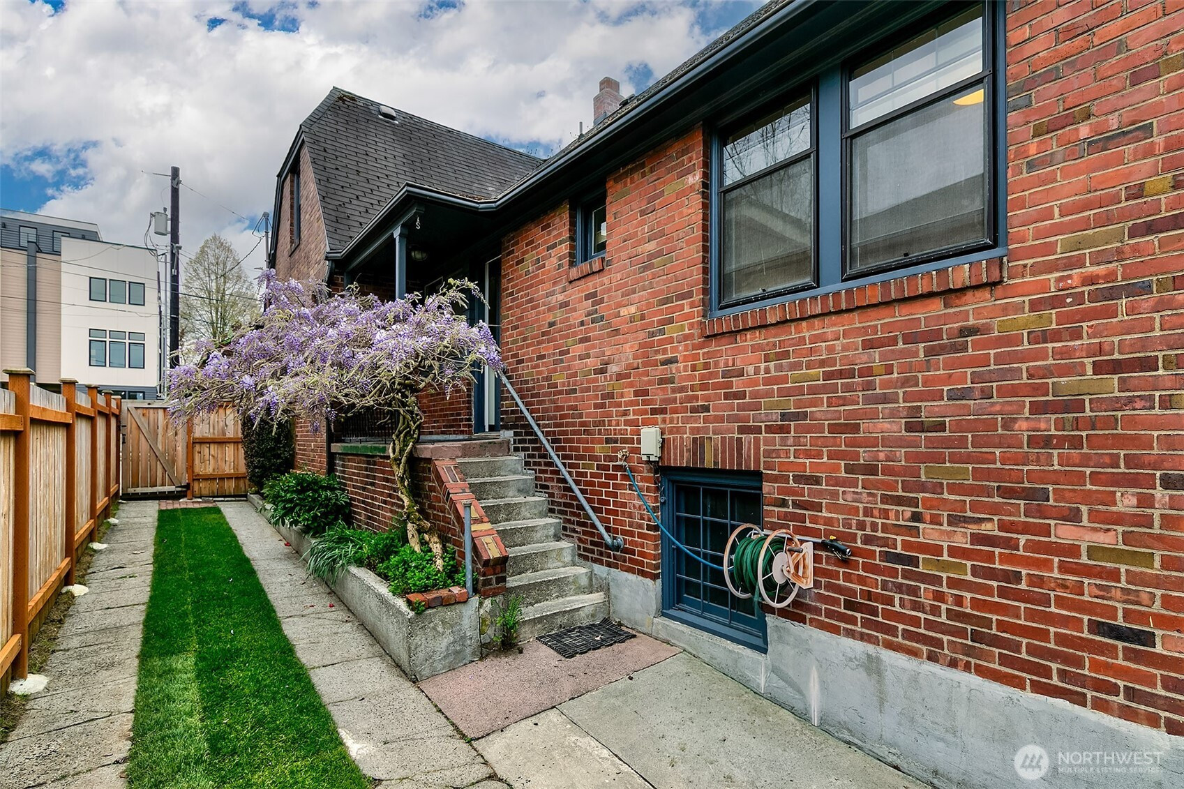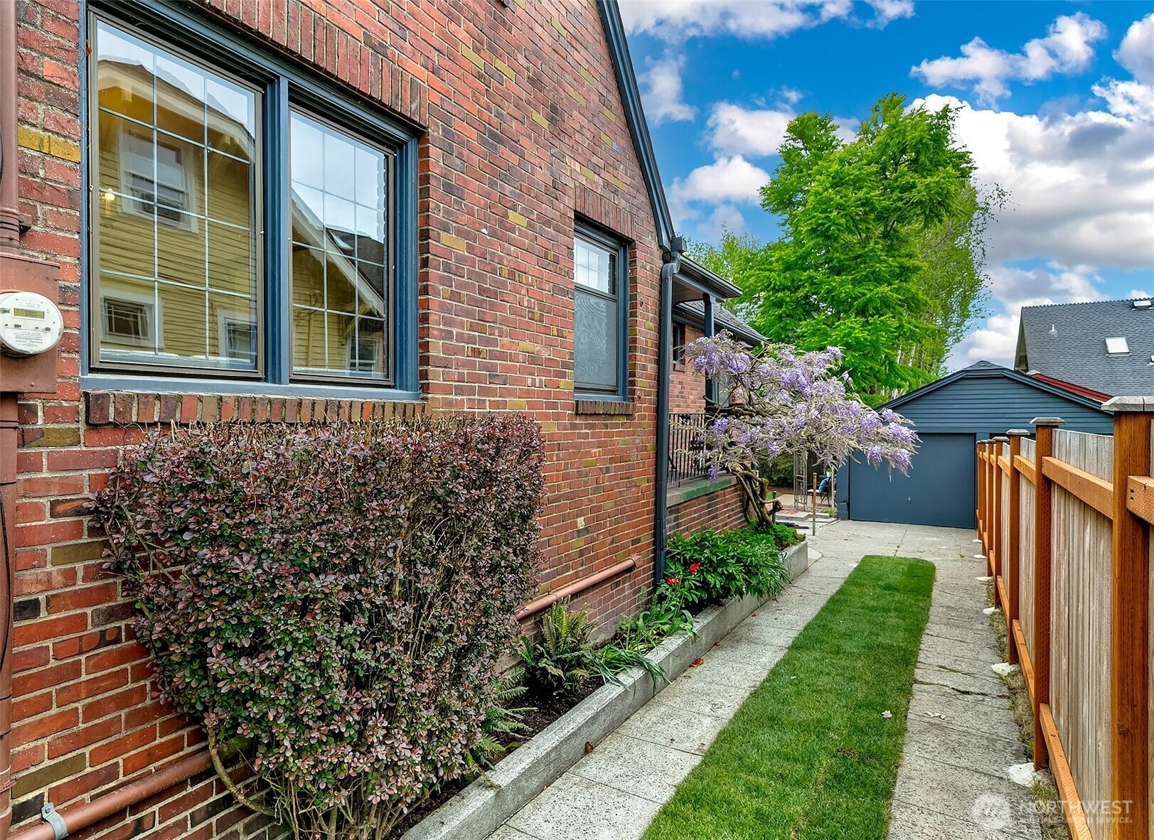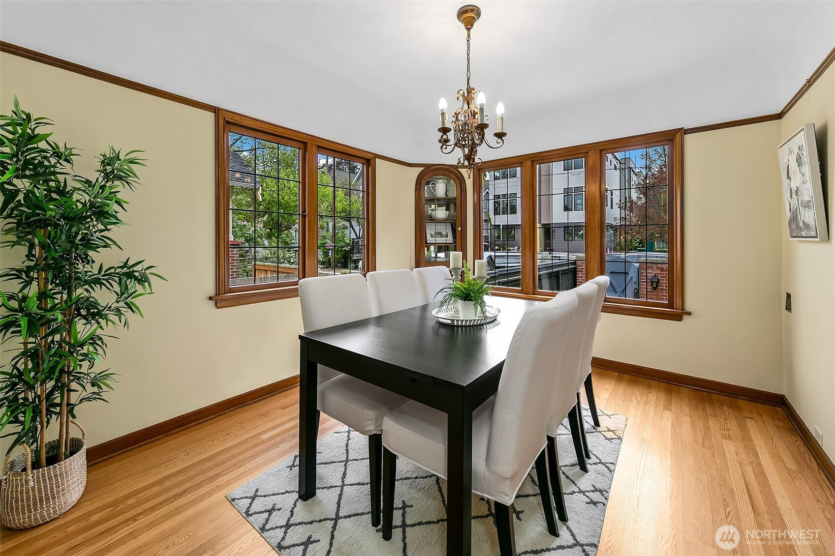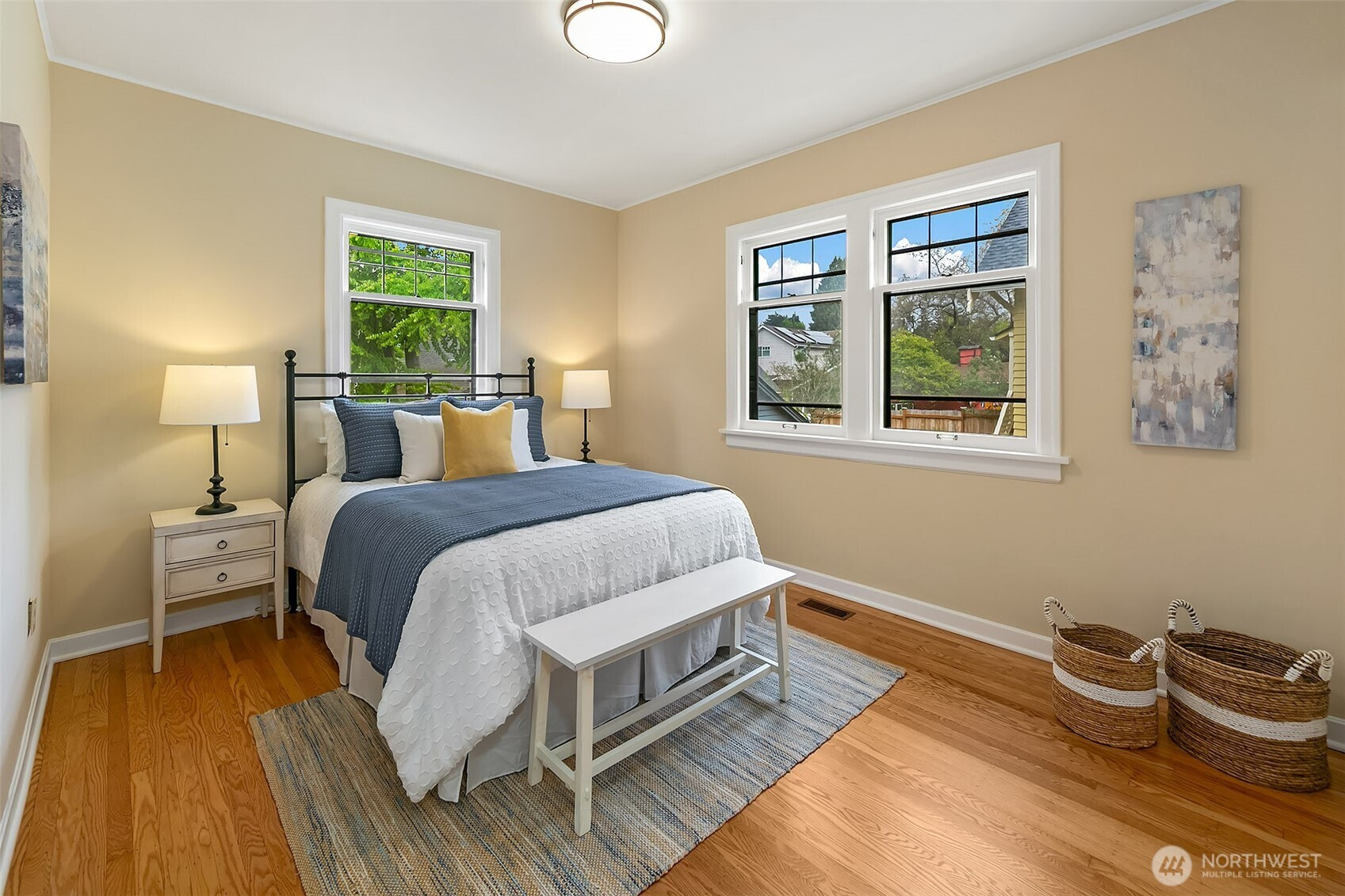 Located in the highly desirable Green Lake/Wallingford neighborhood is this 5 bed, 1.75 bath Tudor rich with timeless elegance. Natural light entering through the leaded windows, shining upon the refinished hardwood floors, cozy 1920s fireplace, original light fixtures and classic trim.Bright, clean, and move-in ready, the main floor features a living room, dining room, kitchen with eating space, 3 bedrooms and a bath. Upstairs is 3 more rooms upstairs connected by a common space. Downstairs is a huge open basement with 7-foot ceilings, a bath, and and 1 car garage. This floor is ideal for a home projects, arts and crafts space, a home gym and extra storage. Outside, enjoy a private brick patio and fully fenced yard. This home also has a secure detached garage particularly good for storage, and a parking pad.This home is conveniently located near bike and public transportation, and within a half mile of many restaurants, stores, shops, cafe's and pubs. Come check out this gem.