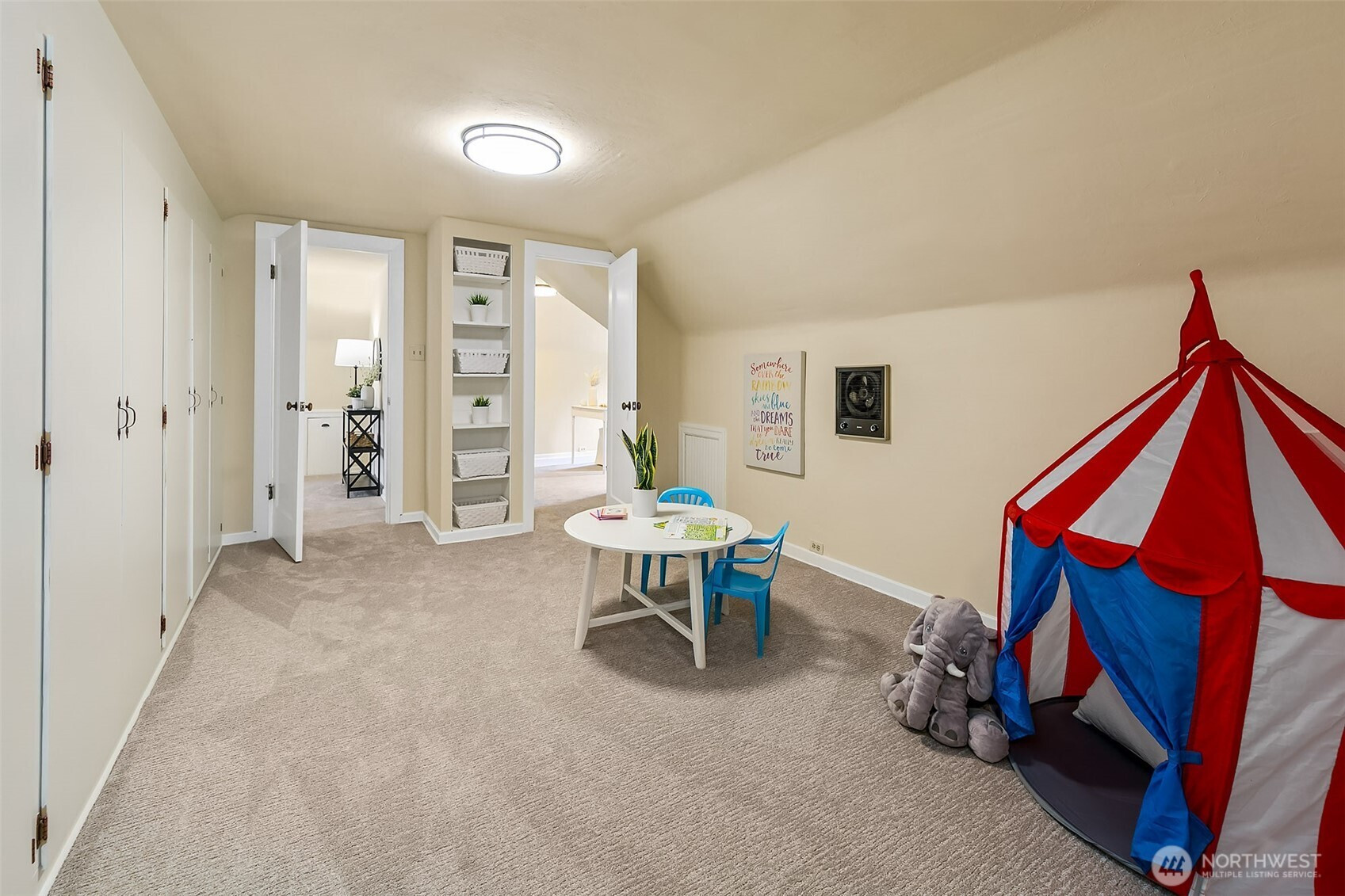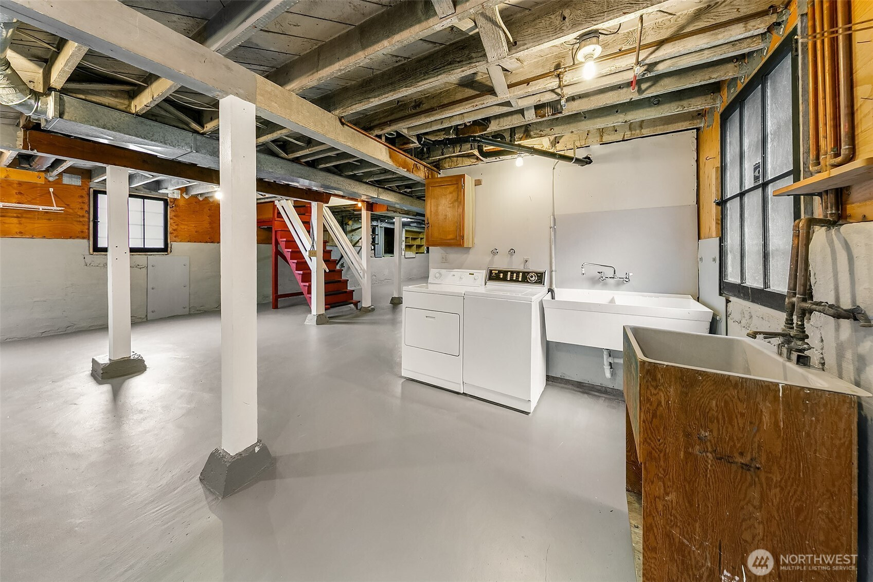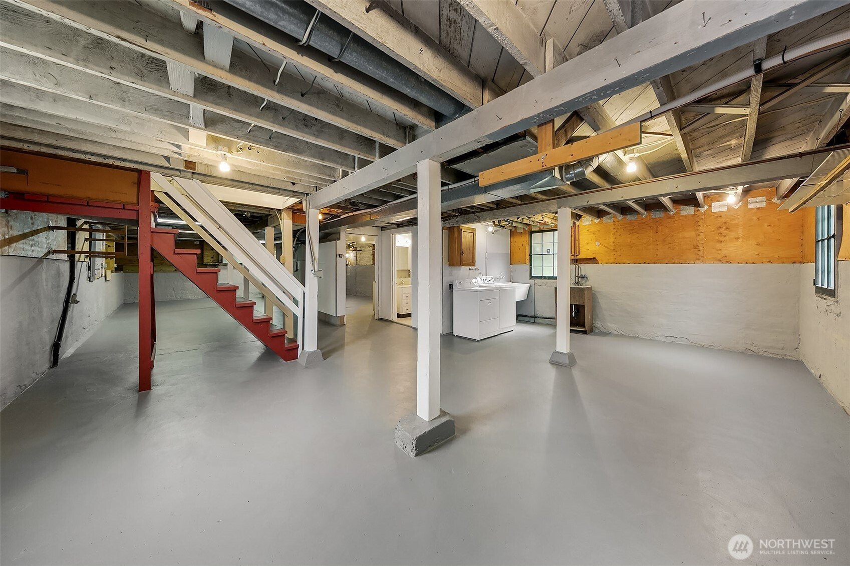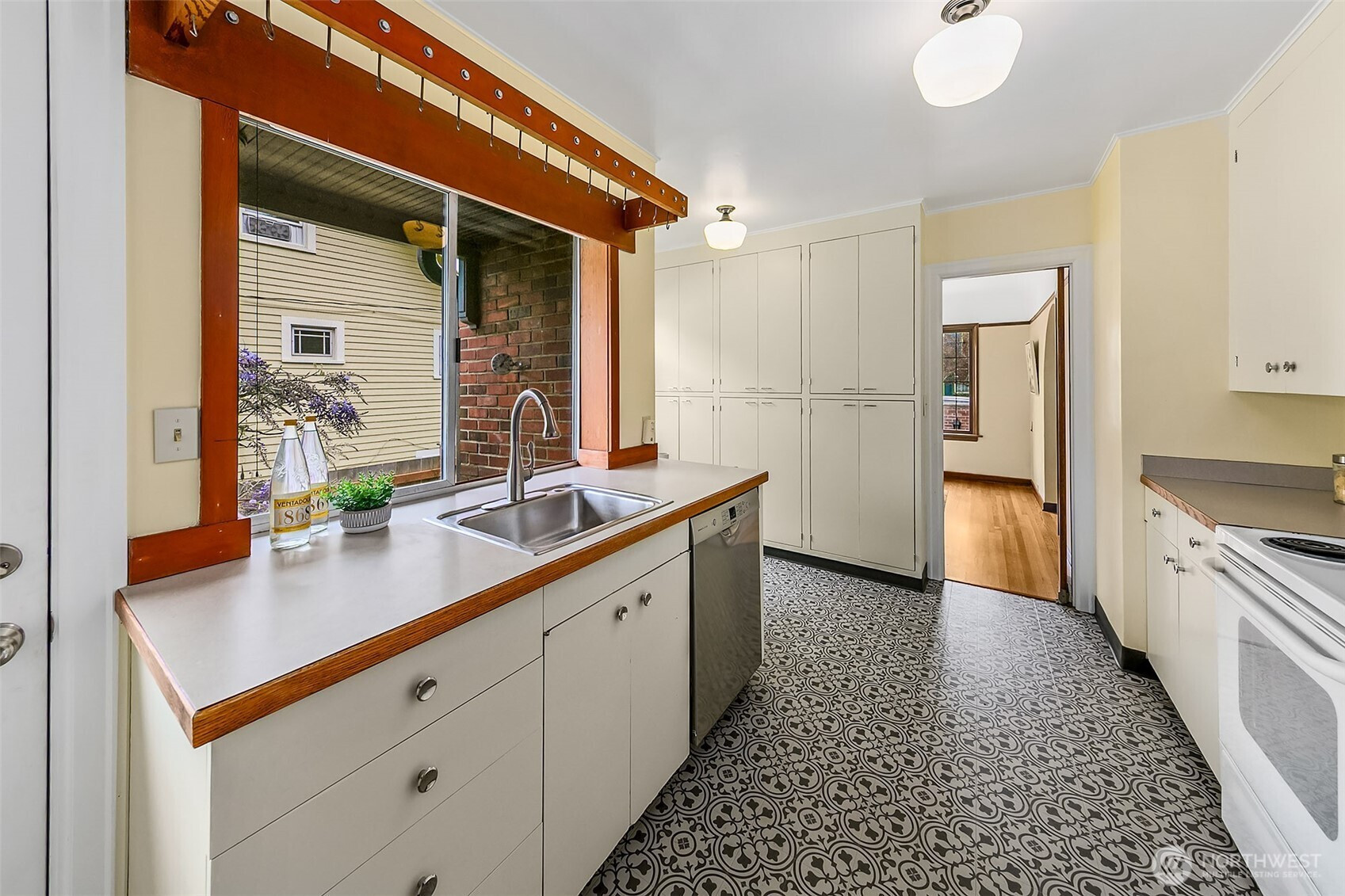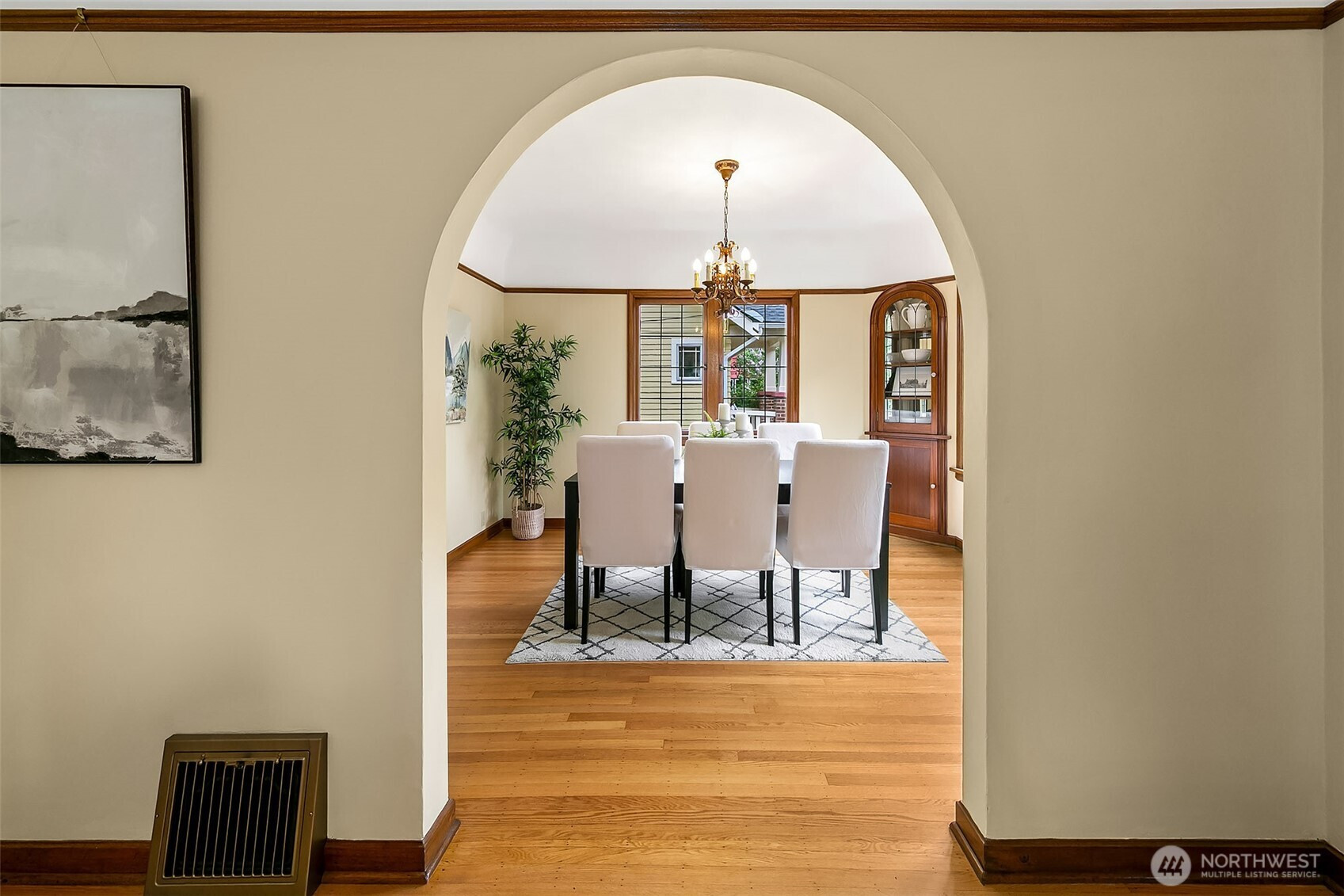 Located in the highly desirable Green Lake/Wallingford neighborhood is this 5 bed, 1.75 bath Tudor rich with timeless elegance. Natural light entering through the leaded windows, shining upon the refinished hardwood floors, cozy 1920s fireplace, original light fixtures and classic trim.Bright, clean, and move-in ready, the main floor features a living room, dining room, kitchen with eating space, 3 bedrooms and a bath. Upstairs is 3 more rooms upstairs connected by a common space. Downstairs is a huge open basement with 7-foot ceilings, a bath, and and 1 car garage. This floor is ideal for a home projects, arts and crafts space, a home gym and extra storage. Outside, enjoy a private brick patio and fully fenced yard. This home also has a secure detached garage particularly good for storage, and a parking pad.This home is conveniently located near bike and public transportation, and within a half mile of many restaurants, stores, shops, cafe's and pubs. Come check out this gem.