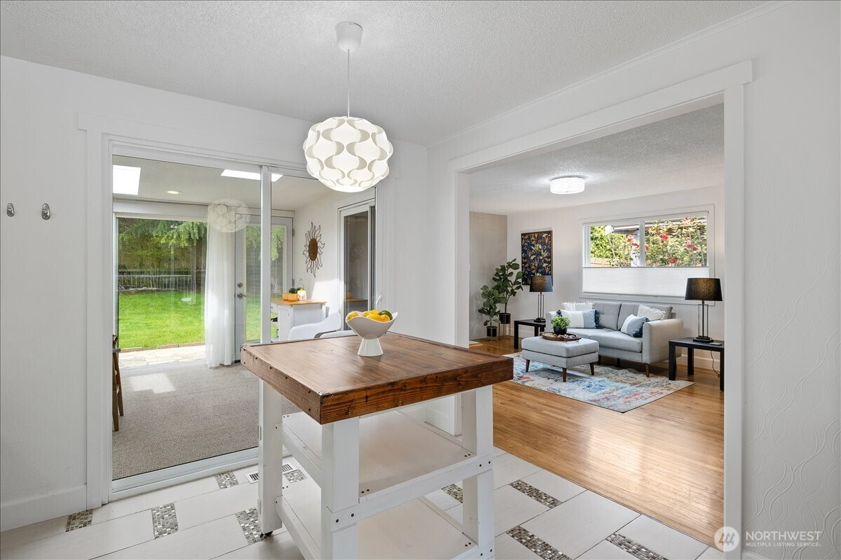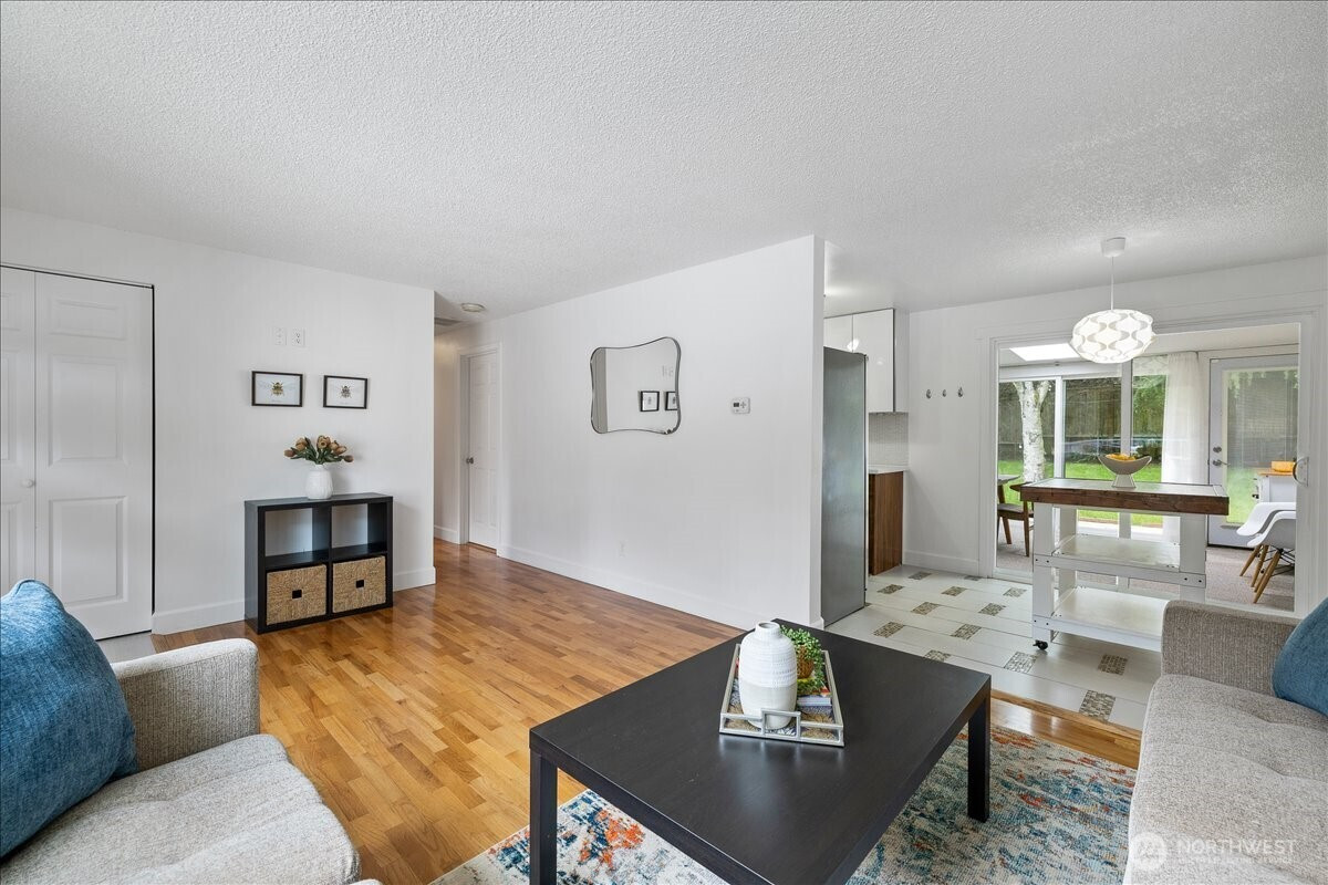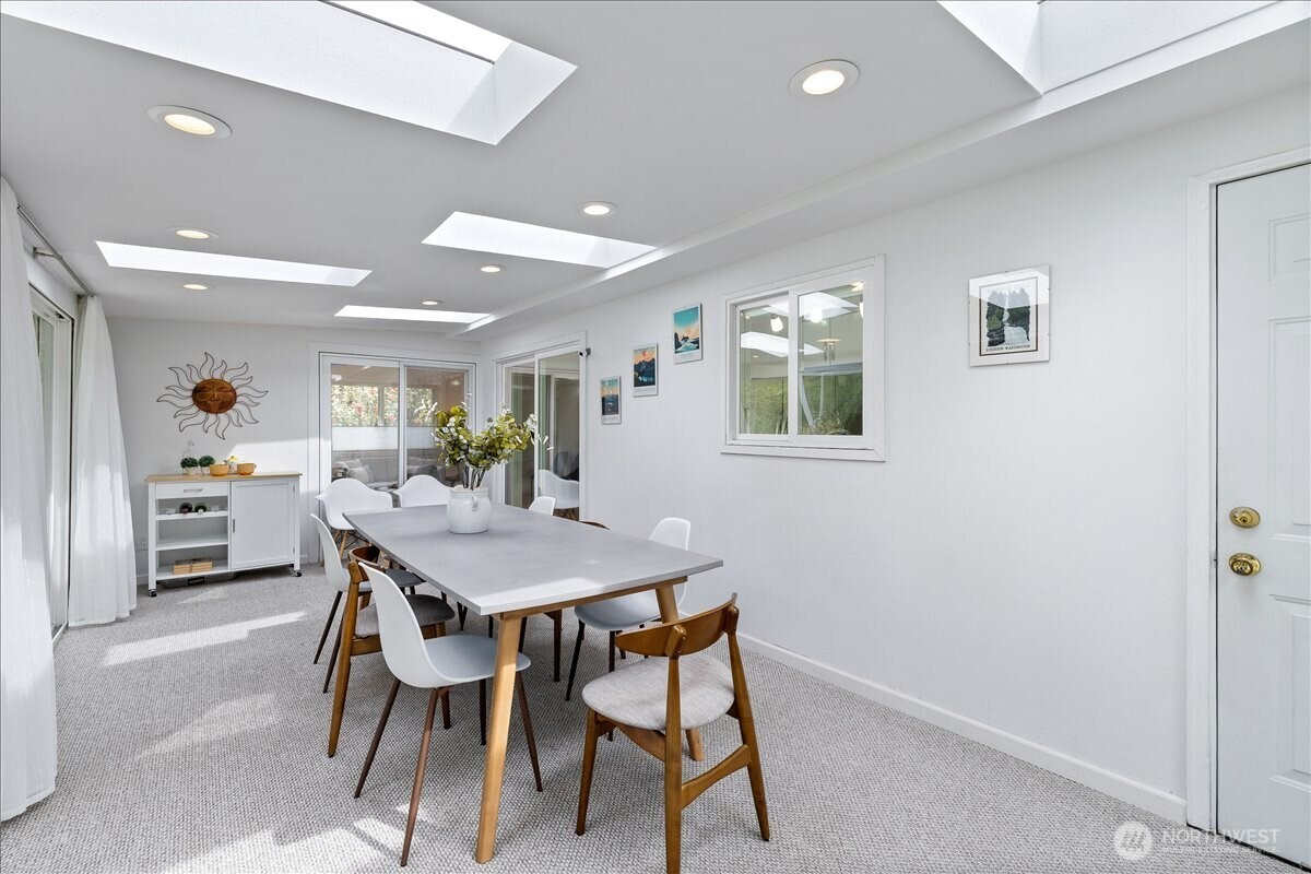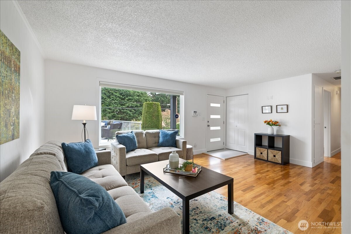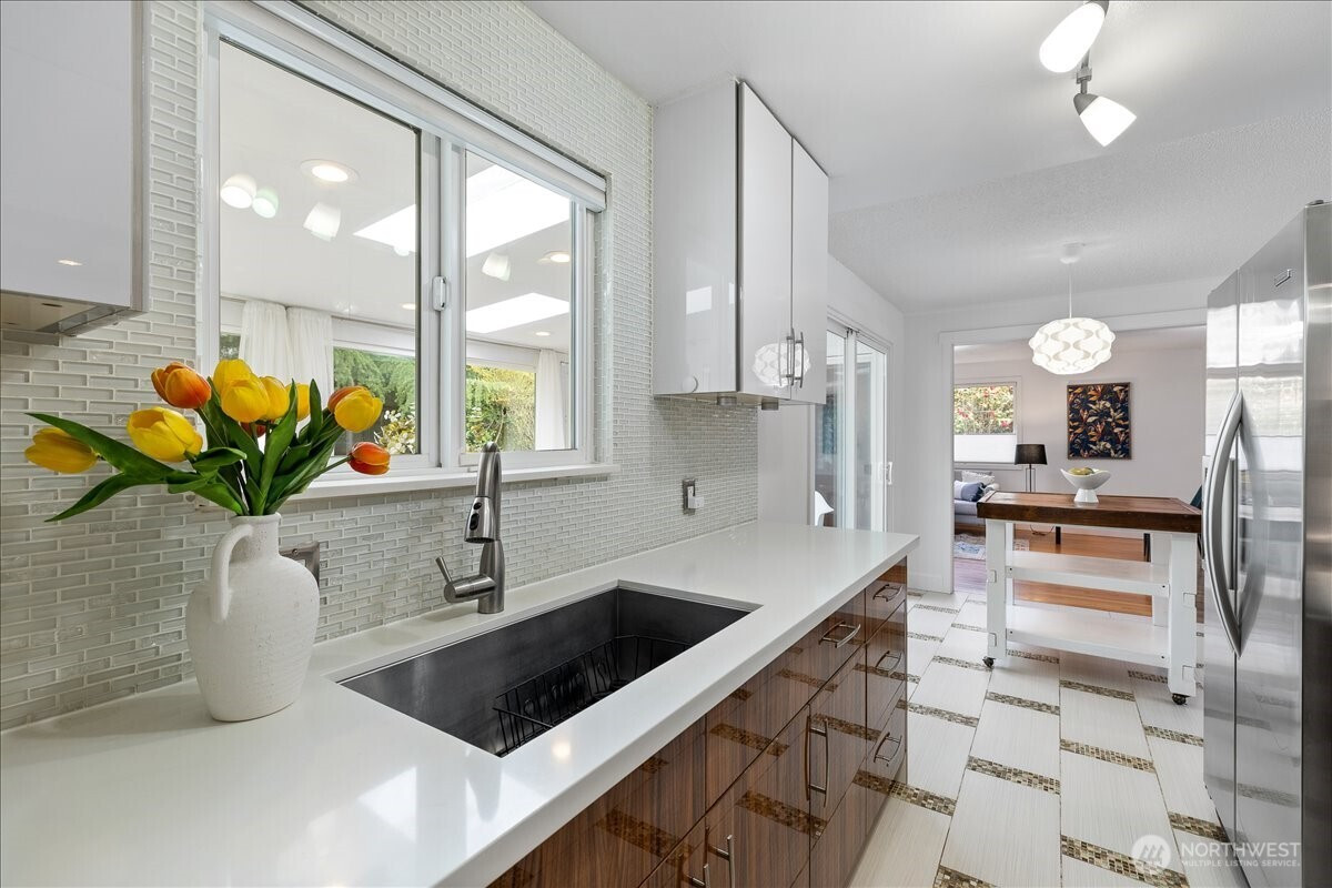Presenting a truly one-of-a-kind rambler on a large, wide lot offering exceptional space, privacy, and versatility. Thoughtfully designed with three bedrooms on one wing and a private primary suite on the other. A unique feature is the expansive front patio above the 2-car garage, creating an incredible outdoor living space with endless possibilities. Picture an outdoor lounge with BBQ for hosting gatherings, morning coffee just steps from your bedroom, or sipping your evening tea while enjoying pink-sky sunsets. Inside, you will find real hardwood floors, beautiful tilework, & elegant light fixtures that create a warm, inviting feel throughout. The fully enclosed sunroom is a standout feature, complete with sliding doors, skylights, recessed lighting, offering great flexibility as an additional living area. The backyard is fully fenced and landscaped with mature trees, including an apple tree and cherry blossom tree, along with lush greenery that create a peaceful, private outdoor retreat or a great space for pets to play. It's a 3-min walk to Inglewood Village, where QFC, coffee shops, and restaurants are conveniently located. Within a 5-mins drive are St Edward State Park with beach access and The Lodge, Bastyr University, OO Denny Park with Mt Rainier views on clear days, Big Finn Hill Park, and several scenic trails nearby. The highly rated schools in this district make this home and location even more desirable.