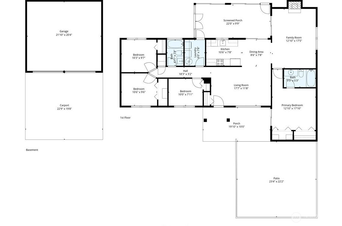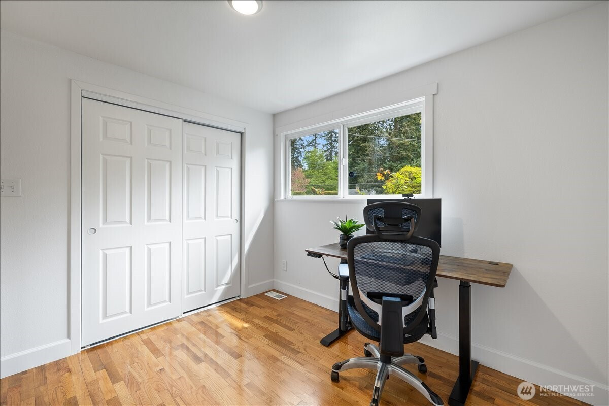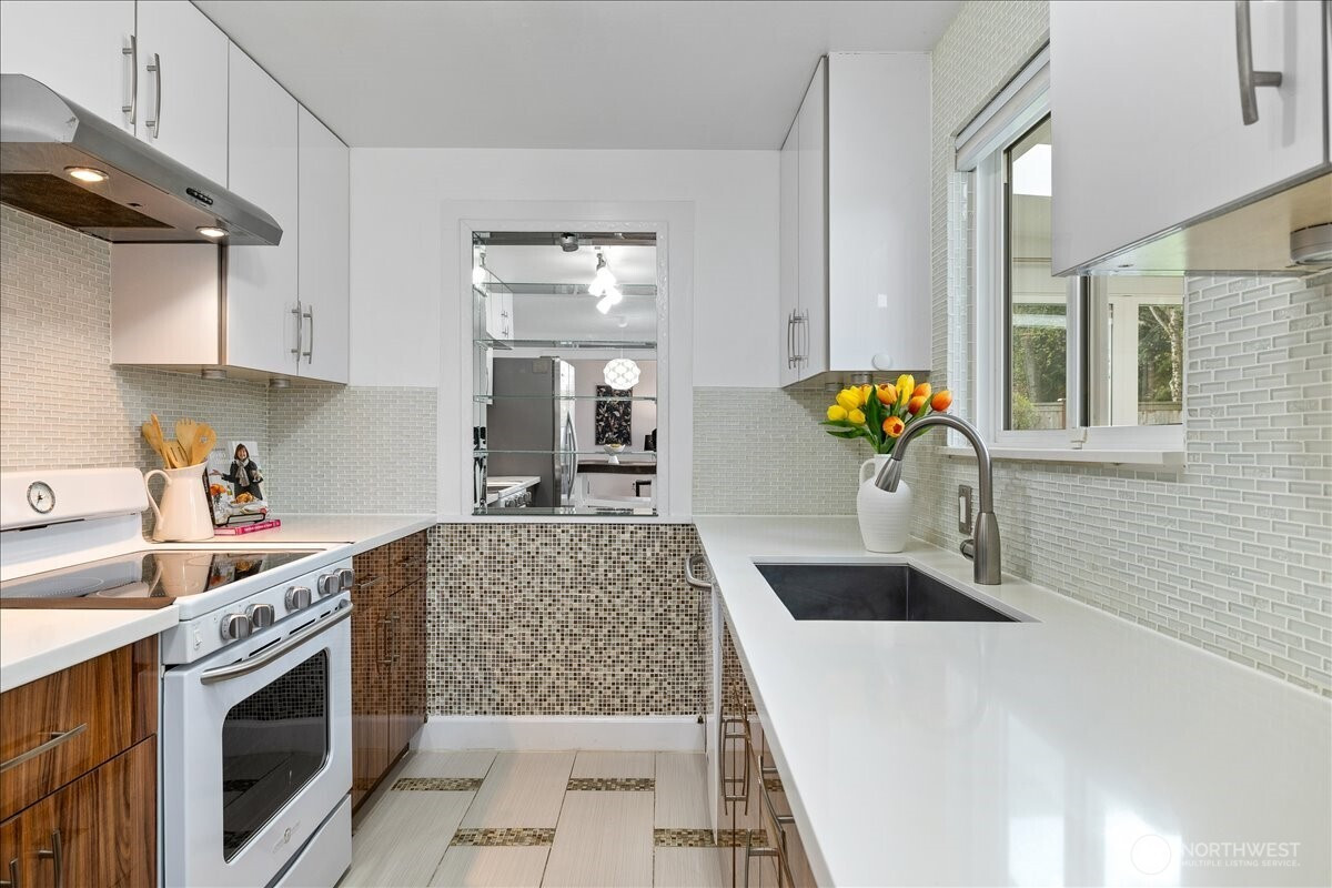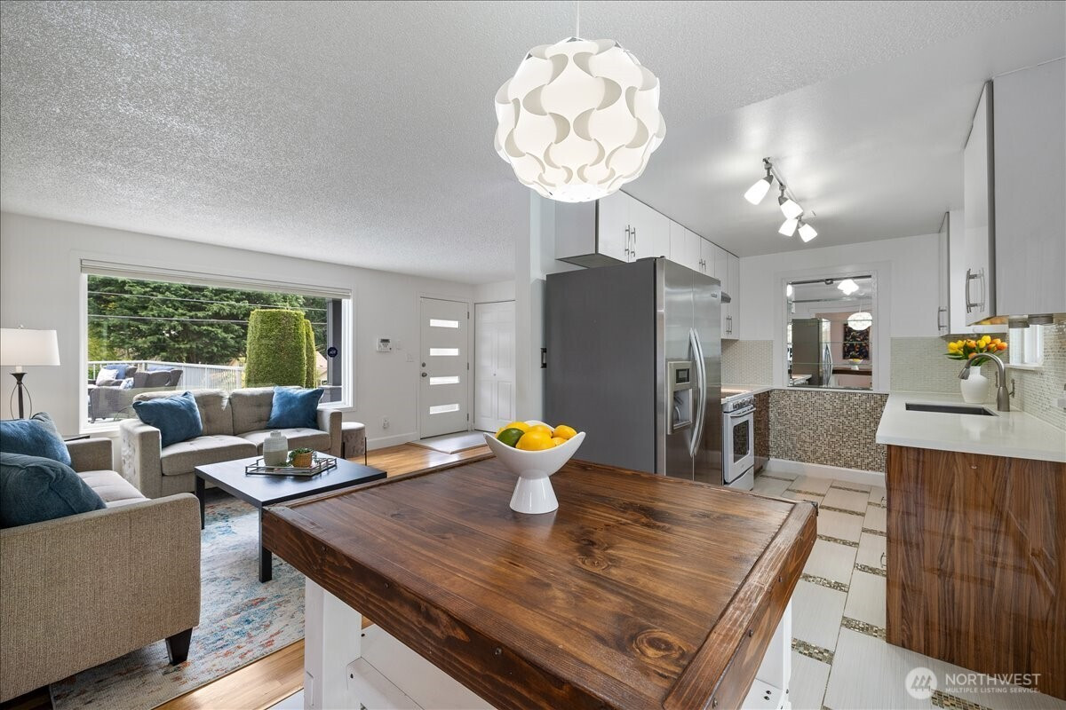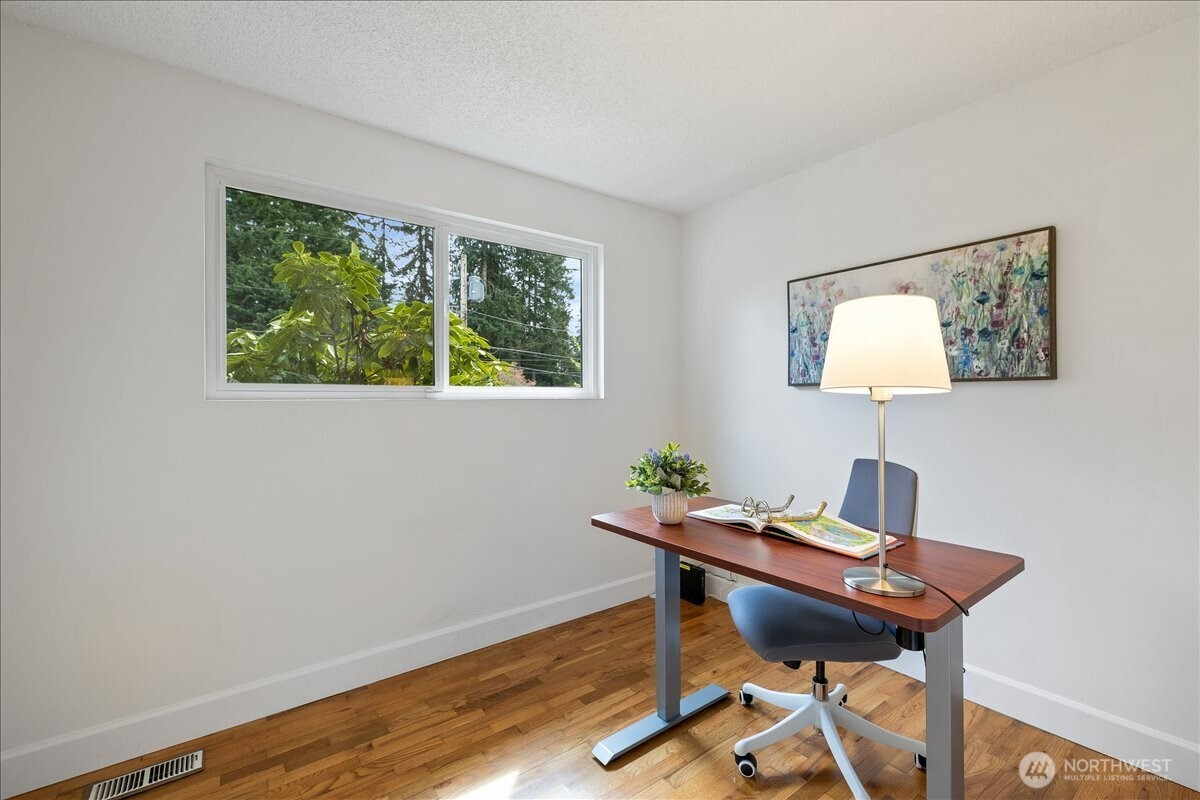 Presenting a truly one-of-a-kind rambler on a large, wide lot offering exceptional space, privacy, and versatility. Thoughtfully designed with three bedrooms on one wing and a private primary suite on the other. A unique feature is the expansive front patio above the 2-car garage, creating an incredible outdoor living space with endless possibilities. Picture an outdoor lounge with BBQ for hosting gatherings, morning coffee just steps from your bedroom, or sipping your evening tea while enjoying pink-sky sunsets. Inside, you will find real hardwood floors, beautiful tilework, & elegant light fixtures that create a warm, inviting feel throughout. The fully enclosed sunroom is a standout feature, complete with sliding doors, skylights, recessed lighting, offering great flexibility as an additional living area. The backyard is fully fenced and landscaped with mature trees, including an apple tree and cherry blossom tree, along with lush greenery that create a peaceful, private outdoor retreat or a great space for pets to play. It's a 3-min walk to Inglewood Village, where QFC, coffee shops, and restaurants are conveniently located. Within a 5-mins drive are St Edward State Park with beach access and The Lodge, Bastyr University, OO Denny Park with Mt Rainier views on clear days, Big Finn Hill Park, and several scenic trails nearby. The highly rated schools in this district make this home and location even more desirable.