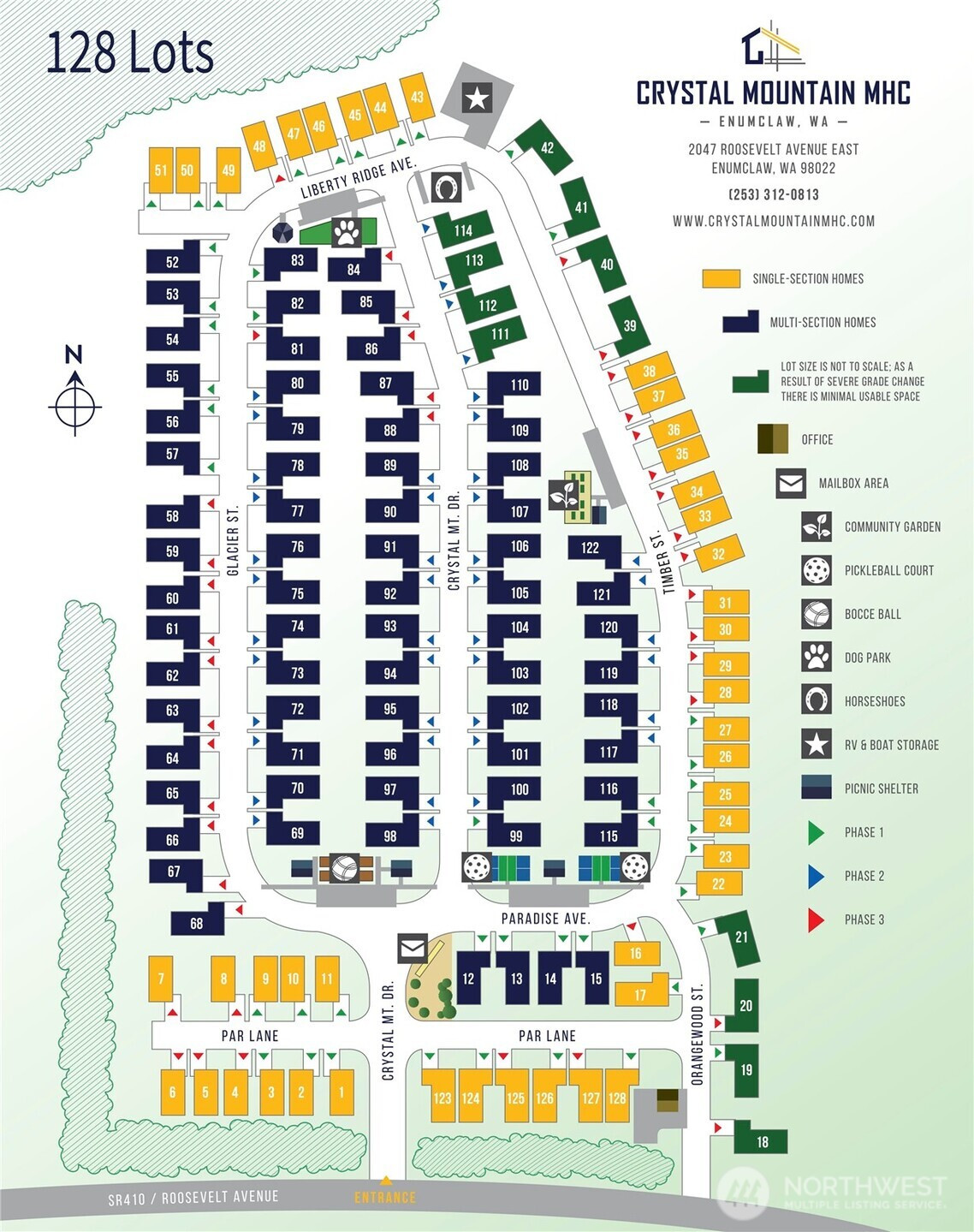 Welcome to Crystal Mt MHC, a 55+ land lease community! Pass through the gates & fall in love w/the Cottage a perfect blend of affordability & function! Open concept layout, 2BR + open flex space perfect for office & dining area. Enjoy a touch of country charm w/board & batten siding & a recessed covered entry. Kitchen features SS appliances, SS front apron sink, white cabinets, quartz, drop pendents & recessed lighting. Primary suite offers a walk-in closet, double sinks & a walk-in shower w/built-in benches. Front & back landscaping, plus a fenced yard will be completed. Enjoy community perks like bocce ball, raised garden beds, dog park & more. All conveniently located adjacent to the golf course & close to down. We welcome clients to work with their own broker when purchasing a home in or community. To be eligible for commission & client representation the cooperating broker must accompany & register Buyer/clients at FIRST visit to be eligible for Seller paid compensation.