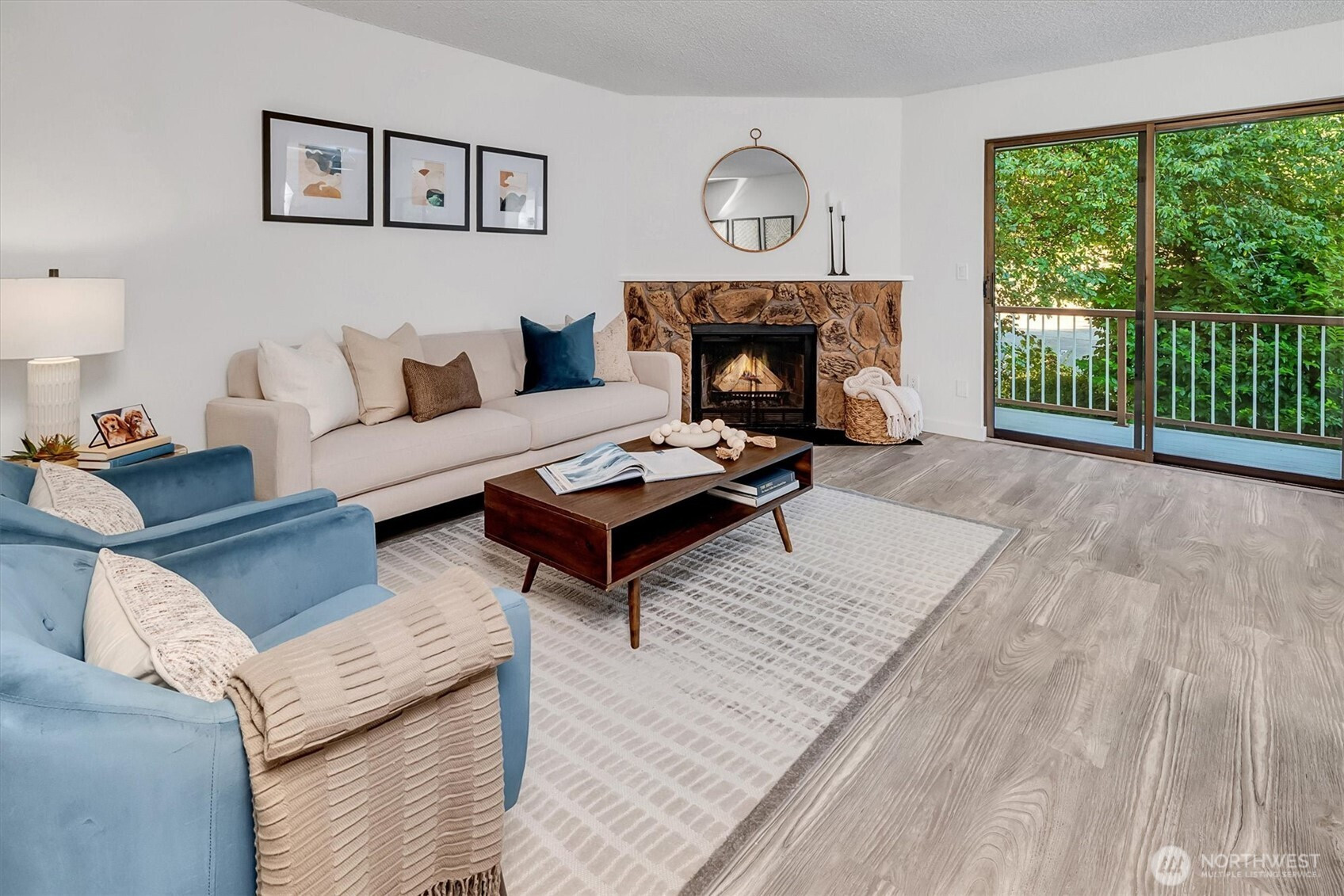 WHY RENT? Absolutely the BEST VALUE in Kirkland! Spacious, almost 1,000sf fully updated 2BR condo with versatile bonus space - perfect for home office or flex room. Live in it & enjoy, or hold as a GREAT RENTAL. Low HOA dues + No Rental Cap! Ideal location away from the hustle yet only steps to 3 beautiful parks, trails & bike routes. Minutes to Juanita Village, boardwalk, Totem Lake shopping/dining & I-405. New kitchen w/quartz counters & newer appliances. Fresh paint, new laminate floors, carpet, light fixtures, switches & outlets, updated bath with large shower. Relax by wood-burning FP or on private balcony w/storage. Reserved parking + plenty of guest spots. All appliances stay, washer & dryer too. Move-in & enjoy the holidays here!