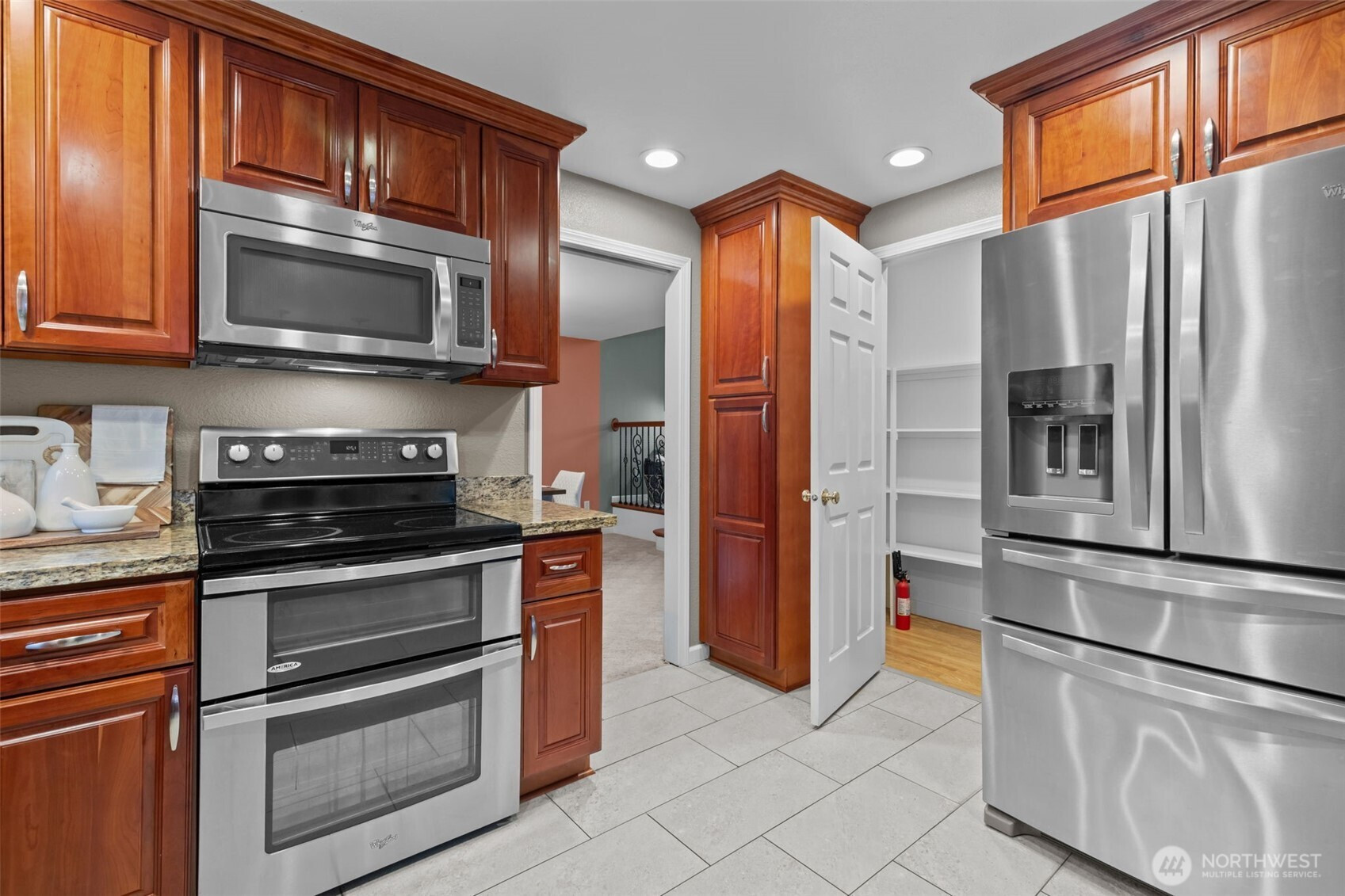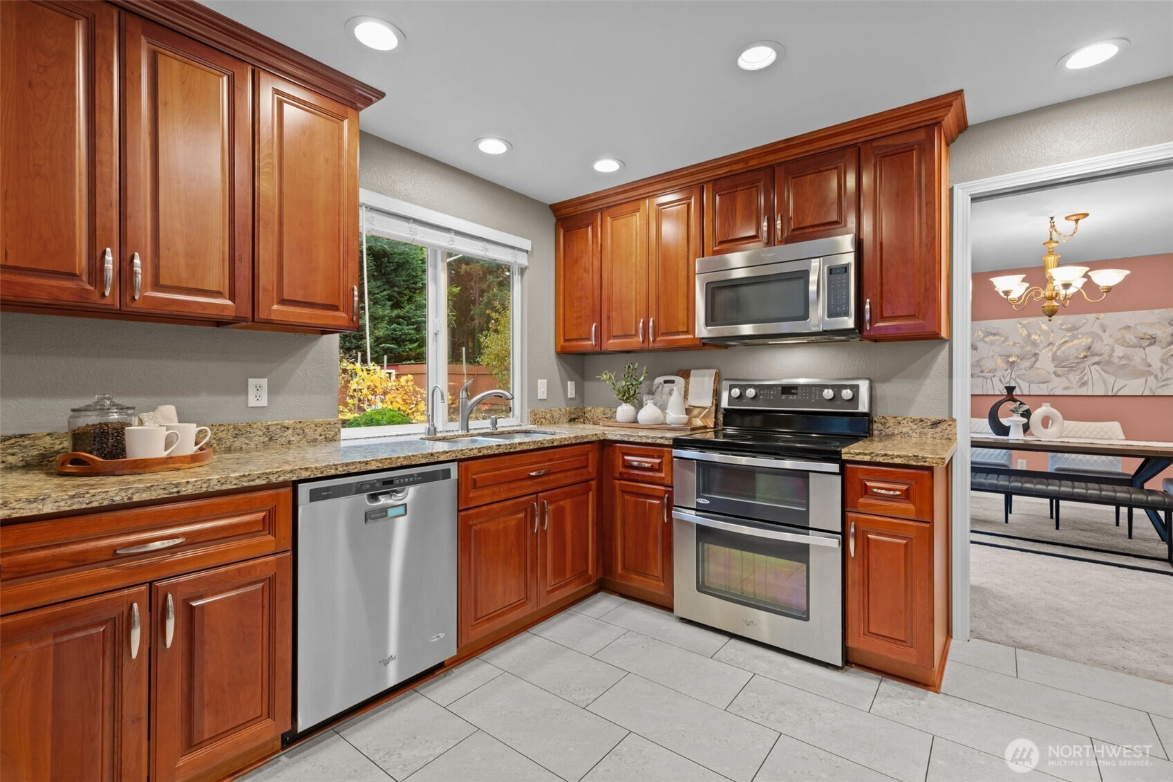Briar Hills (East Renton Highlands) | Top-rated schools | Sun-drenched, fully fenced corner cul-de-sac lot with a park-like backyard, ideal for indoor-outdoor living. Move-in ready home with open concept layout, vaulted ceilings, Brazilian cherry cabinetry, granite counters, stainless steel appliances, and high-efficiency furnace & central A/C (4 years). Formal dining overlooks serene backyard. Oversized 3-car garage plus storage. Large office/den with French doors—flexible for remote work, bonus room, or playroom. Sewer in the backyard, ready to connect. Flowing layout perfect for entertaining and everyday living near parks, trails, shopping, and Seattle/Bellevue amenities - simply unpack and start living in your dream home!