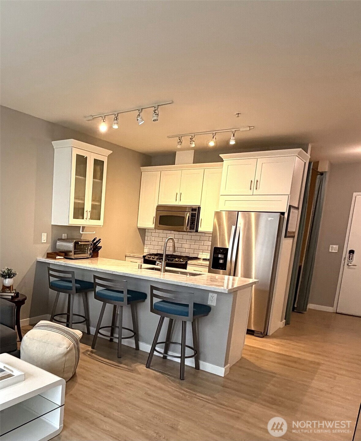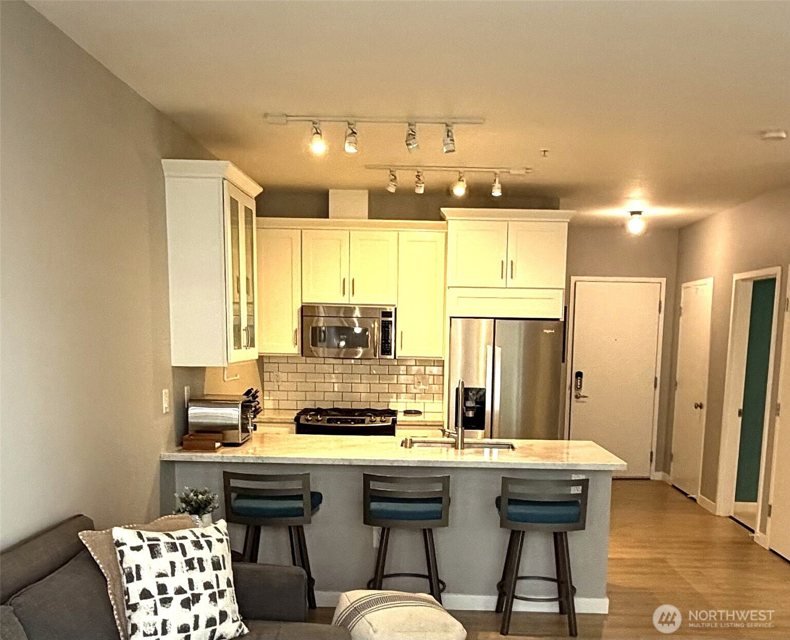 Enjoy urban living at its best in the iconic Trace North building, ideally located in the heart of Capitol Hill’s vibrant Pike/Pine corridor. This beautifully remodeled home features new cabinetry, quartz countertops, and newer stainless steel appliances with a gas range. The efficient open layout is complemented by tall ceilings and large windows that bring in abundant natural light, creating a bright and airy living space that feels larger than its footprint. A private deck off the living area offers a perfect spot to enjoy morning coffee or unwind above the city.Trace North offers sought-after amenities including a welcoming lobby, secure parking, private storage, and a spectacular rooftop deck with BBQ area and panoramic city views. The building is pet-friendly and has no rental cap, offering flexibility for both homeowners and investors.Step outside and enjoy some of Seattle’s best dining, cafés, nightlife, parks, and shopping just moments away. Light rail and multiple transit options are nearby, making commuting throughout the city incredibly convenient. With a Walk Score of 100, this location truly delivers the ultimate Capitol Hill lifestyle.