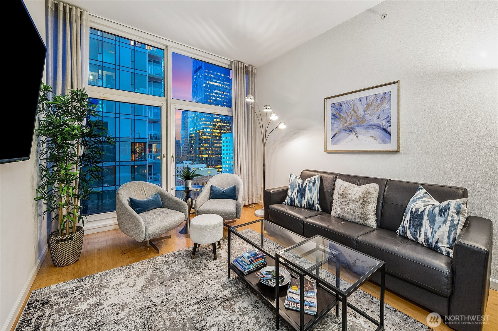 Penthouse fully furnished - Turnkey with Designer finishes! Incredible opportunity to own a world class property in Seattle with 5 star amenities- buy in time to rent short term for Fifa world cup June 2026- 5 star airbb host- over 63k income annually. Penthouse Perfect Vacation Getaway with Spectacular City Views at Newmark Tower. Welcome to your dream home/vacation retreat in the heart of downtown Seattle. 25th floor jewel box, Best location, 100 walk & transit score, just a block from Pike Place Market, SAM, Symphony & Light Rail. Spacious open floor plan ~ near 800 sqft, 11 ft floor to ceiling windows, modern remodel, new appliances, paint & lighting. Marble en-suite, full-sized laundry, abundant storage and huge closet, massive bedroom with glorious city views from floor to ceiling windows, hardwood throughout. Ideal as a primary, second home, weekend escape, or for hosting short term guests. 24/7 concierge, Indoor pool, hot tub, sauna, owners lounge, guest suite, gym, biz ctr. 1 parking, 1 storage. No Rental Cap, short term vrbo and airbb friendly. Well run HOA and heavily funded reserves. Steel and concrete building.