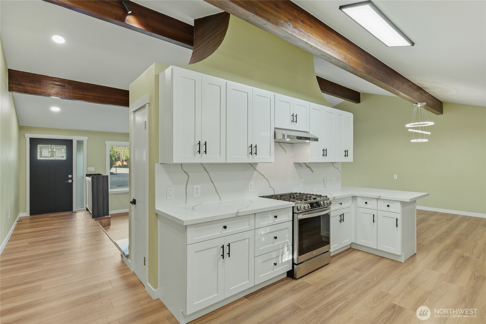 This thoughtfully updated home with timeless comfort conveniently nestled in the heart of highly sought-after Renton Highlands. The main floor features a light & bright living room with a cozy fireplace, a fully equipped brand-new kitchen with quartz countertops, sleek cabinets and SS appliances, charming formal dining room w/ slider opens to a huge covered entertaining deck. Upstairs has 3 decent size bedrooms and an oversized laundry room with a brand-new washer & dryer. Downstairs boasts an additional bedroom w/ slider open to a private back deck, it also has a gigantic family room, it's a great spot for home movie theater, karaoke, yoga, gym or whatever your heart desire. Dual gas water heaters to enhance efficiency. 3 car garage, long and deep driveway which could parked addition 6 cars and plus one designated RV parking spot. Fully fenced peaceful back yard, walking distance to school, park, trails and super easy access to freeways and shopping centers. Ideal location along with functional floor plan with ample rooms & storages, better than new and Move-in ready! Welcome Home!