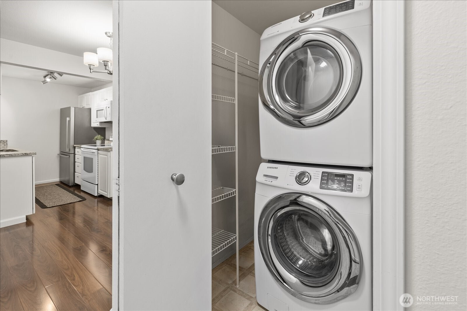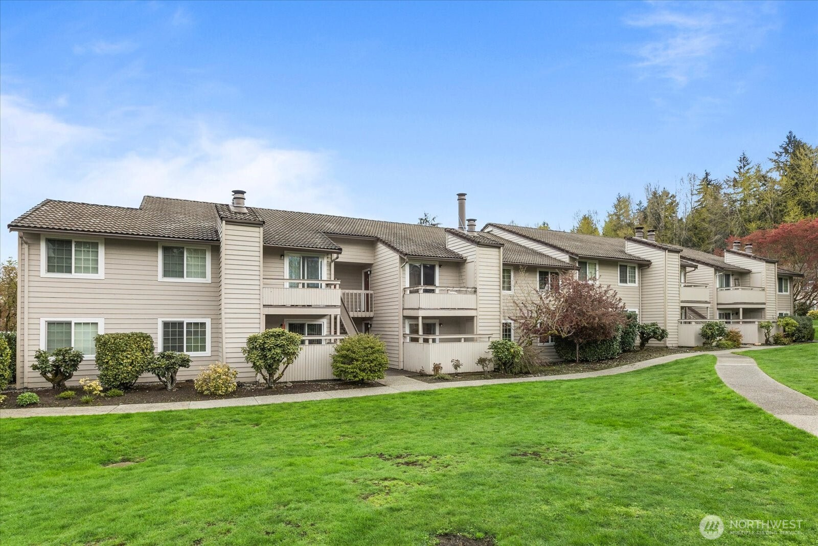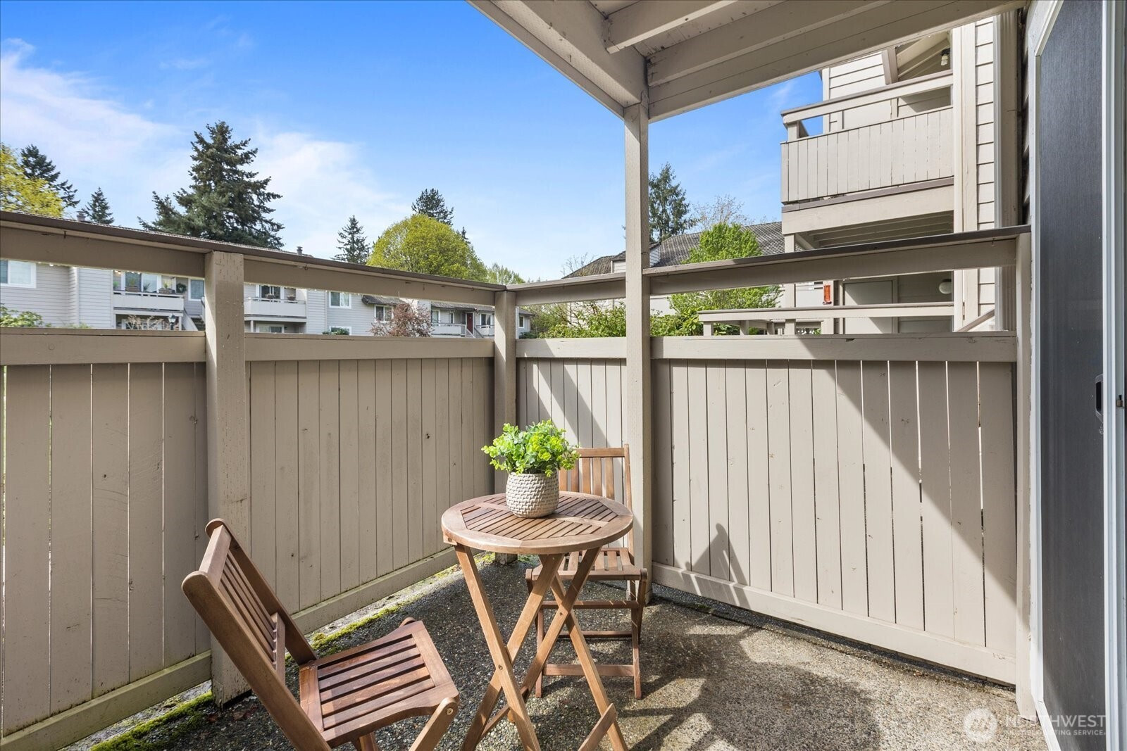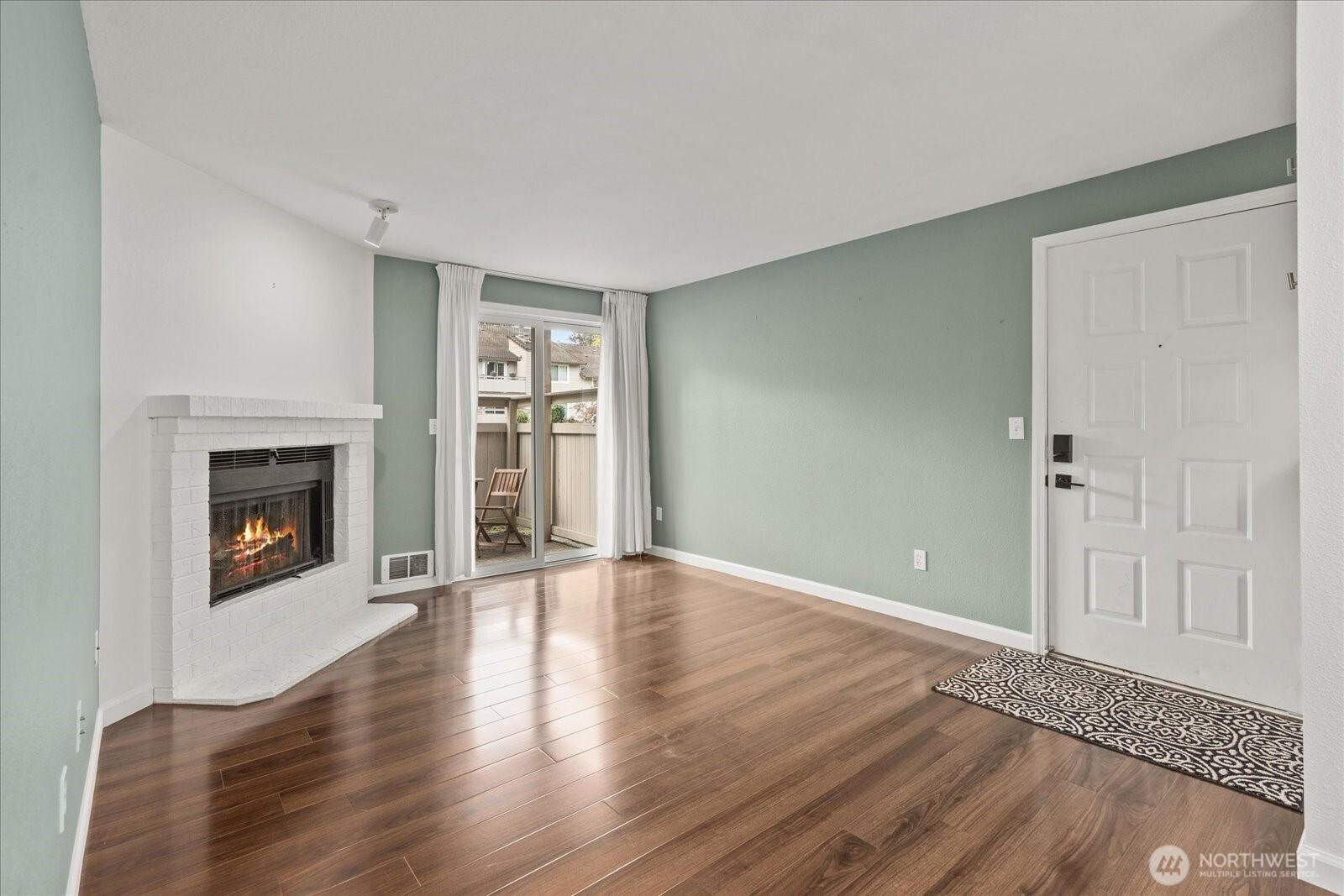 Welcome to this beautifully updated ground-floor condo in Woodland Hills Condos, where comfort meets convenience in the heart of Woodinville. Bathed in natural light and overlooking a peaceful courtyard, this inviting home offers a serene retreat with stylish, modern upgrades throughout. Inside, new wood flooring flows seamlessly throughout, creating a warm and inviting vibe. The living room is centered around a cozy wood-burning fireplace—ideal for relaxing evenings. The kitchen shines with granite countertops, wood cabinets, and newer appliances, including dishwasher & refrigerator. The bathroom has been recently updated with a new tub surround, modern vanity, updated lighting, and additional shelving, giving it a sleek, contemporary feel. The primary suite features a spacious walk-in closet fitted with custom built-ins, while the second bedroom offers versatility with a Queen-size Murphy bed—perfect for hosting guests or a flexible home office. New electric blackout blinds in both bedrooms ensure ultimate privacy & comfort. Step outside the slider to the private enclosed patio with extra storage—a perfect spot to enjoy morning coffee or unwind at the end of the day. Enjoy resort-style amenities including a gym, community room, indoor hot tub, and outdoor pool—all included in the HOA dues. Ideally located near shopping, dining, and Woodinville’s renowned wineries. With one assigned parking space, no rental cap, and Airbnb potential, this condo is not to be missed!