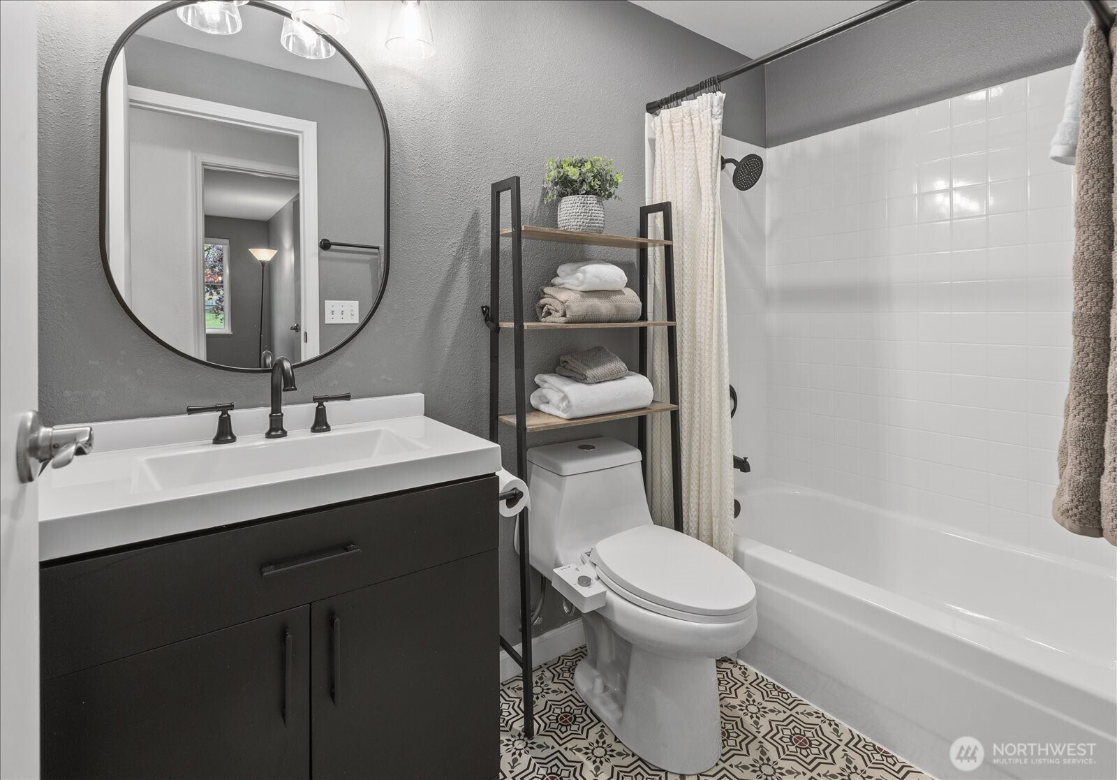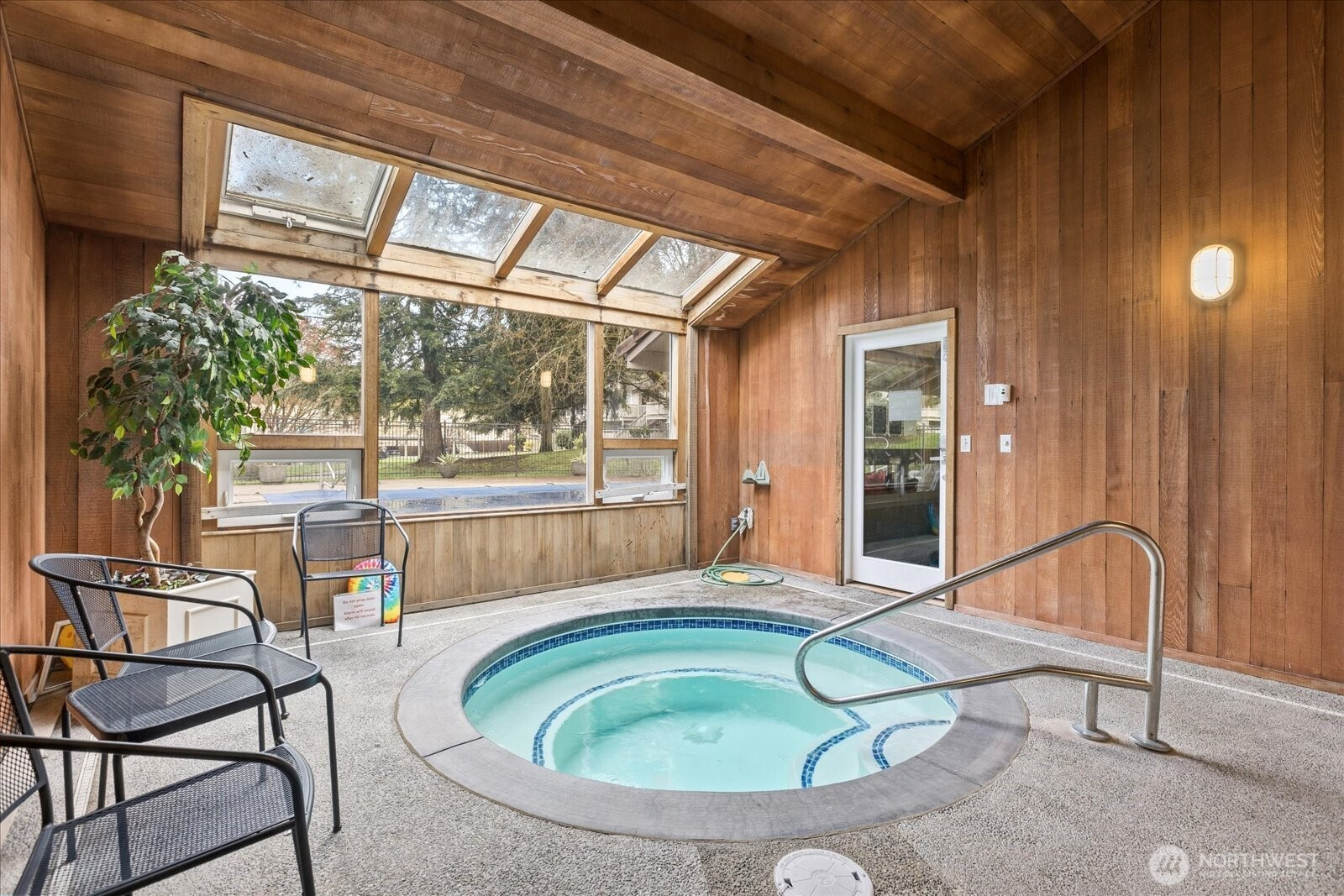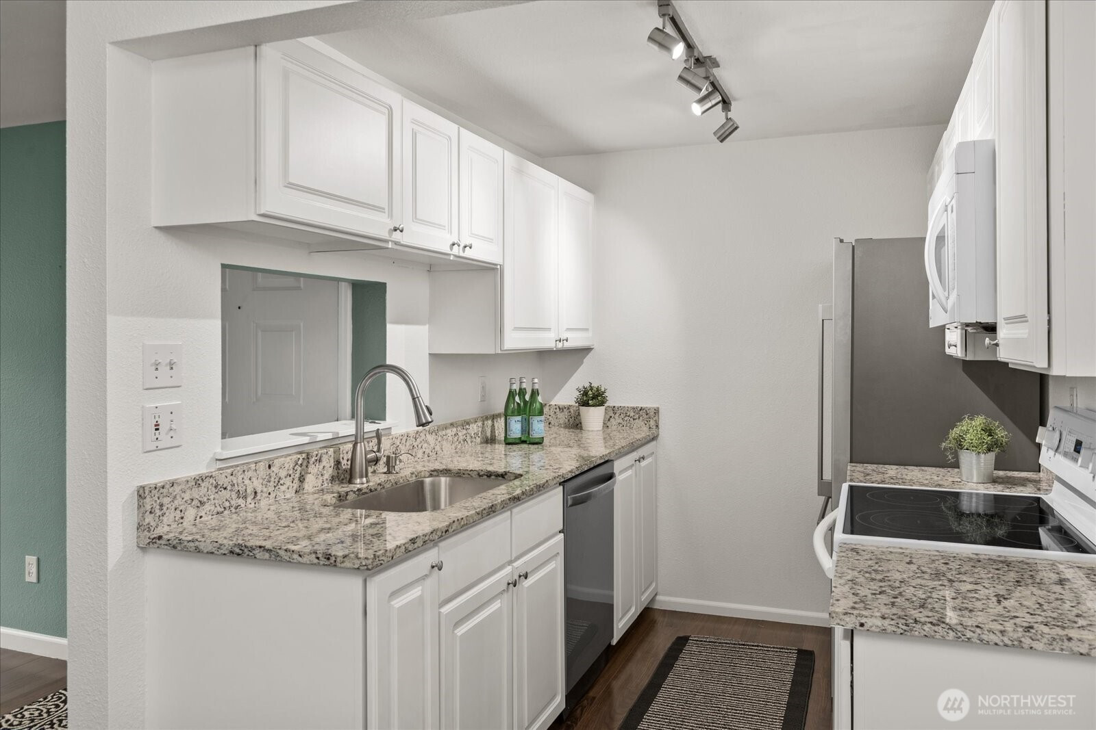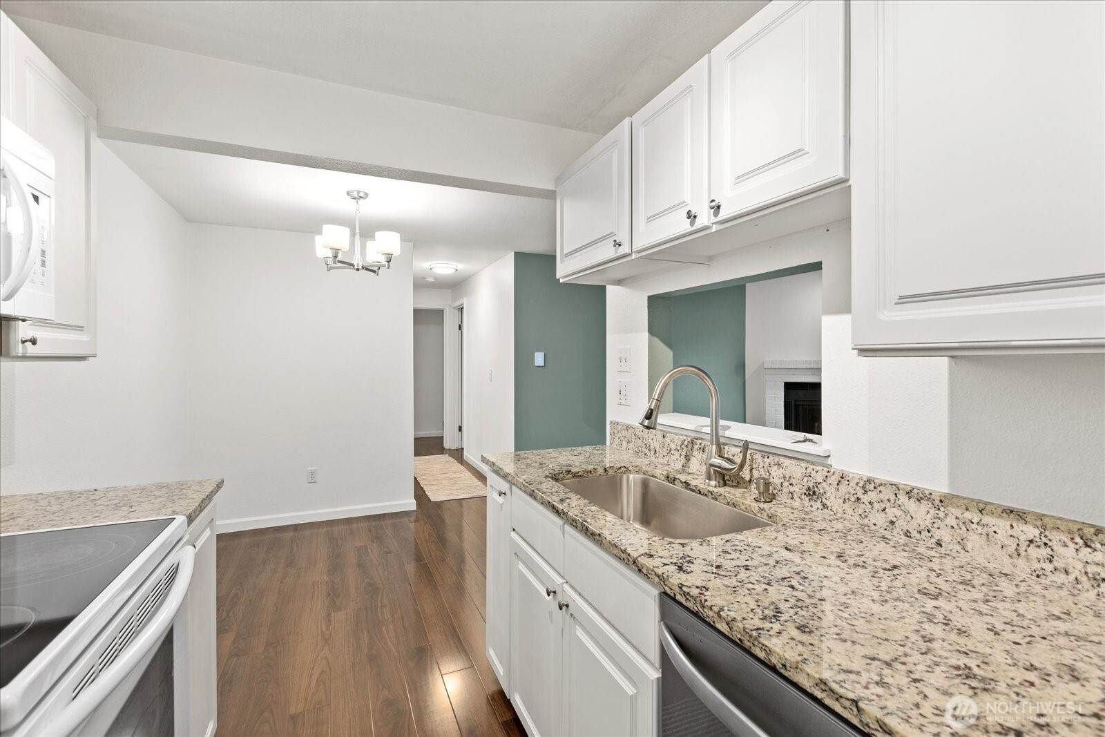 Welcome to this beautifully updated ground-floor condo in Woodland Hills Condos, where comfort meets convenience in the heart of Woodinville. Bathed in natural light and overlooking a peaceful courtyard, this inviting home offers a serene retreat with stylish, modern upgrades throughout. Inside, new wood flooring flows seamlessly throughout, creating a warm and inviting vibe. The living room is centered around a cozy wood-burning fireplace—ideal for relaxing evenings. The kitchen shines with granite countertops, wood cabinets, and newer appliances, including dishwasher & refrigerator. The bathroom has been recently updated with a new tub surround, modern vanity, updated lighting, and additional shelving, giving it a sleek, contemporary feel. The primary suite features a spacious walk-in closet fitted with custom built-ins, while the second bedroom offers versatility with a Queen-size Murphy bed—perfect for hosting guests or a flexible home office. New electric blackout blinds in both bedrooms ensure ultimate privacy & comfort. Step outside the slider to the private enclosed patio with extra storage—a perfect spot to enjoy morning coffee or unwind at the end of the day. Enjoy resort-style amenities including a gym, community room, indoor hot tub, and outdoor pool—all included in the HOA dues. Ideally located near shopping, dining, and Woodinville’s renowned wineries. With one assigned parking space, no rental cap, and Airbnb potential, this condo is not to be missed!
