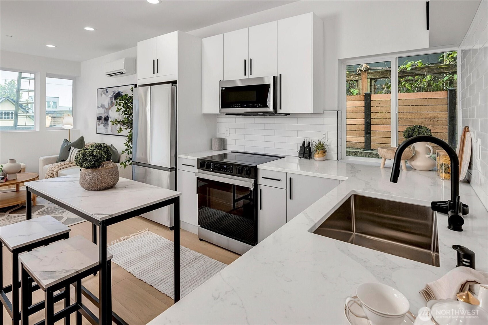 Experience a stunning collection of new constructions homes by Greenway Builders, thoughtfully designed w/ sustainability in mind. These 4-star green-built residences offers eco-friendly materials that lower costs while promoting a healthier lifestyle. This 2-bedroom home boasts premium appliances, sleek cabinetry, & luxurious primary suites. Enjoy your private rooftop deck w/ breathtaking views of Bellevue’s skyline, the Cascade Mtns, & Lake Washington. Enjoy No HOA fees & EV ready private parking stall. Convenience is at your doorstep- blocks from Capitol Hill, Trader Joe’s, plus lively 23rd/Union filled w/ restaurants, cafes, & shops. Walk Score of 94 and Bike Score of 91!