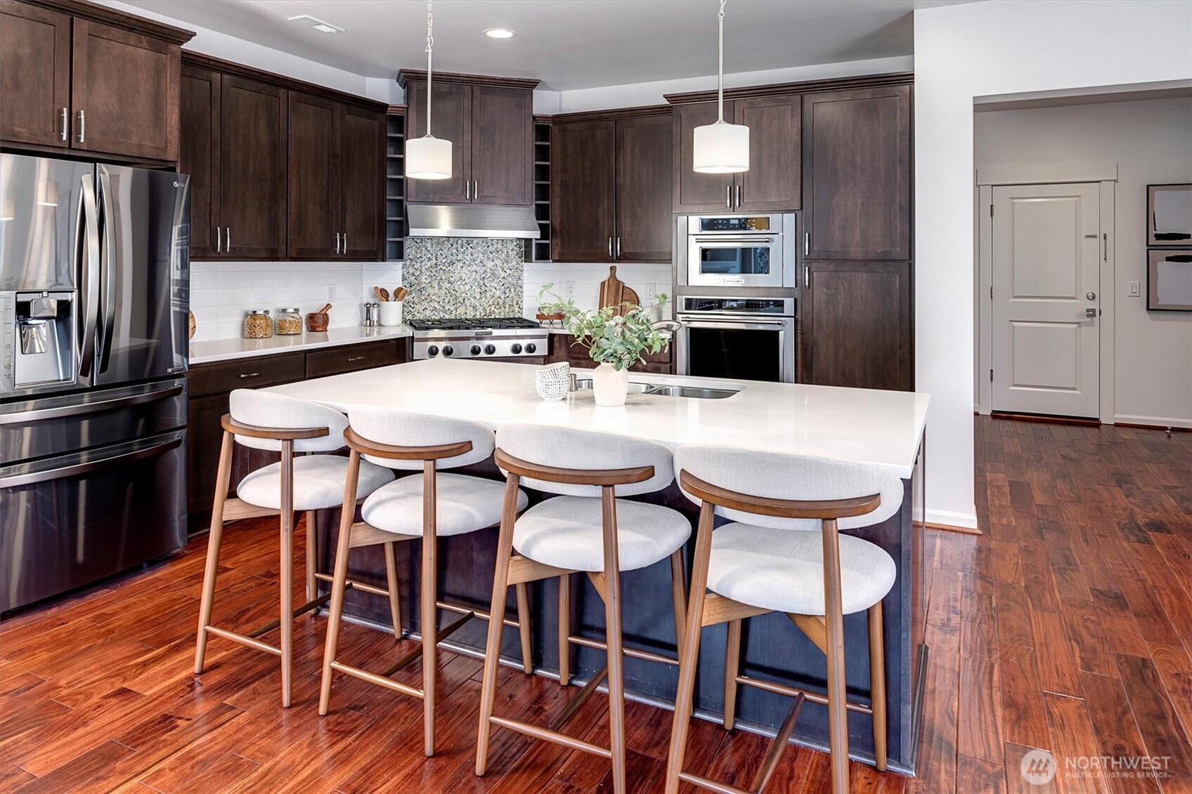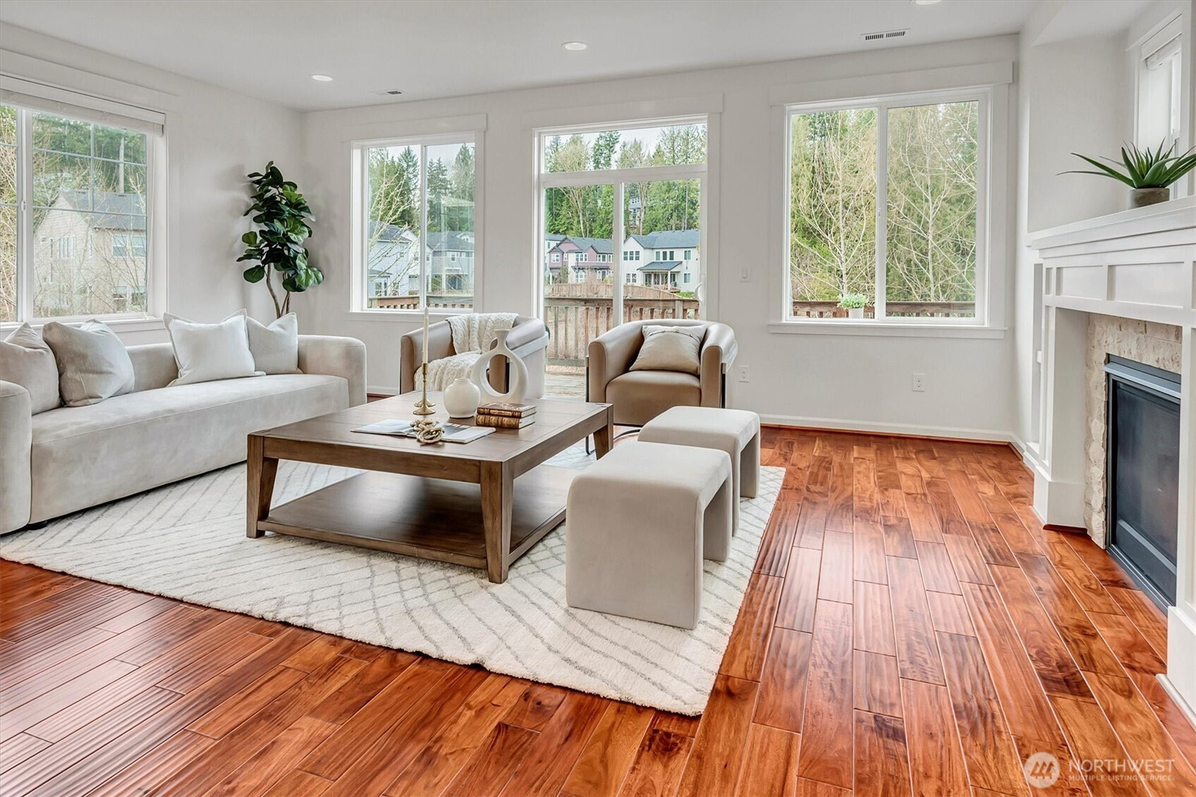 Light filled interiors & a spacious, thoughtfully designed floorplan welcome you to this beautifully maintained one owner home in a premiere Sammamish location. Fresh interior paint & brand new carpet highlight the exceptional pride of ownership throughout, while wood floors, elegant finishes, & a welcoming gas fireplace surrounded by thoughtful built-ins anchor the main living space. The open kitchen flows seamlessly into the living & dining areas, offering an easy, functional layout well suited for both everyday living & entertaining. Upstairs, the primary suite features a luxurious en suite bath & an oversized walk-in closet with custom built-ins, complemented by two additional bedrooms & a flexible bonus sitting or workspace area. The lower level adds over 850 sqft of fully finished living space with direct access to a walkout yard, providing excellent flexibility for media, recreation, fitness, or more. Backing to protected green space, the home enjoys rare privacy & serene natural views that will remain preserved. Located in the Woodhaven community by Toll Brothers, the home is set within a highly walkable neighborhood, served by world class schools - Clara Barton, Inglewood Middle, Eastlake High, & is conveniently close to Sammamish Highlands shopping, dining, & everyday amenities, while still being just minutes to DT Redmond, light rail transit, & 520. A rare opportunity to enjoy space, comfort, & lifestyle in one of Sammamish’s most desirable communities.