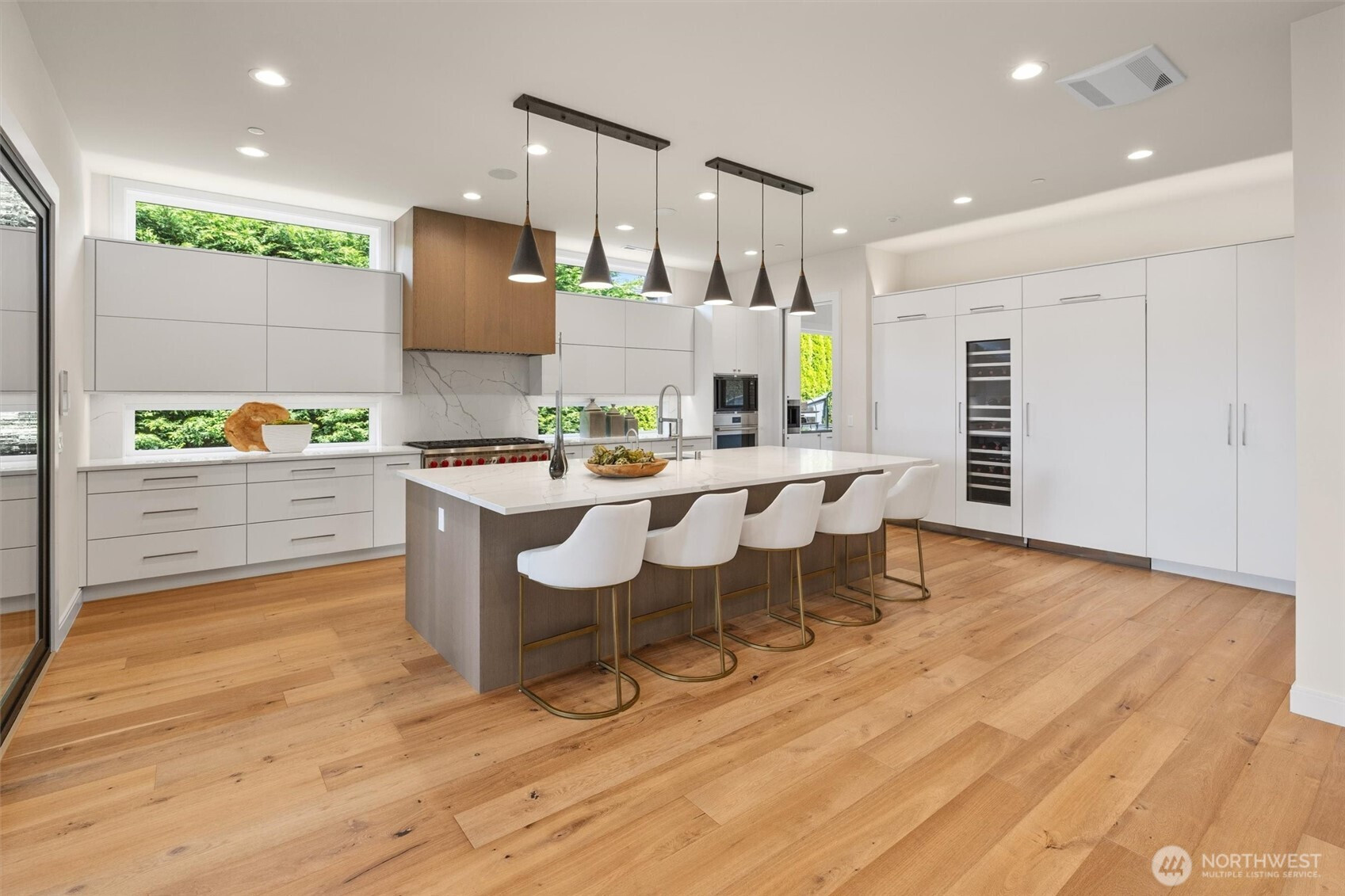 An extraordinary Clyde Hill estate offering privacy, scale, and refined modern living in the heart of one of West Bellevue’s most sought-after neighborhoods. Recently built on an impressively large lot, this residence showcases modern architecture and refined finishes throughout. The home features six spacious en-suite bedrooms, a private media room, an expansive bonus room with a bar, and a climate-controlled 350+-bottle wine cellar designed for the serious collector. A gourmet chef’s kitchen with top-tier appliances is complemented by a separate prep kitchen, allowing for effortless hosting. A refined library and extensive custom closets add both elegance and function. Walls of windows and soaring ceilings bring in abundant natural light and frame peaceful territorial views. The grounds have been fully reimagined with new professional landscaping, are perfect for outdoor entertaining, and are completely secured with fencing, a private gate, and security cameras for ultimate privacy. Ideally located minutes from downtown Bellevue, world-class shopping, dining, and top-rated Bellevue schools.