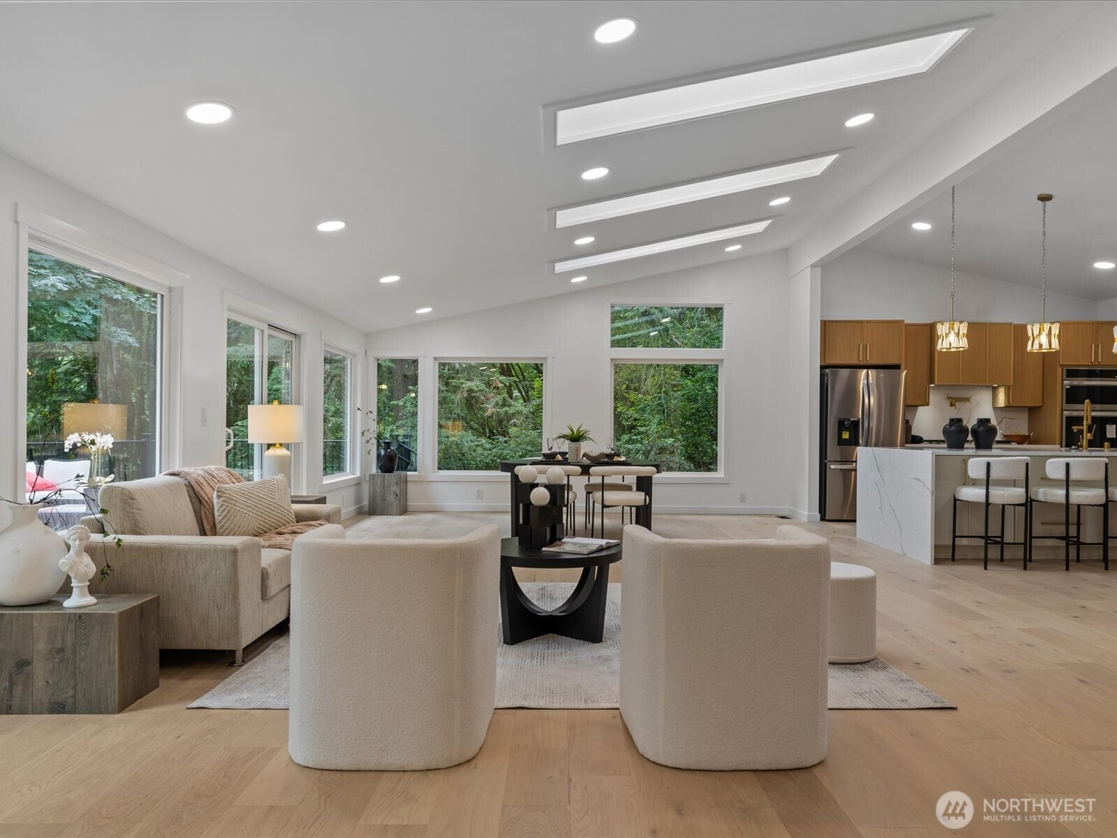 Get a 4.375% rate with seller credit! Or 1% lender credit. PRE-INSPECTED Beautiful RAMBLER blends comfort, style & location! Tucked away on nearly an acre at the end of a quiet cul-de-sac backing to a serene greenbelt, it offers rare privacy just minutes from city conveniences. The light-filled layout flows around a central luxury kitchen—perfect for entertaining—connecting formal living & dining, a cozy family room, and dedicated office. Two bedrooms and the primary suite sit privately on one wing, each with backyard access for seamless indoor-outdoor living. Updated marble bath, engineered hardwoods & expansive deck overlooking nature. Minutes to downtown Redmond & highways. BEST SCHOOLS! First time on market!