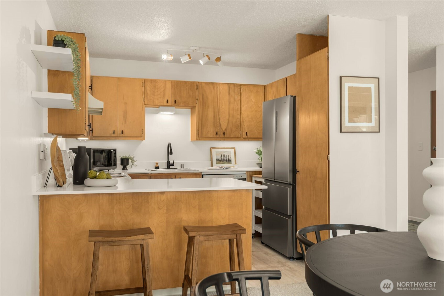Thoughtfully updated condo in Benson Hills with a spacious, open layout and plenty of natural light. New carpet, fresh paint, plus an updated kitchen with new countertops and a stainless steel refrigerator. Bathrooms with upgraded cabinets and laminate flooring. Spacious primary with an en-suite bath. The second bedroom works well for guests or a home office. Enjoy gorgeous sunsets from your own private deck. Community features include: a newly finished sauna, a sports court, a heated outdoor pool, and beautifully maintained grounds. Convenient, ample guest parking and 1 dedicated parking space, with an ideal location near shopping, transit, and freeway access. No rental cap adds long-term investment flexibility.