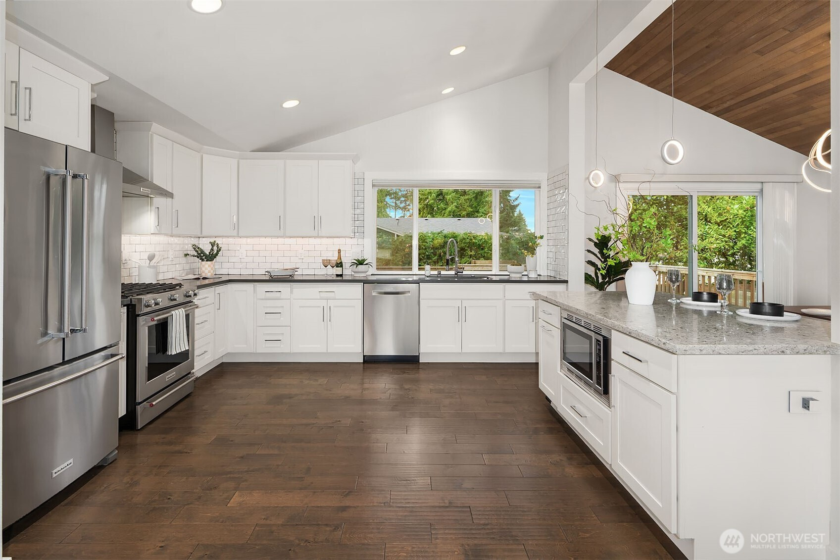 (503) 893-8874{{Chic, Bright, & stylish turnkey in Kingsgate}} This beautifully updated home features vaulted cedar ceilings, Hardwood flooring, & an open layout w/ a gas fireplace perfect for entertaining. The chef’s inspired kitchen spotlights a large island w/ a built-in microwave, a gas range, & soft-close cabinetry. The main level provides 4 bedrooms, including a serene primary w/ en-suite bathroom & a crisp hall bath w/ double trough sink. Downstairs offers a large rec room w/ wood fireplace, Murphy bed, sleek ¾ bath, laundry room, wine cellar, & extra storage. A large Deck, fenced yard, 2-car garage, & great community amenities, along w/ EZ access to the Tolt Trail & Woodinville Wine District, complete the package & make this a true showstopper!