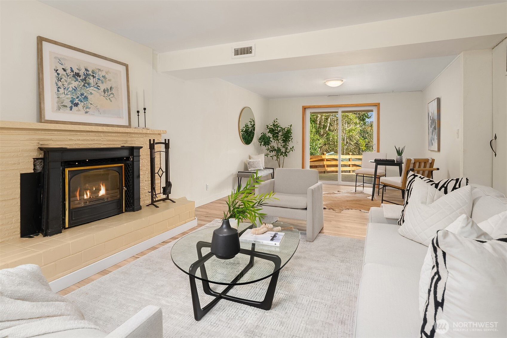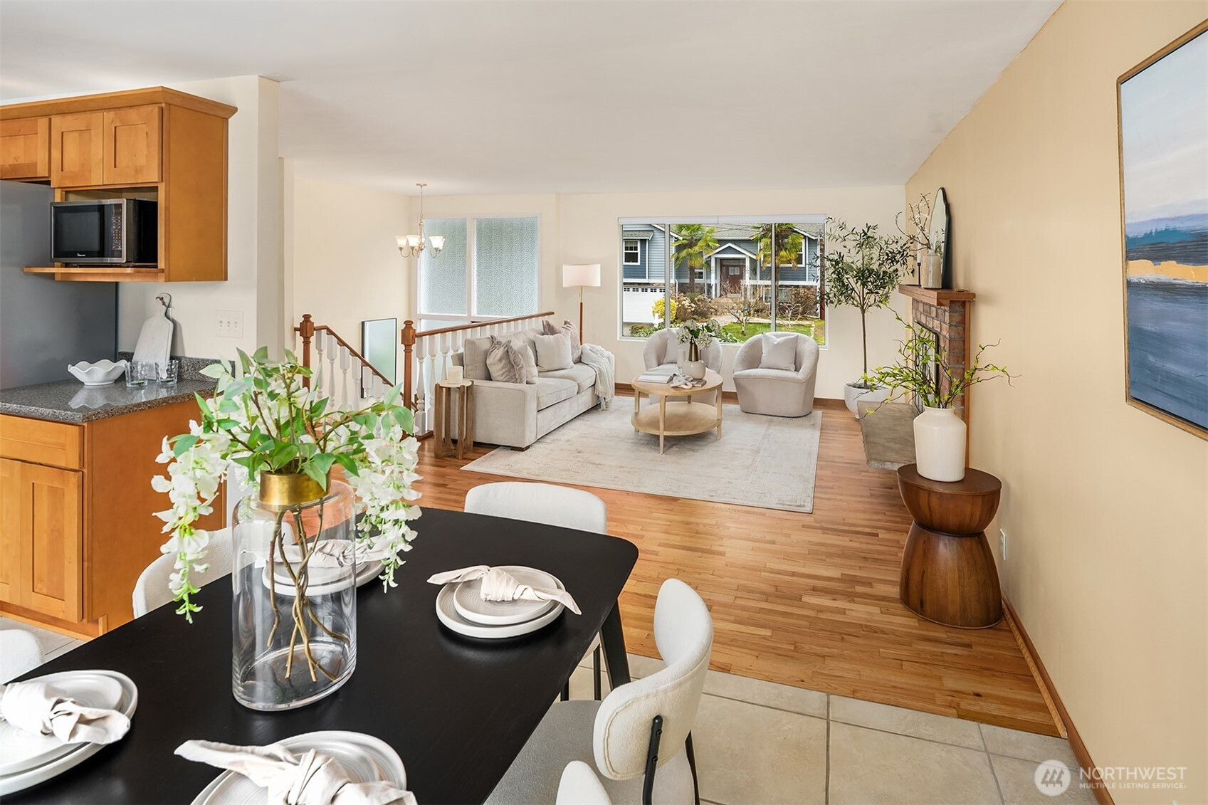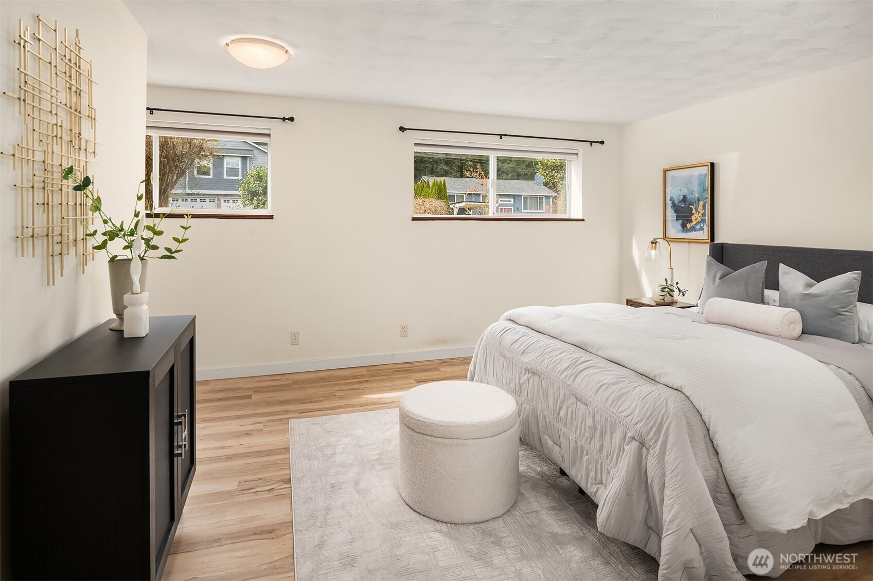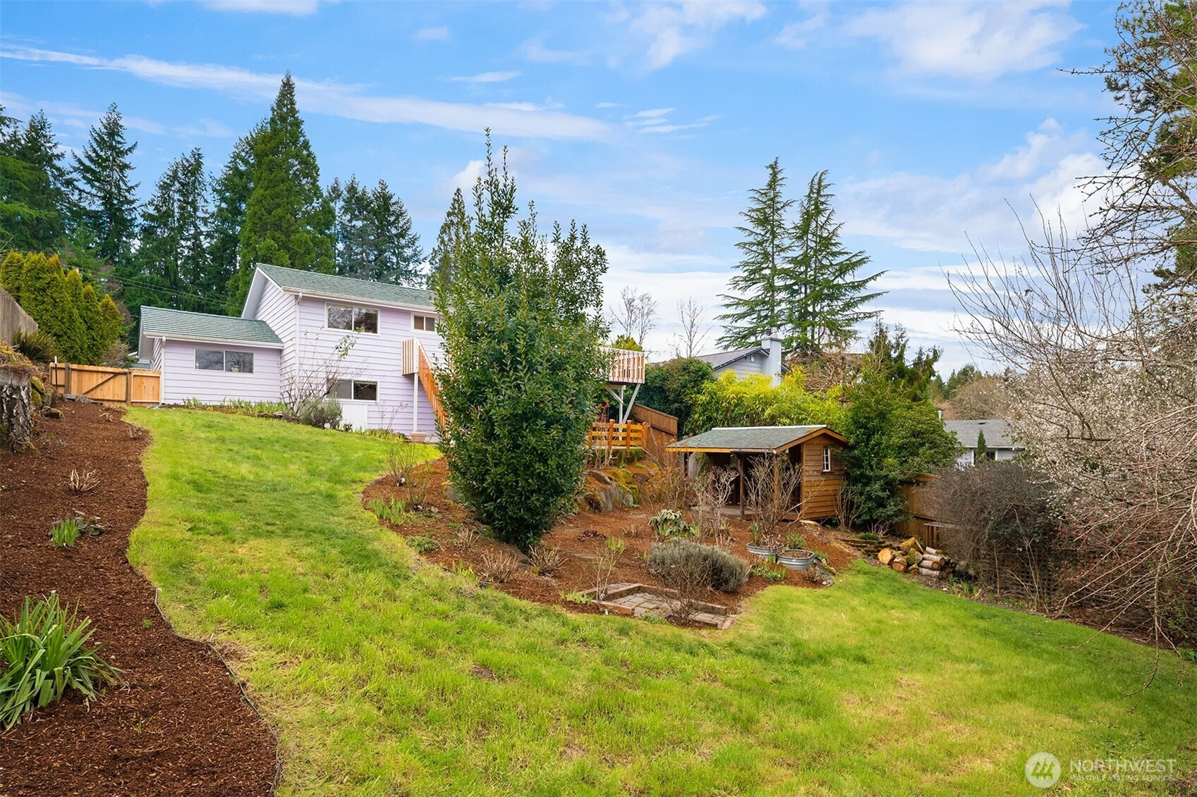This 5-bedroom home is tucked away on a quiet dead-end street in Bellevue’s sought-after Lake Hills neighborhood. Upon entering, walls of windows flood the home with natural light, creating bright, welcoming spaces throughout. The open-concept main level features a spacious living room with a cozy wood-burning fireplace, perfect for relaxing or gathering with friends. The beautifully remodeled kitchen showcases custom Craftsman cabinetry and stainless steel appliances, and it flows seamlessly into the dining area, where a sliding door opens onto an oversized deck overlooking lush gardens and the Bellevue Urban Garden (tBUG). Three generously sized bedrooms and an updated full bath complete the upper level. The lower level offers flexibility, featuring an oversized bonus room with a sliding door that opens onto a large patio, ready for your summer BBQs and outdoor entertaining. A laundry room, two large bedrooms (ideal for guests or a home office), and another beautifully updated full bathroom finish off this level. Outside, the grounds feel like a natural retreat, with abundant flowering plants and a charming garden shed tucked away in a private setting. Additional highlights include a low-maintenance metal shake roof and a new energy-efficient furnace. Ideally located just minutes to 405, Bellevue Square Mall, a variety of dining options and walk to Lake Hills Greenbelt trails. The home is also served by award-winning Bellevue schools.