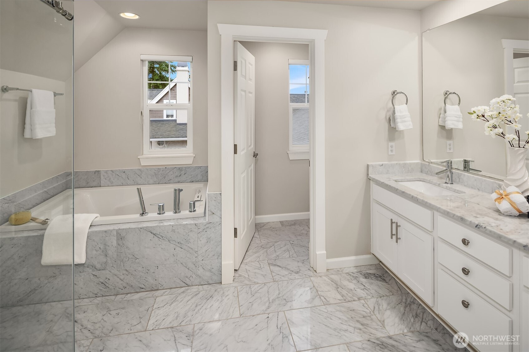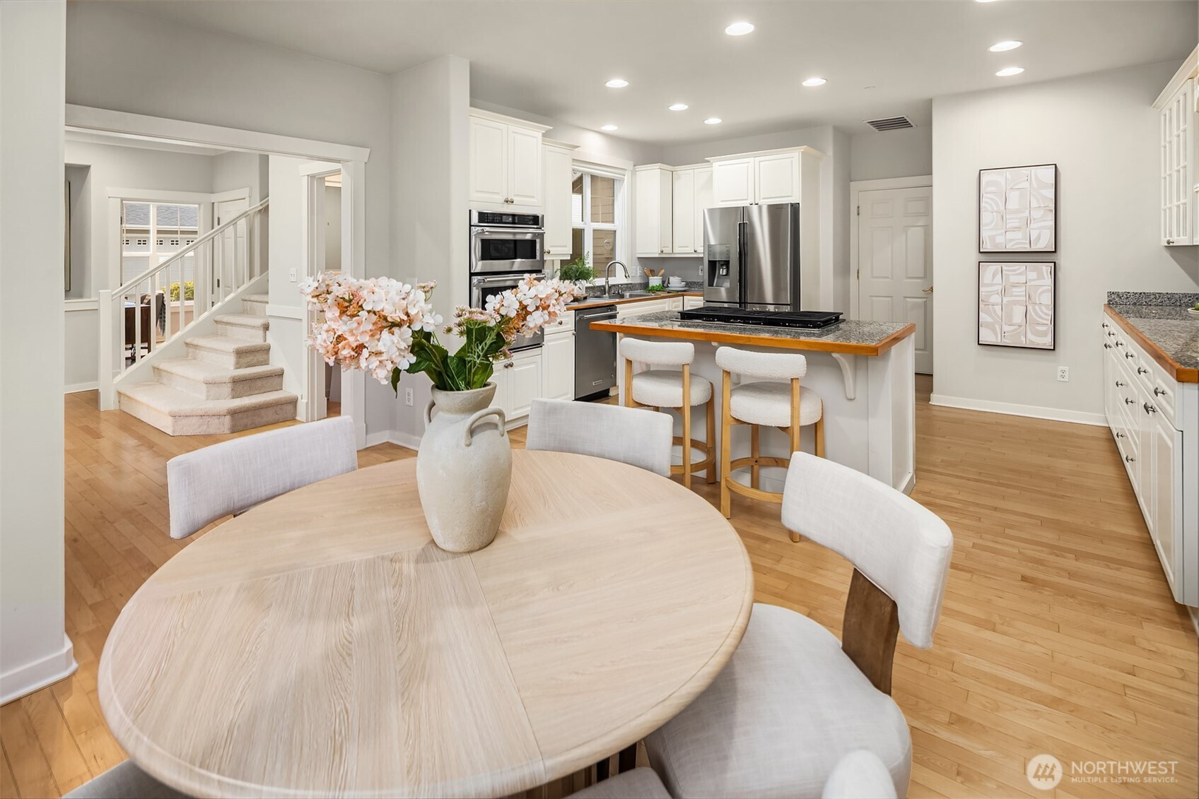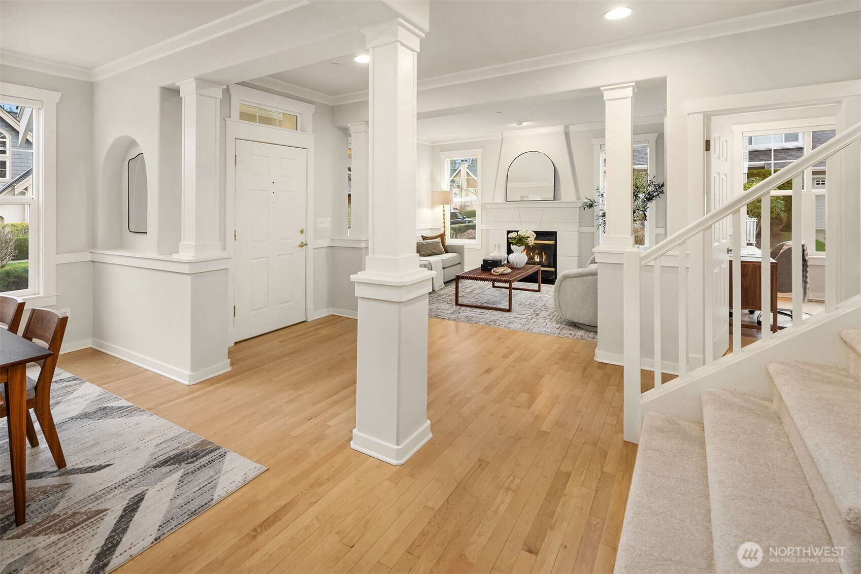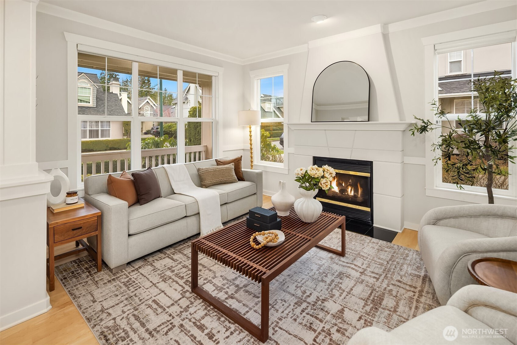 Welcome home to "The Cottages". A highly desirable community nestled in the heart of the Issaquah Highlands. Sun drenched home with a favorable floor plan and tasteful updates throughout. Refinished hardwoods, brand new carpet and updated Primary bath, this home has been meticulously maintained and is move in ready. Light and bright main level features large family room with a gas fireplace, large Den with built in shelving and separate entrance, beautiful dining room and large kitchen with eat up island and breakfast nook. Kitchen also features french doors out to courtyard, perfect spot to enjoy your morning coffee. Updated Primary bedroom on the 2nd level features large bay window and walk in closet with custom shelving. Two Additional, very large, guest rooms upstairs which could also function as 2nd home office or bonus room. 2nd level laundry. Roof was recently replaced and exterior siding was freshly painted. New furnace, hot water heater installed in 2024. New A/C installed in 2022. Plumbed for a generator. Walkable to all Issaquah Highlands amenities, Grand Ridge Plaza and popular Ashland Park. Highly sought-after Issaquah Schools and Grand Ridge Elementary. A sophisticated urban lifestyle set against a backdrop of quiet beauty.