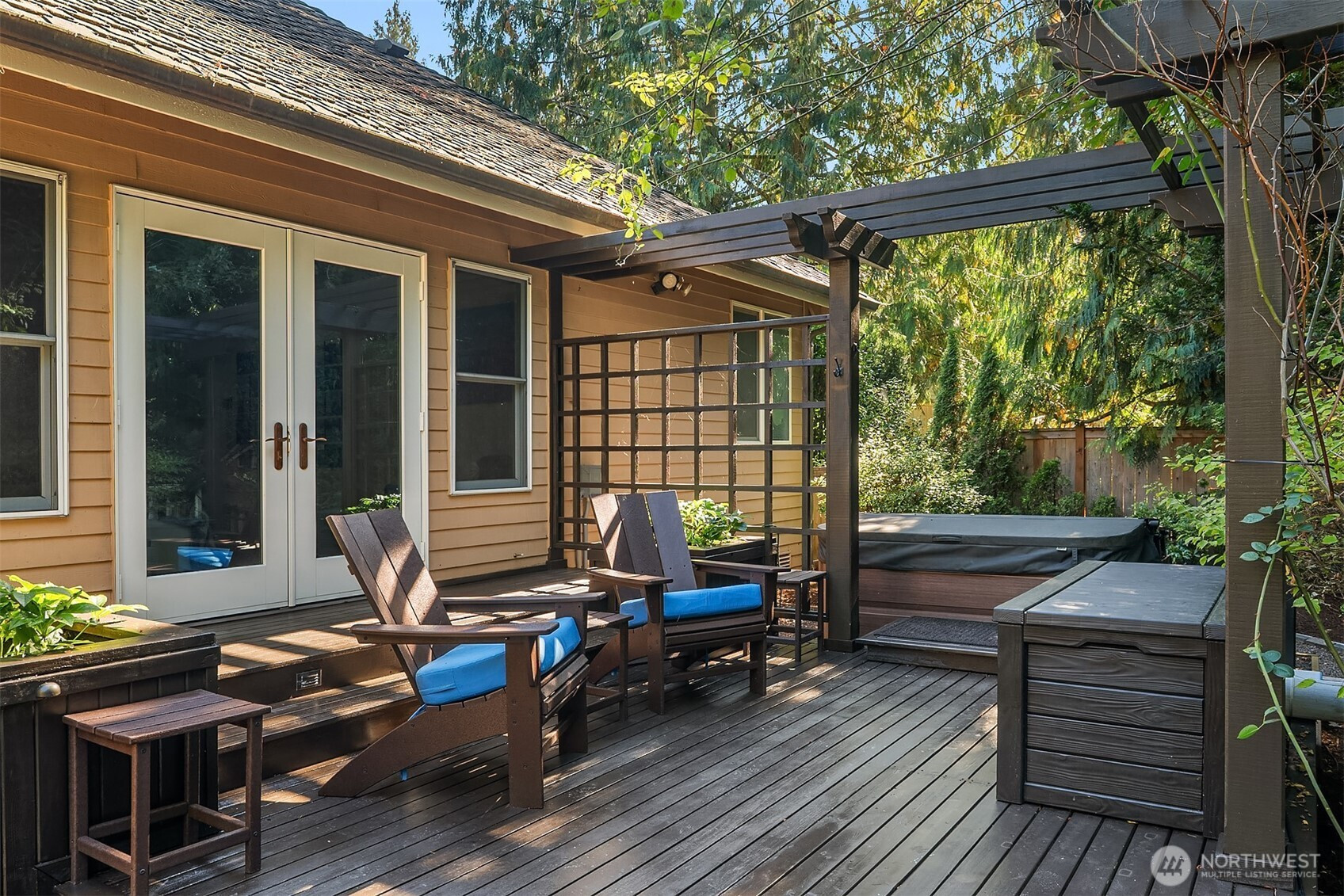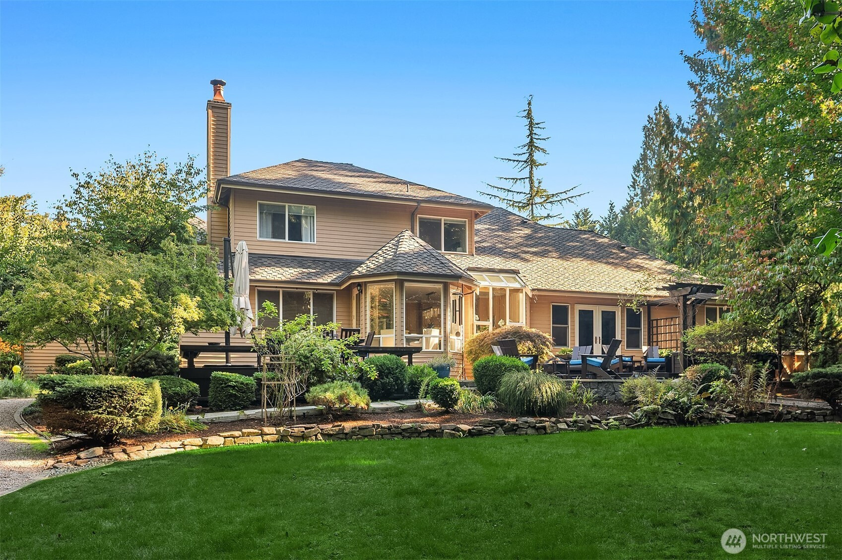 Called to tranquility, privacy, and quality? Your opportunity has arrived. Built to last by Buchan, the area’s most trusted builder, with the timeless styling of a French chateau, this home and its stunning lot feel like a portal to peaceful living. Backing up to 27 acres of preserved natural area, you’ll never see a neighbor from this fully-fenced backyard oasis. Boasting a large deck, hot tub, darling playhouse w/starry sky ceiling, raised vegetable garden, this landscape was featured in Sunset Magazine for its year-round symphony of something always in bloom and a summer bounty of fresh fruit & berries. The home, with a rare & coveted floorplan featuring a main-level primary suite with newly expanded closets, has received only the highest-quality improvements over the past five years: updated kitchen, new baths + fully replaced roof, water heater & HVAC. Oversized 3 car garage with shop space is wired for EV. Lake of the Woods transports you to simpler times with its manicured, estate-sized lots and gracious homes in a natural setting of trails, creeks, & ponds yet is the shortest hop to both Woodinville & Redmond urban centers; wine country; and Microsoft’s campus.