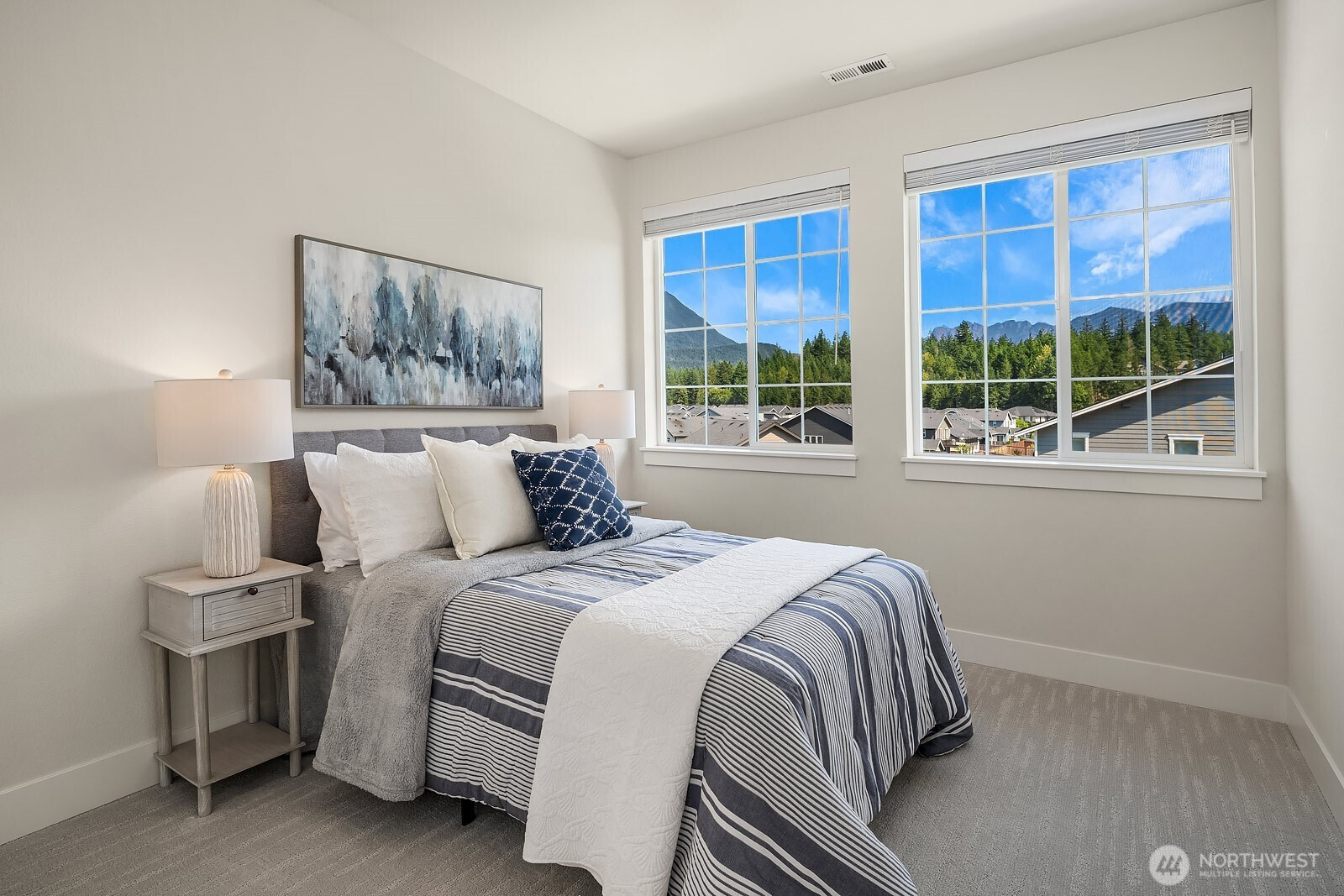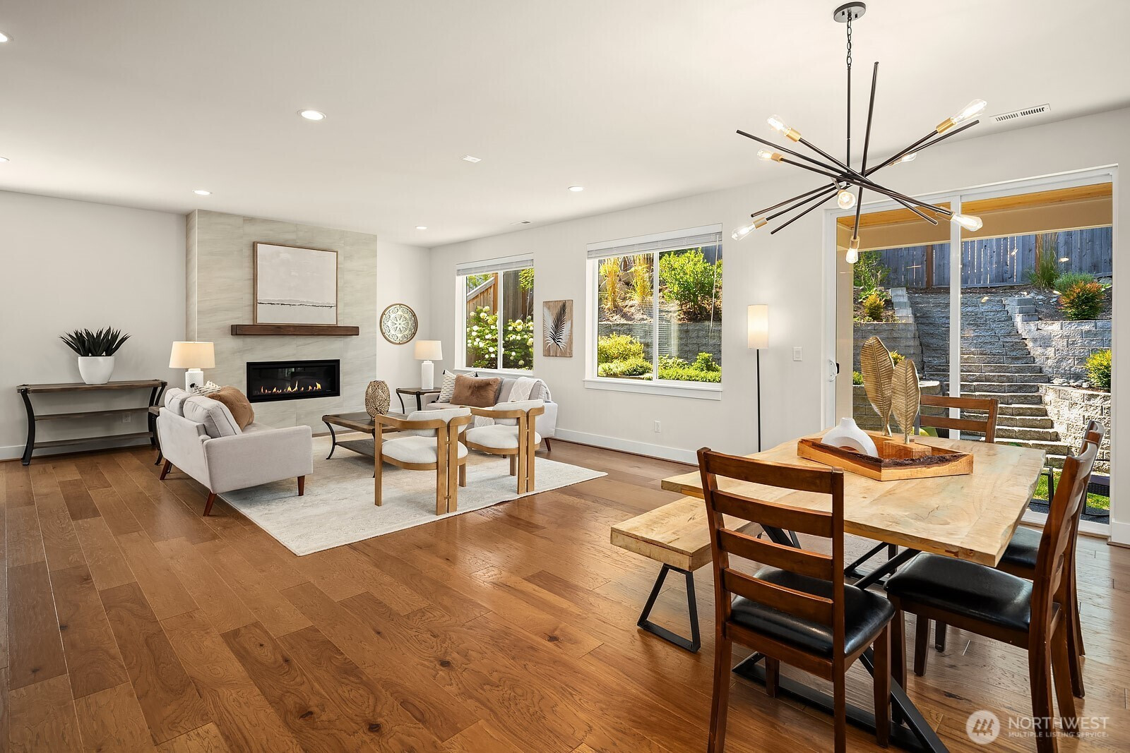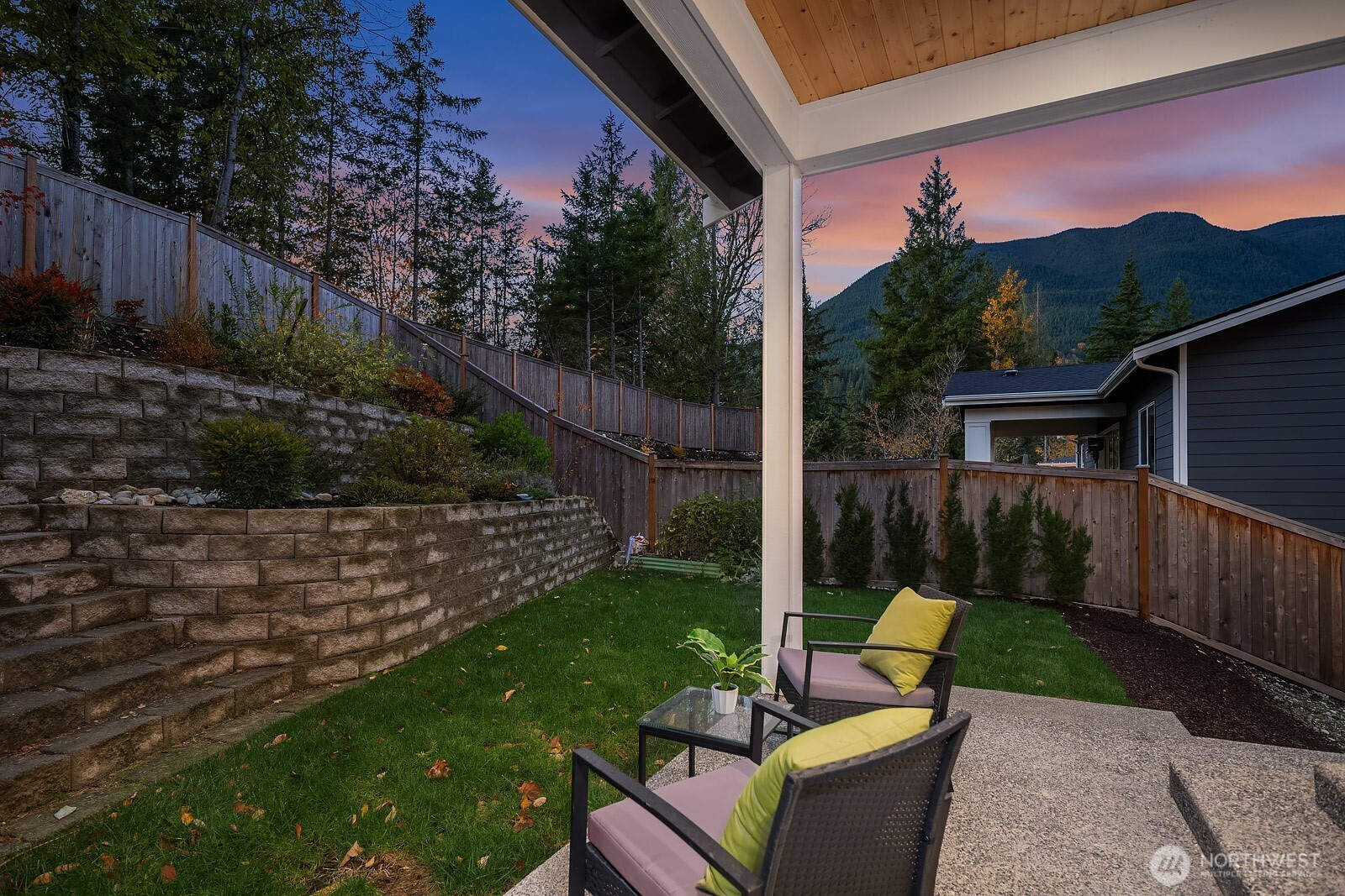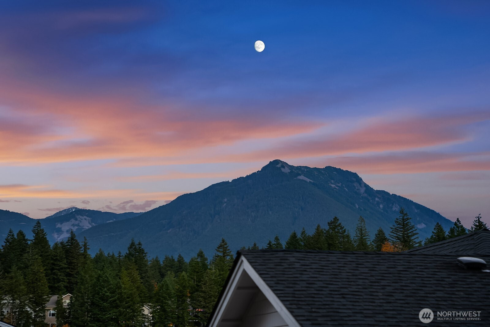A rare opportunity to enjoy elevated living with comfort, style, & convenience at an amazing price point. Rising above the rest w/ stunning mountain views and exceptional craftsmanship. This 5-bed contemporary home is impeccably maintained & upgraded throughout, it offers true move-in perfection. Highlights include hardwoods throughout, a tiled spa-inspired ensuite, designer finishes, A/C, EV charger, & whole-house Generac generator for peace of mind. The versatile lower level is ideal for multi-generational living or guest quarters. Outdoor living shines w/ a covered patio, terraced & private backyard, w/ river & trail access just moments away. Come see what North Bend has to offer — Award-winning schools to endless outdoor adventures.